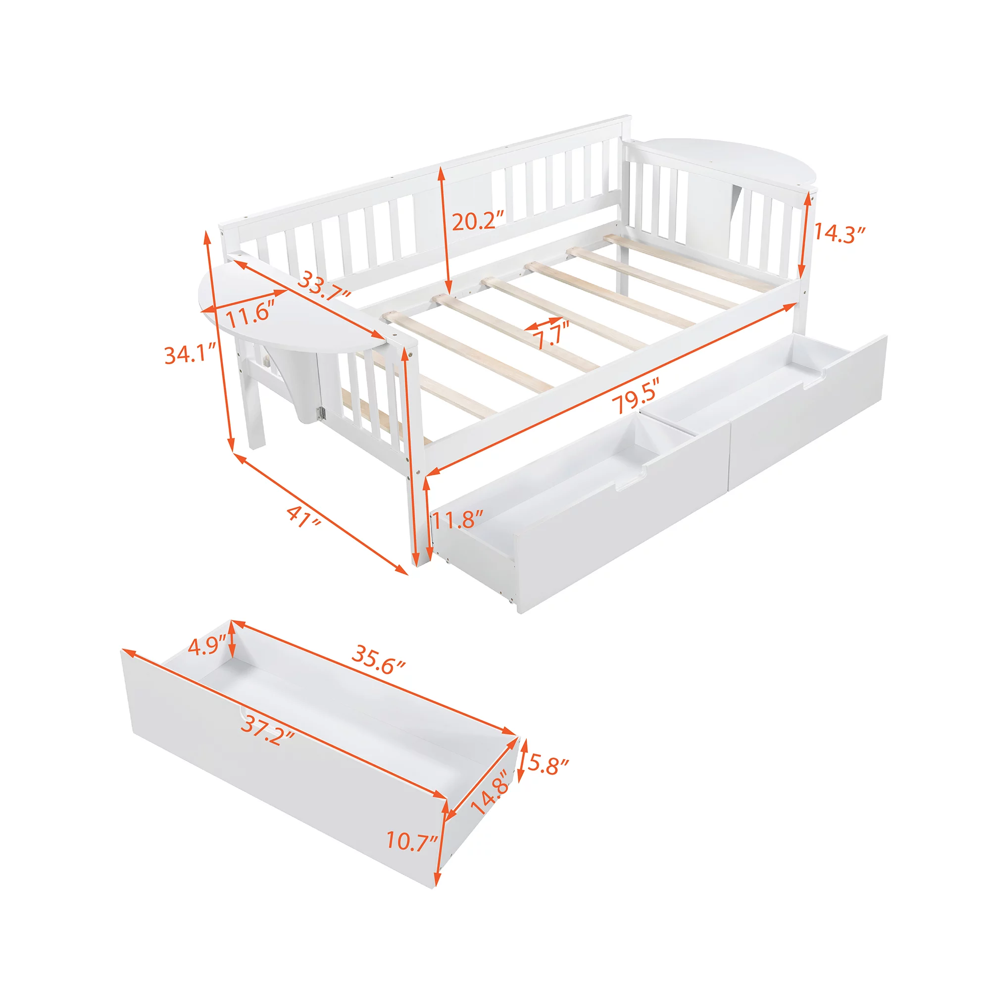 CoSoTower Twin Size Daybed With Two Drawers, Wood Slat Support, White