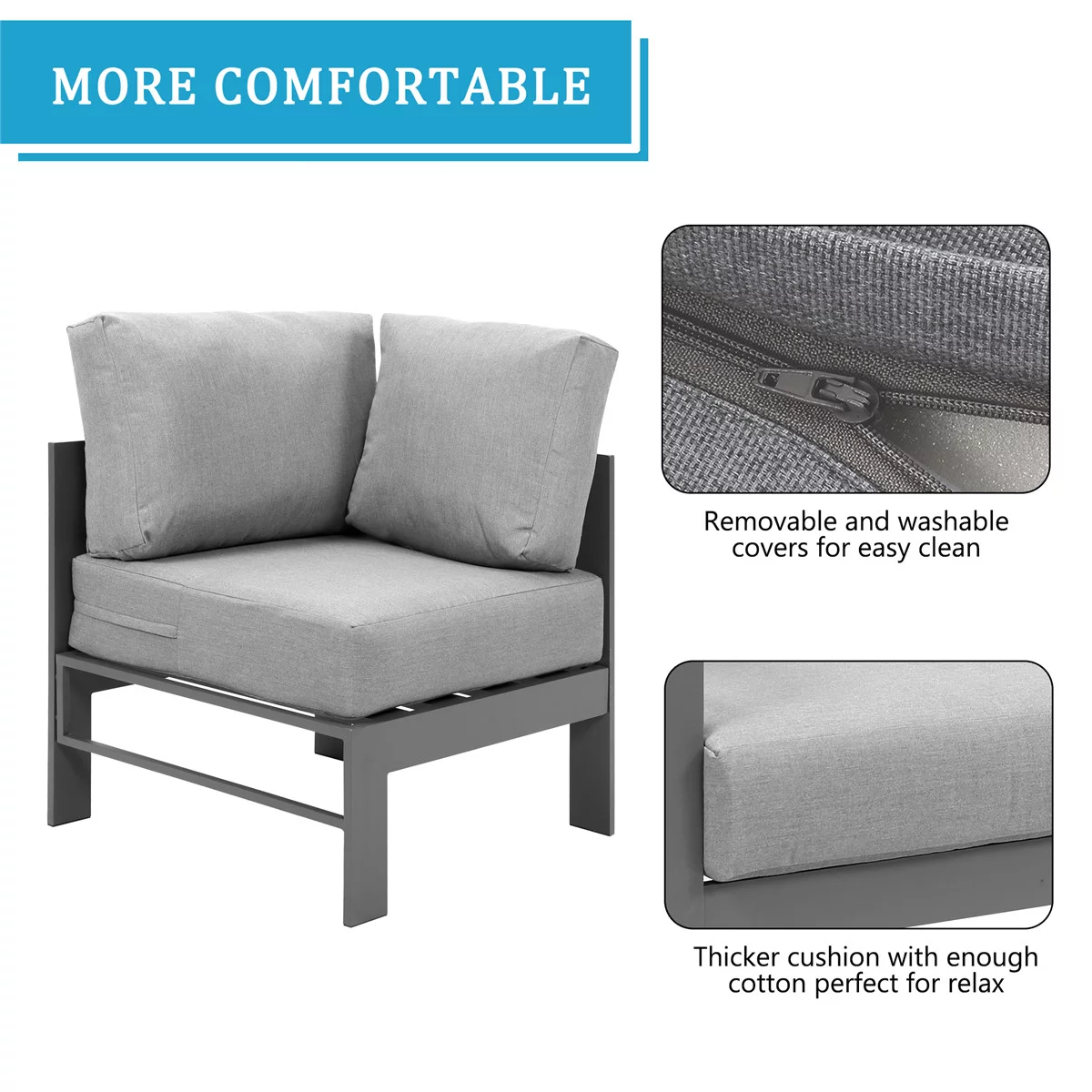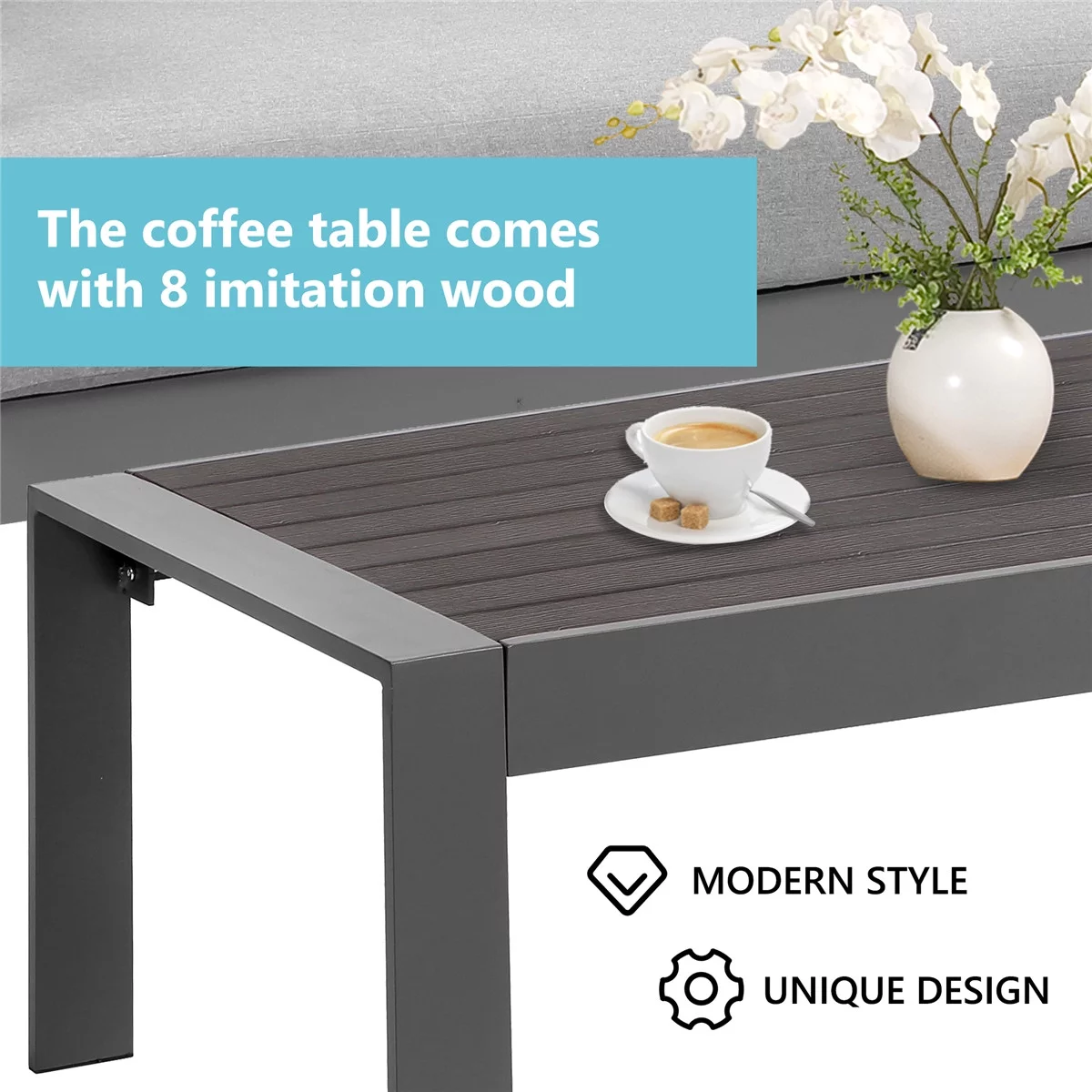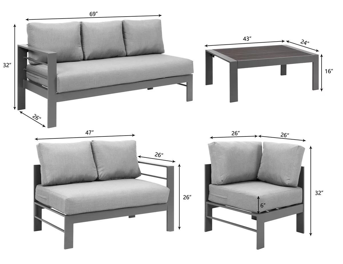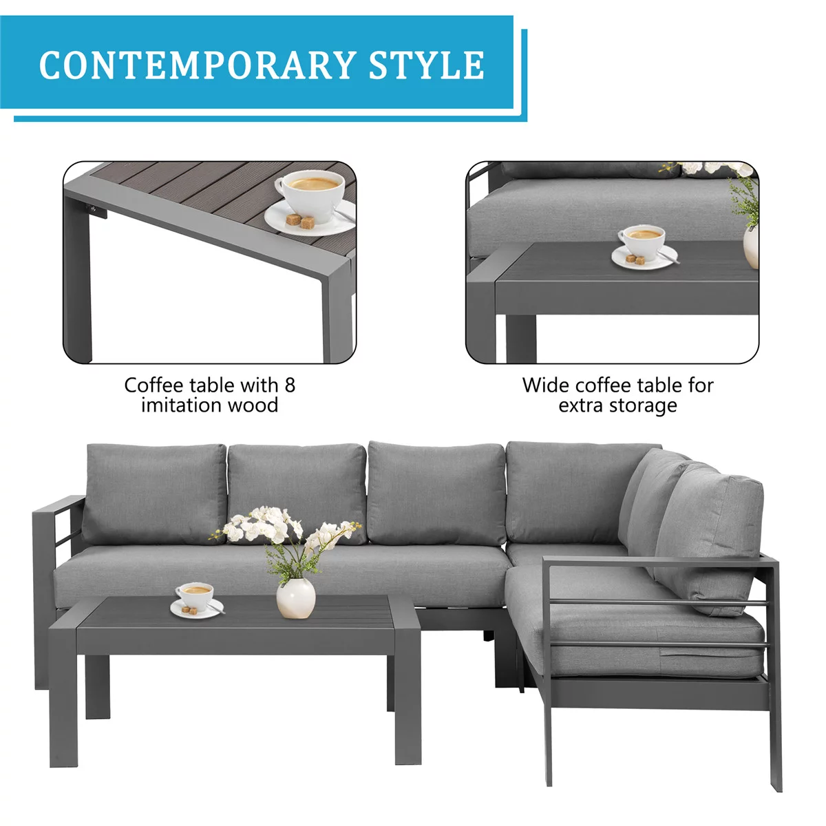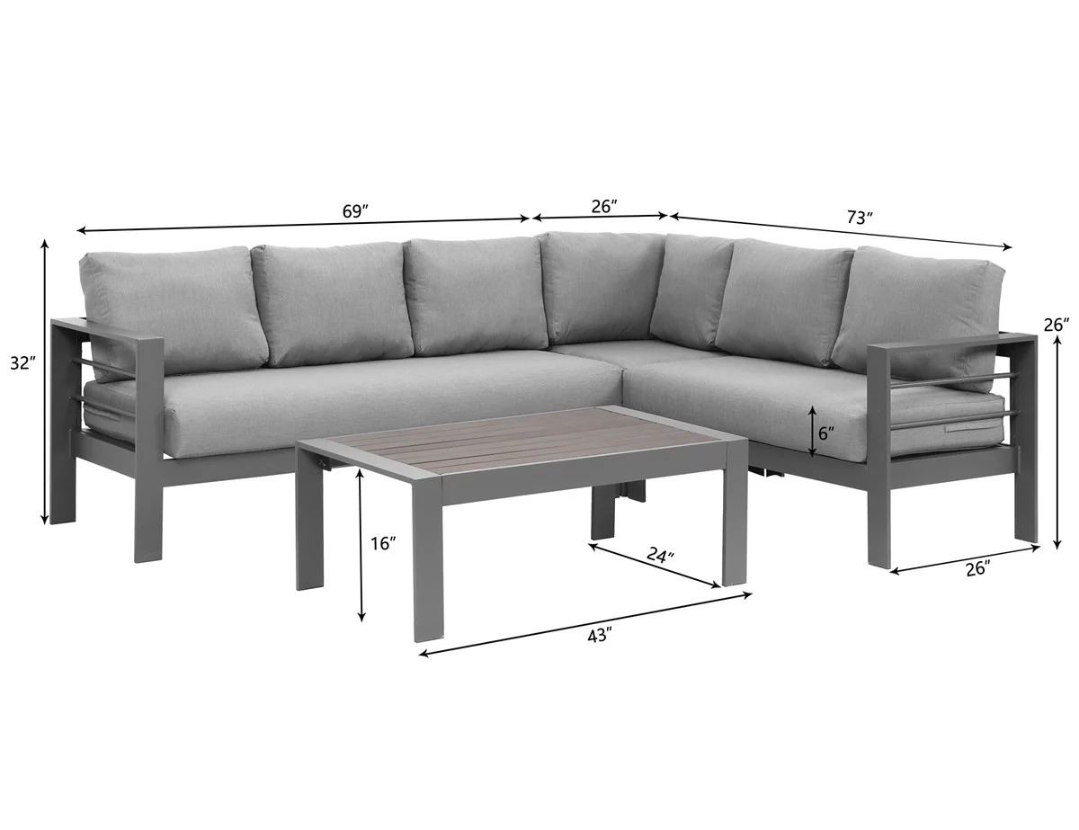Superjoe 4 Pieces Outdoor Aluminum Furniture Set, Patio Sectional Sofa Couch - Conversation Set with Coffee Table and Sofa, Gray