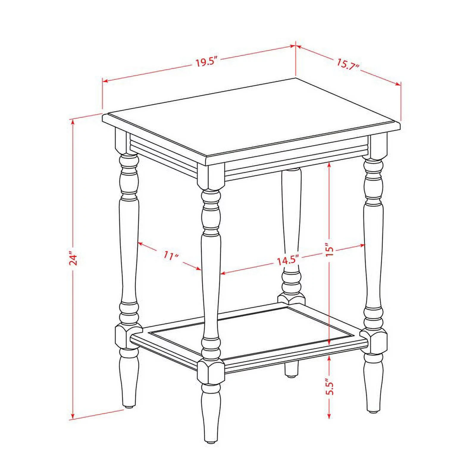 Home Square Wood End Table with Open Storage in Burgundy Red - Set of 2