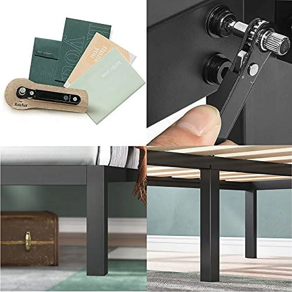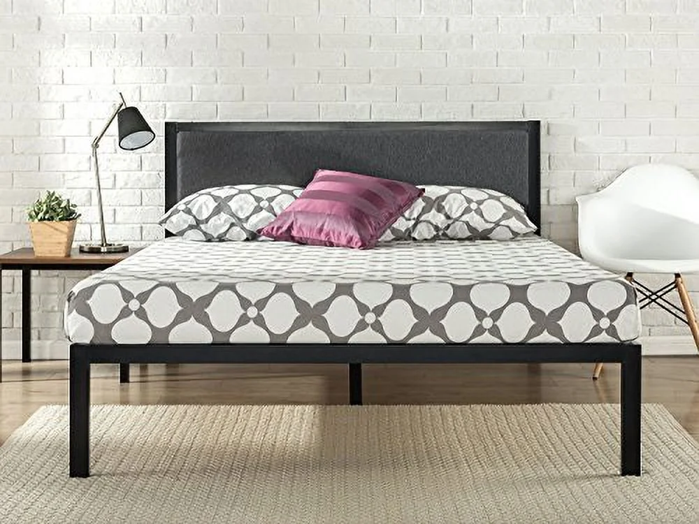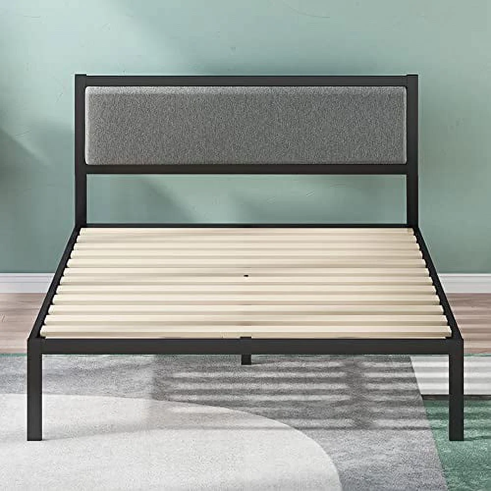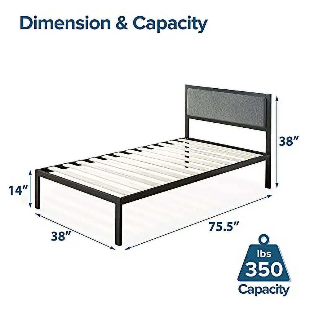 Zinus Korey 14" Steel Platform Bed Frame with Upholstered Headboard and Wood Slat Support, Twin