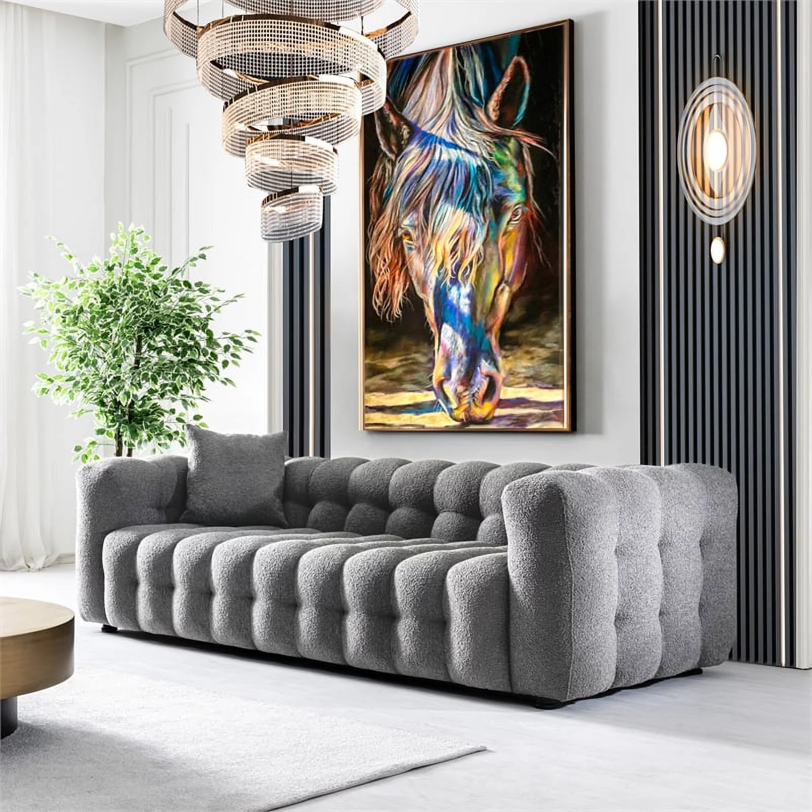 Marsi Luxry Modern Chesterfield Gray French Boucle Fabric Couch