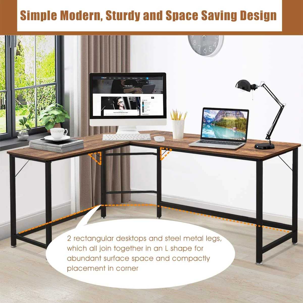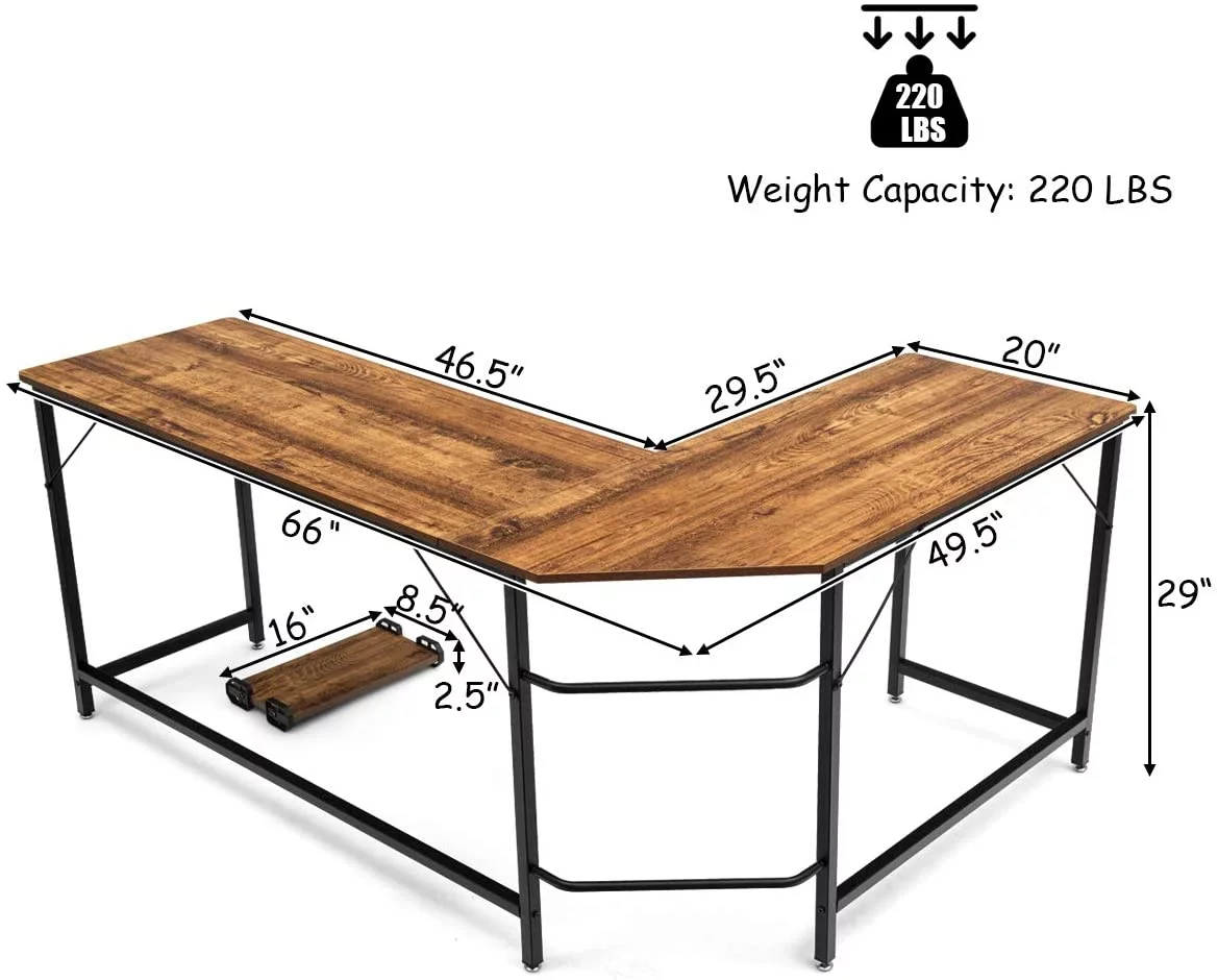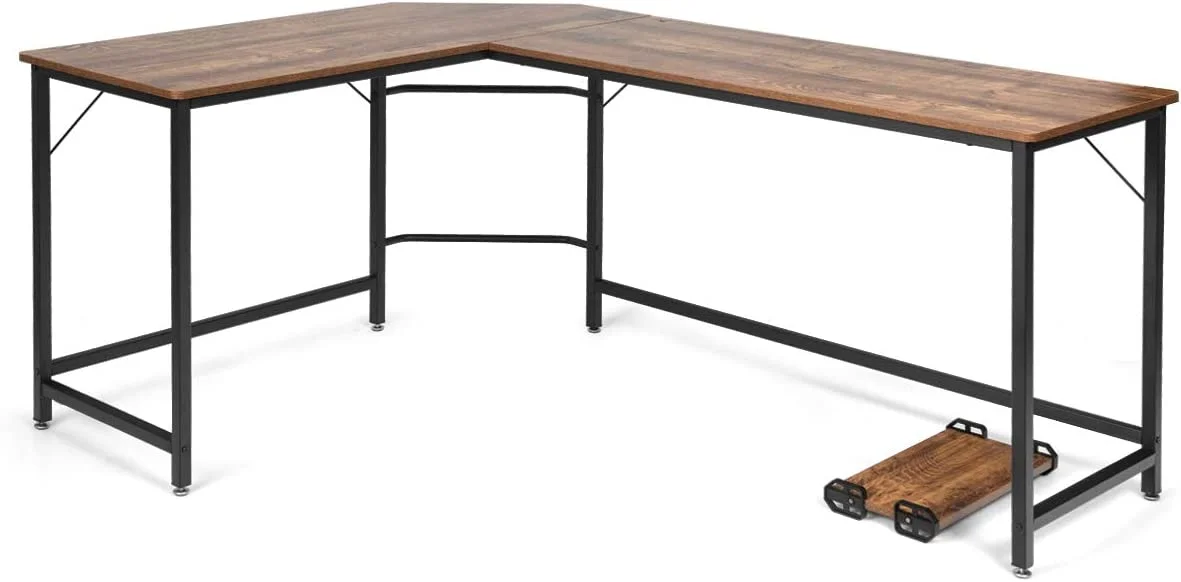 L-Shaped Desk, 66 Inch Home Office Computer Desk PC Laptop Study Table with CPU Stand & Spacious Surface, Computer Workstation with Adjustable Foot Pads (Coffee)