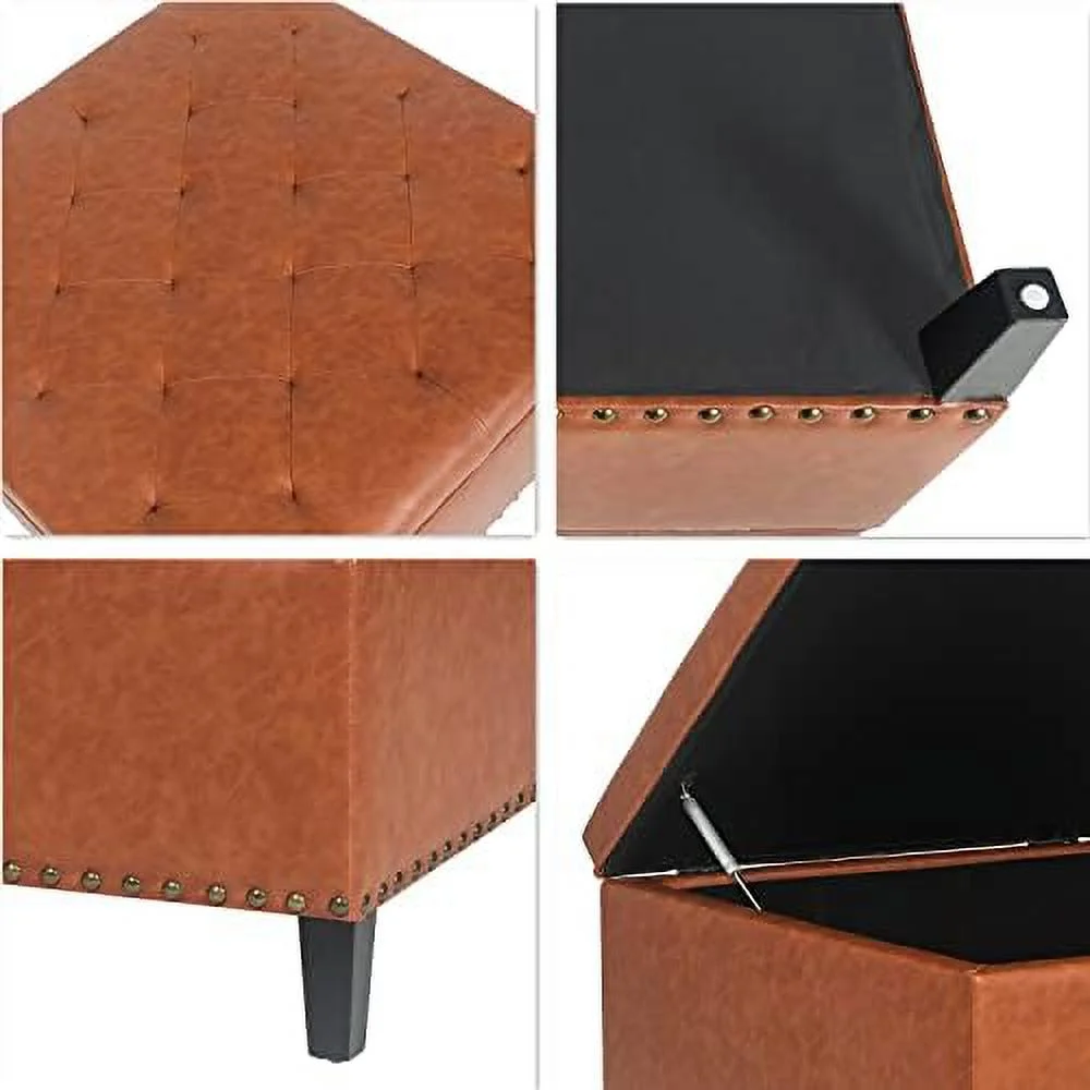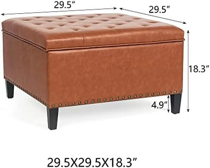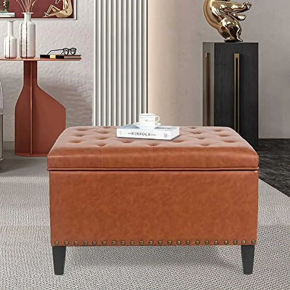 Ottoman Upholstered Tufted Bench with Nailhead Trim Footrest Coffee Table with Wood Legs for Living Room Bedroom (Orange)