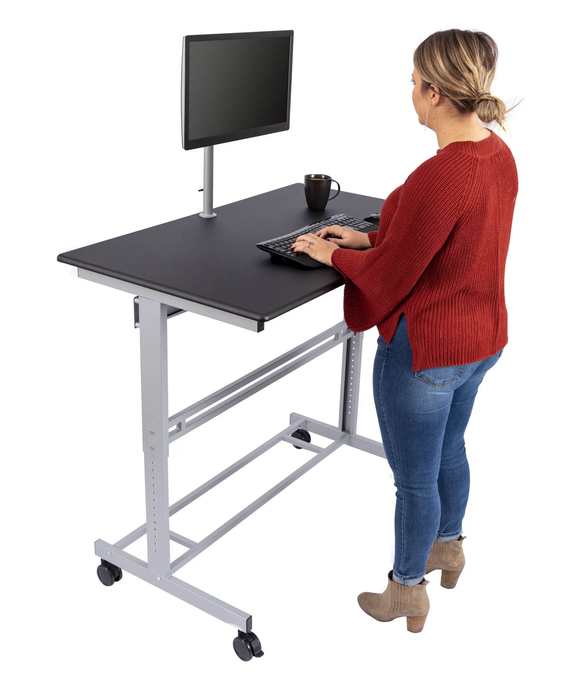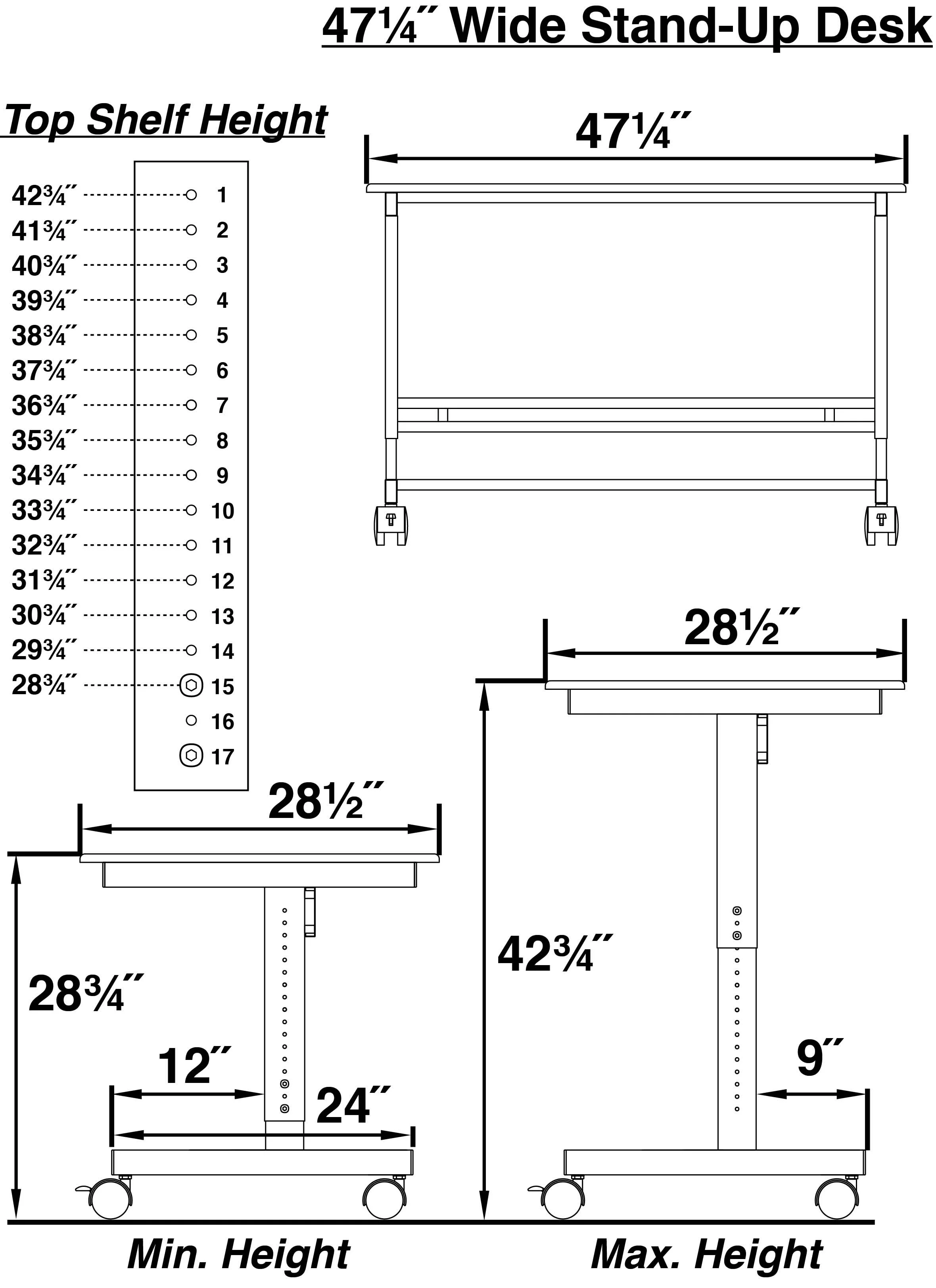 48 Stand Up Desk w/ FREE Monitor Mount (Black Shelves / Silver Frame)
