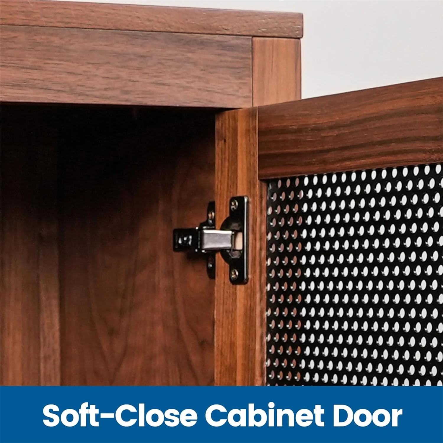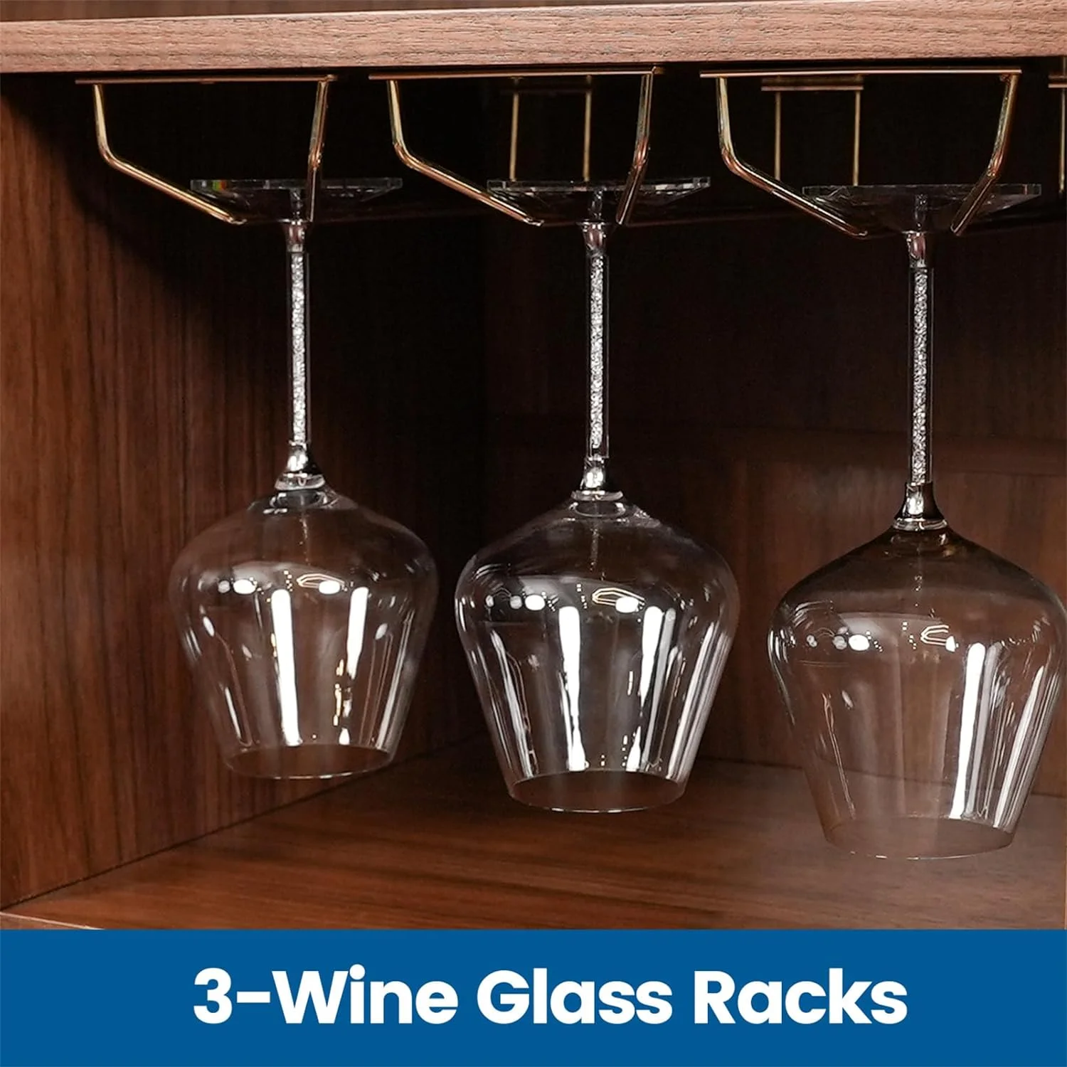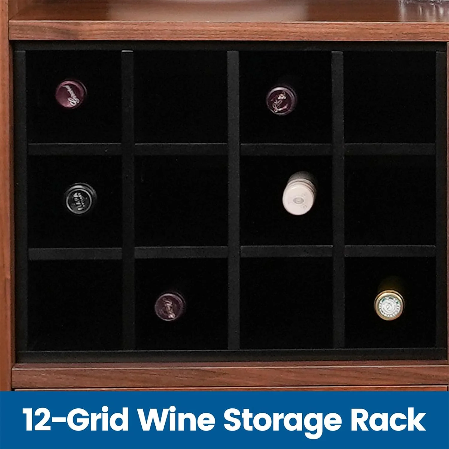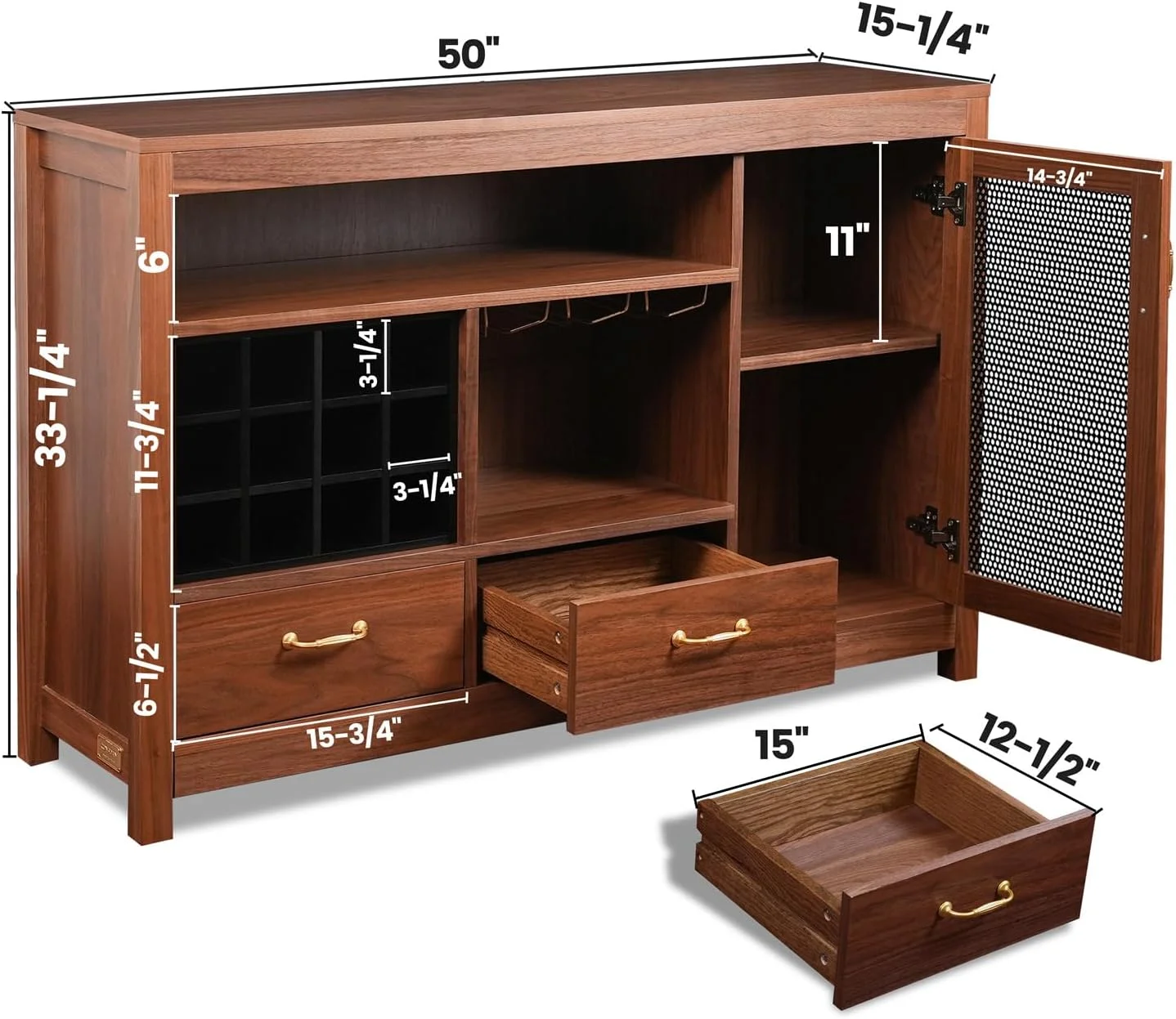 CONSDAN Bar Cabinet with Storage and Large Drawer, Solid Walnut Hardwood Structure Sideboard, Buffet Cabinet with Wine and Glass Rack, Coffee Bar for Living Room, Kitchen, Hallway