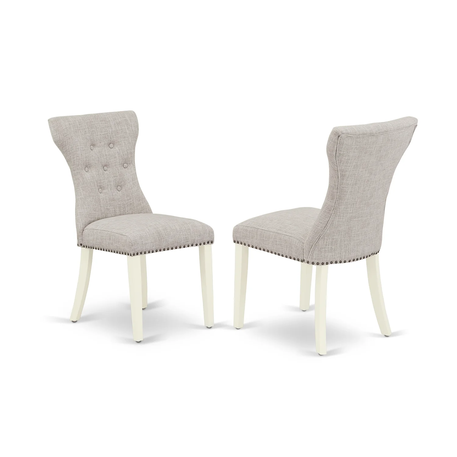 HomeStock Victorian Vibes Furniture 7-Piece Dining Room Table Set- 6 Parson Dining Chairs And Butterfly Leaf Dining Table Solid Wood Frame -High Back & Linen White Finish