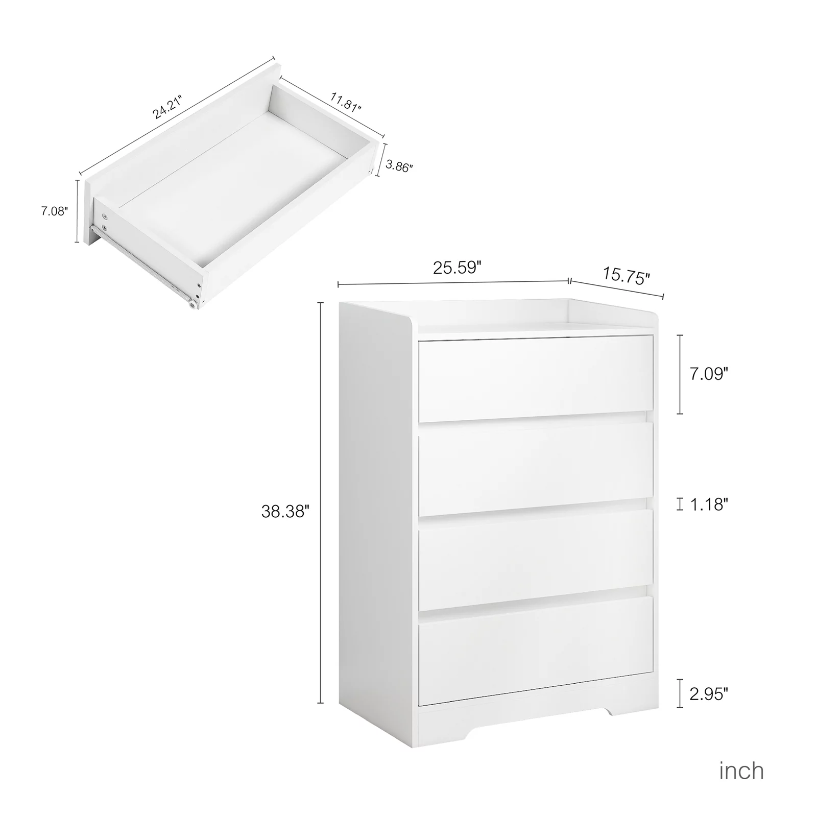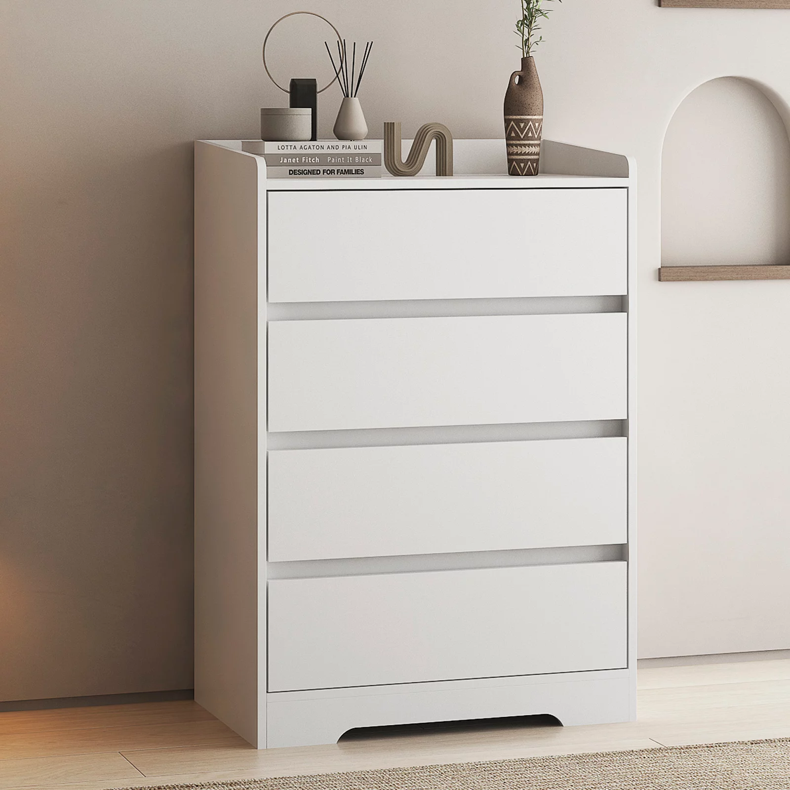 YISUYA Dresser for Bedroom with 4 Drawers, Sideboard Storage Cabinet,Drawer Cabinet, Chest of Drawers, Clothes Storage Closet Organizer, Sideboard Buffet Cabinet, for Living Room Kitchen, White