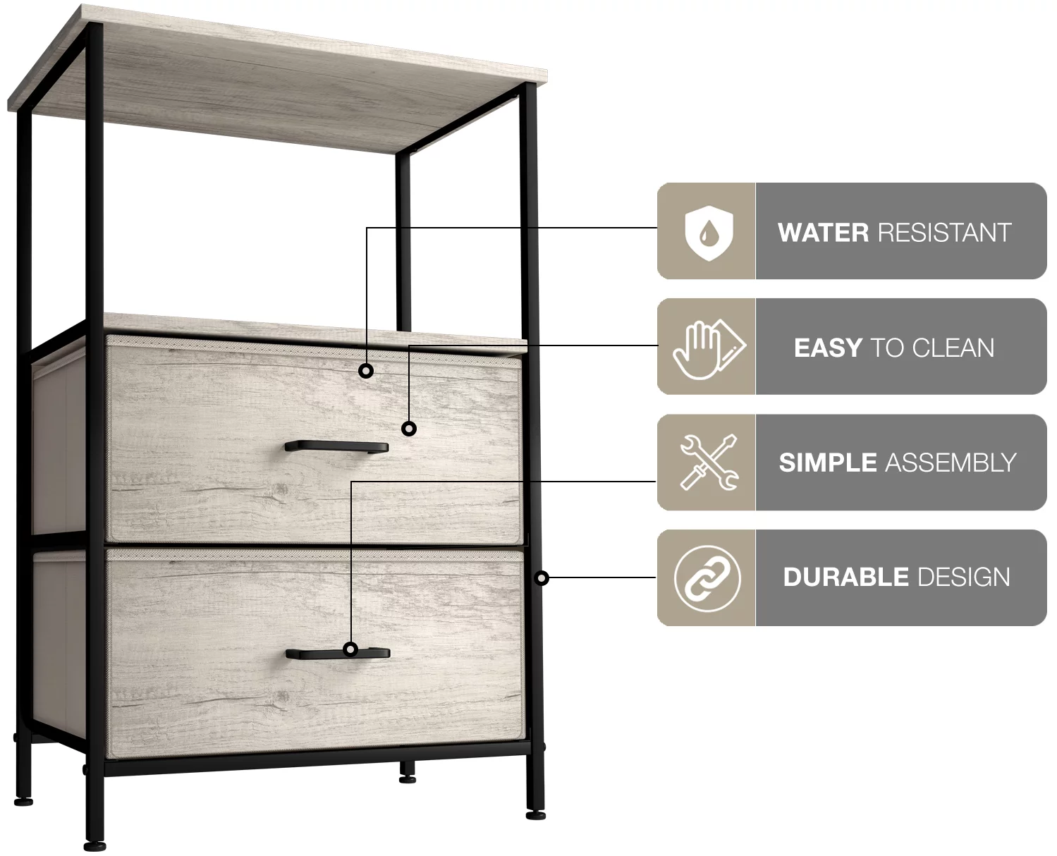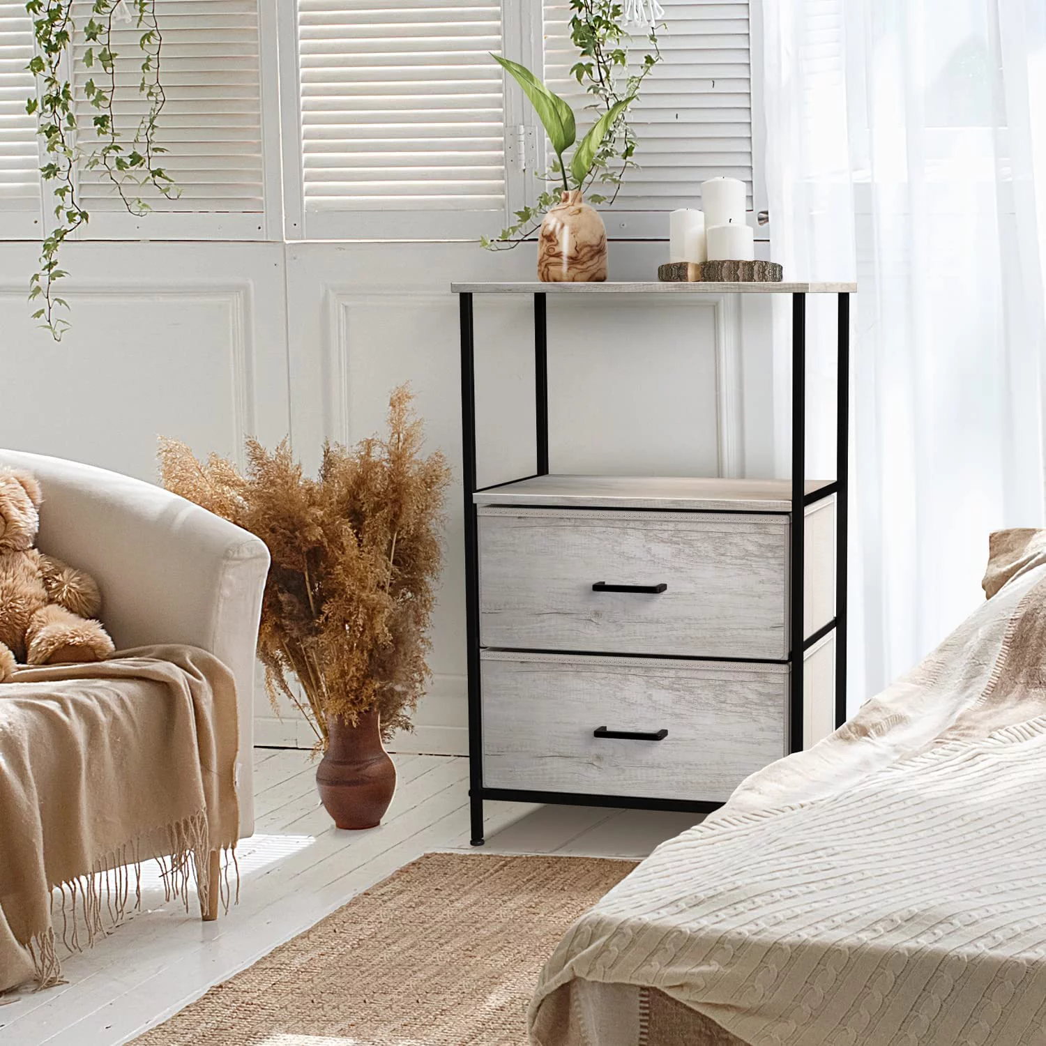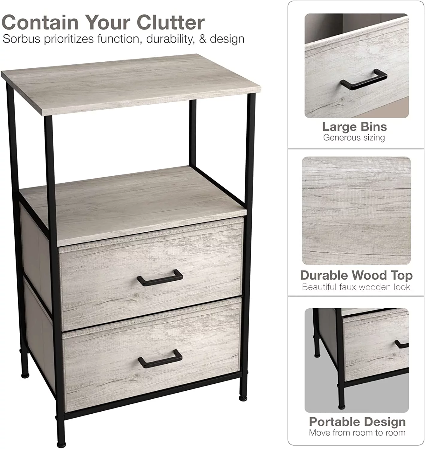Sorbus Nightstand with 3 Drawers - Bedside Table with Steel Frame, Wood Top & Faux Wood Fabric - Side Table Stand for Lamp - Great for Bedroom, Dorm Room, Living Room, & Bathroom