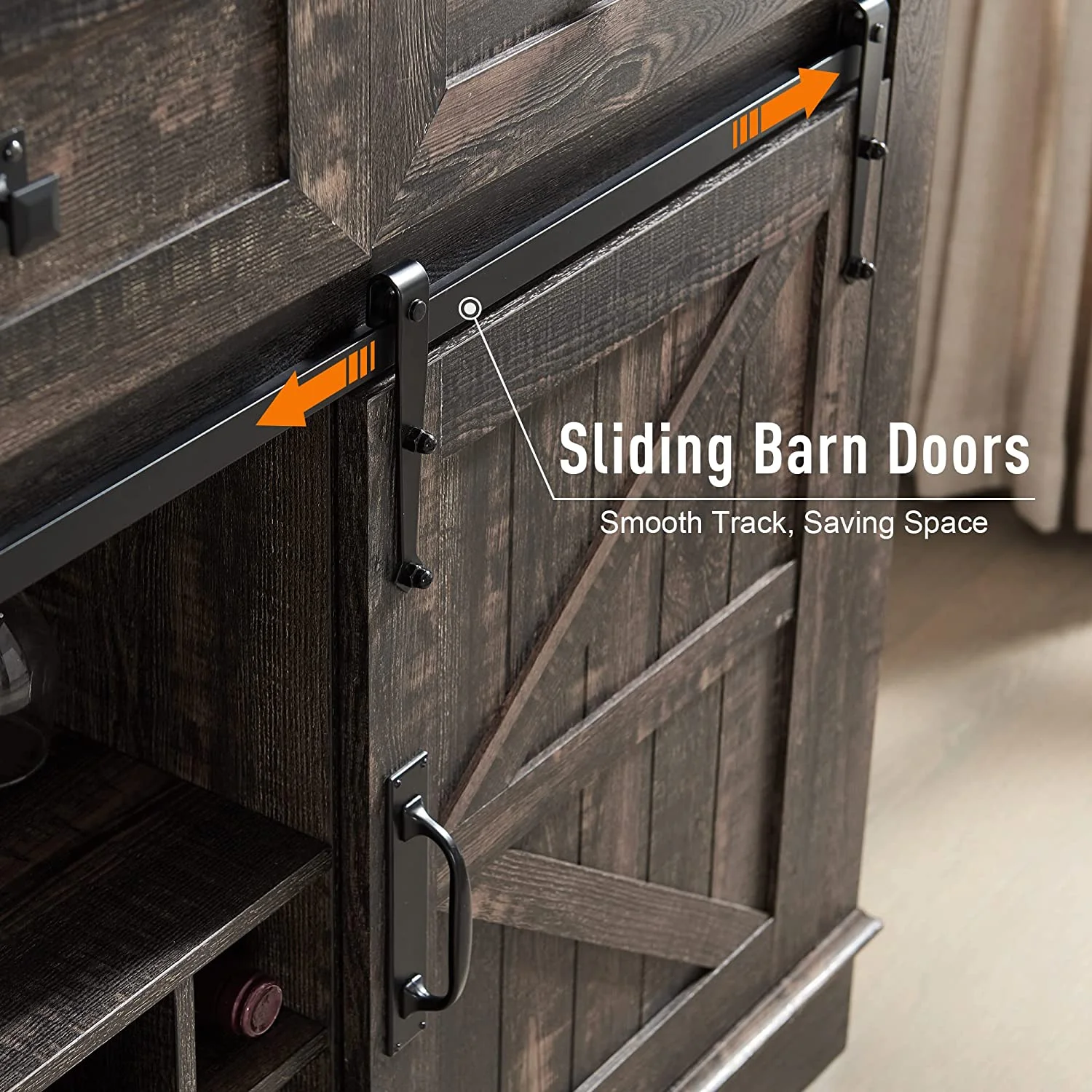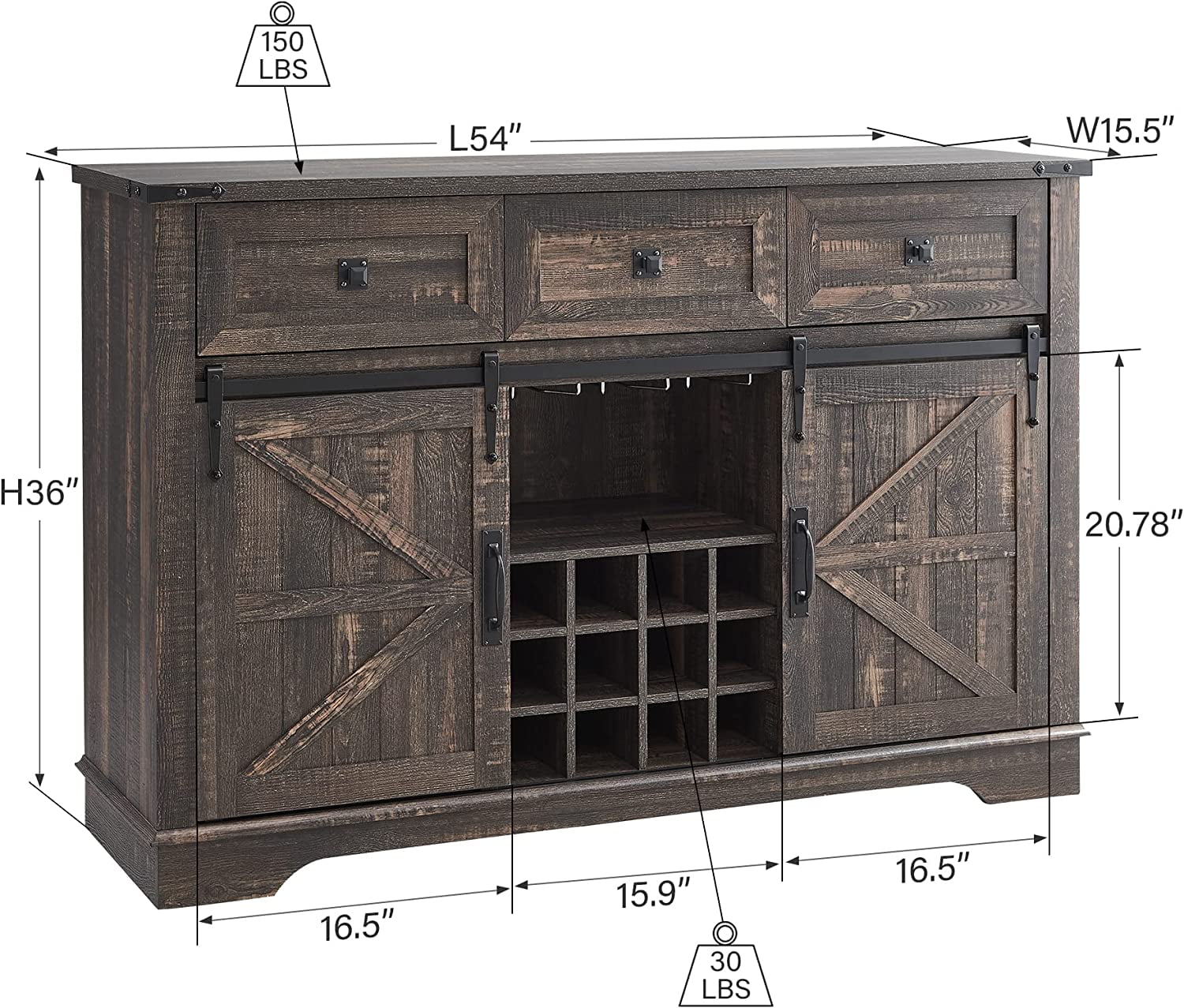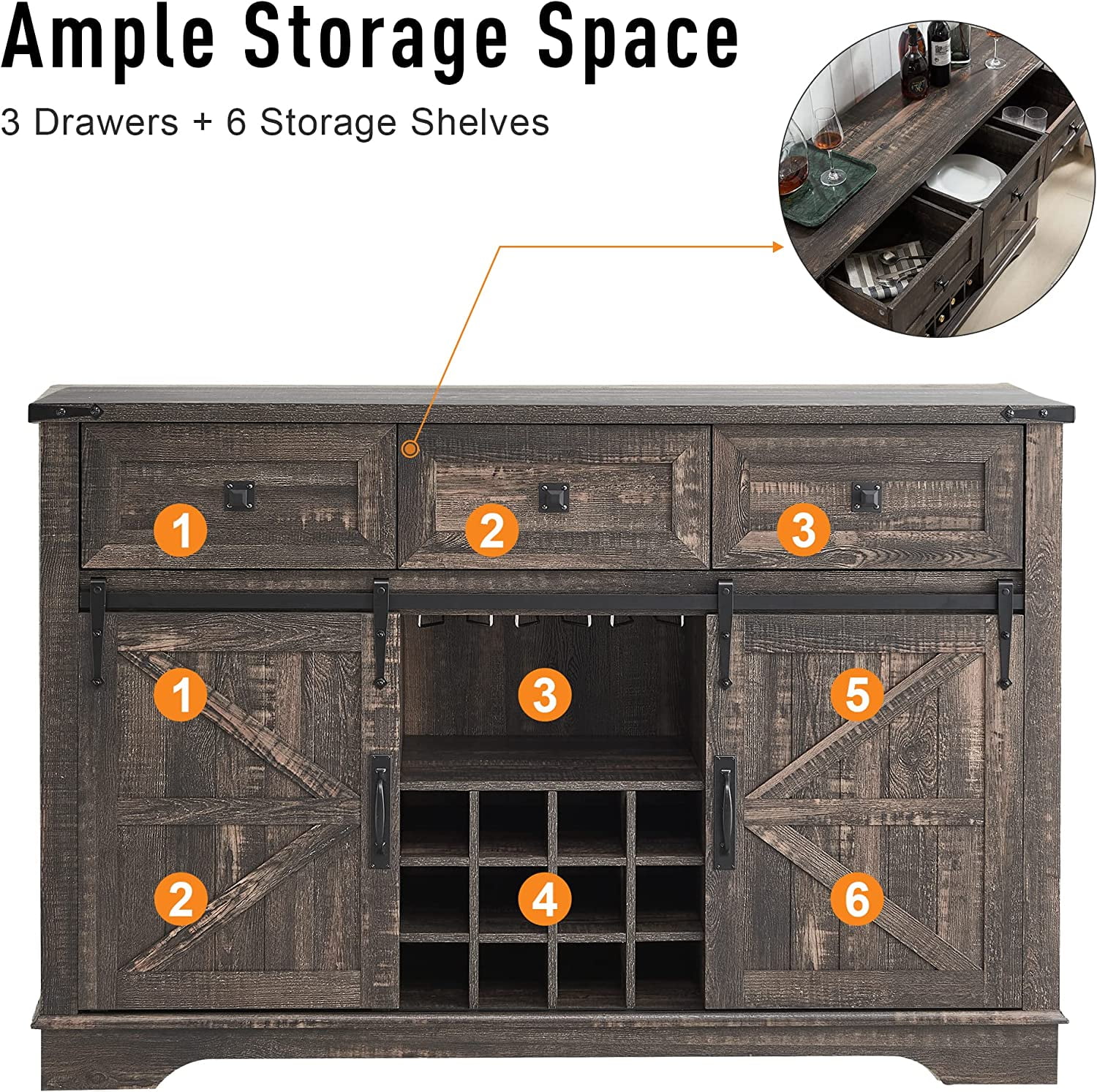 OKD Farmhouse Coffee Bar Cabinet Sideboard Buffet with Wine and Glass Rack, Drawers, Storage Shelves for Dining Room, Living Room, Wood Furniture(Dark Rustic Oak)