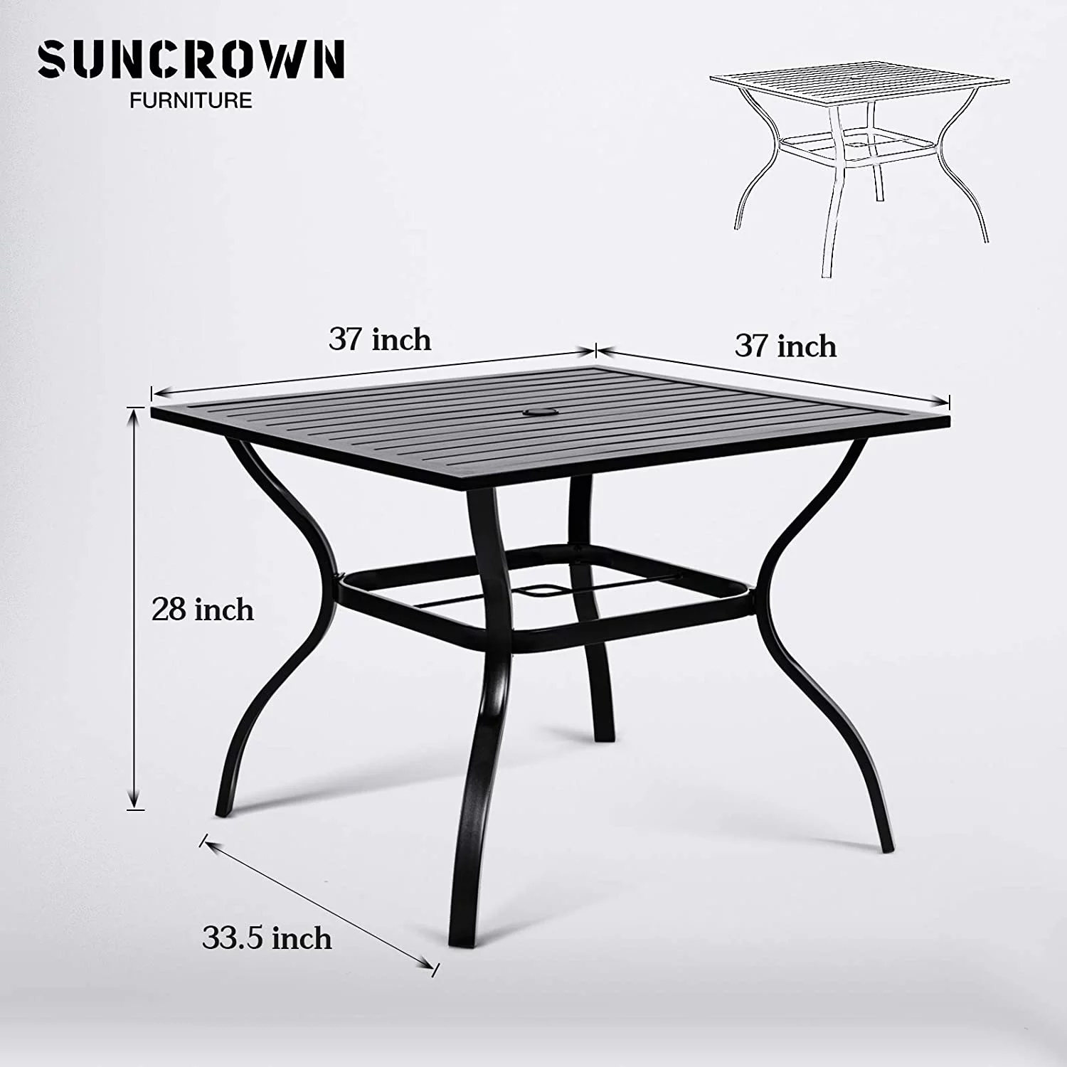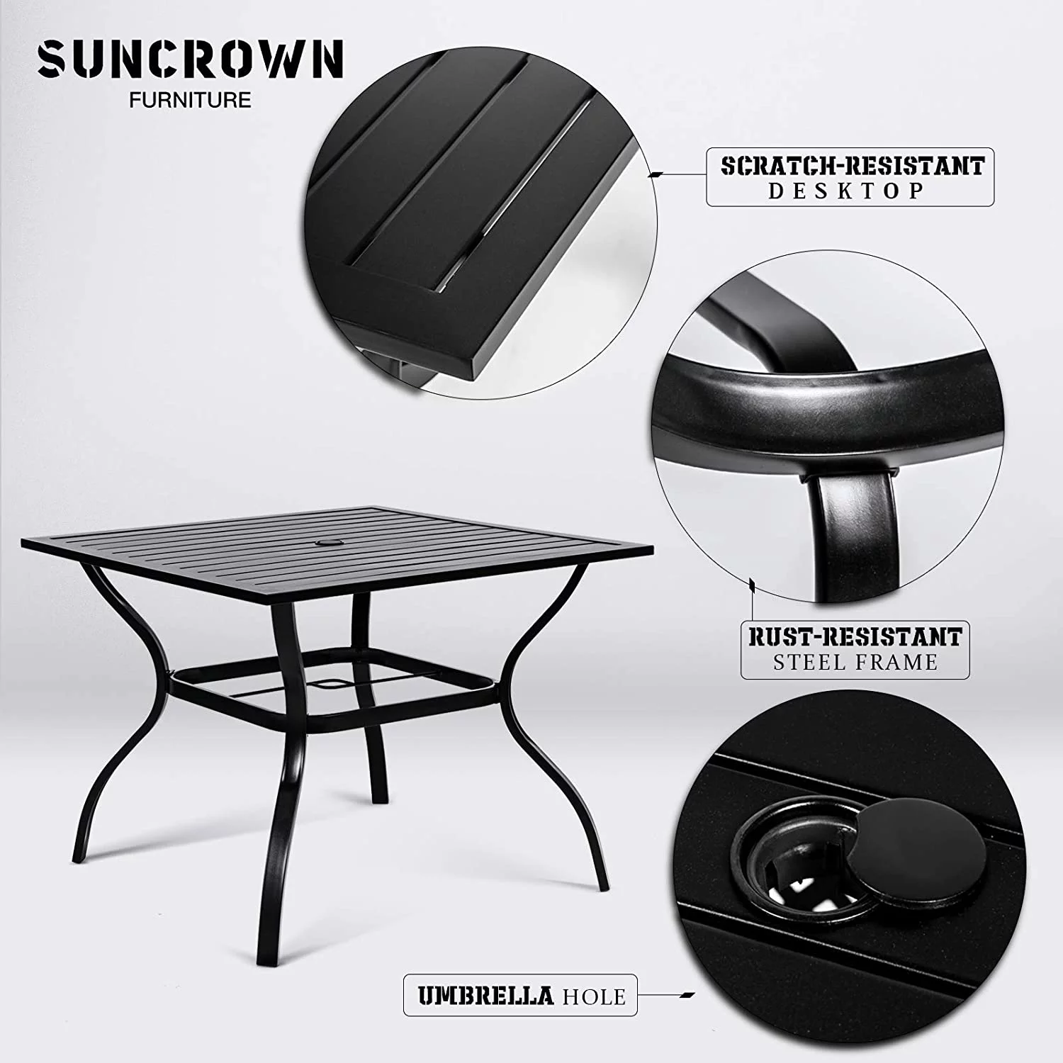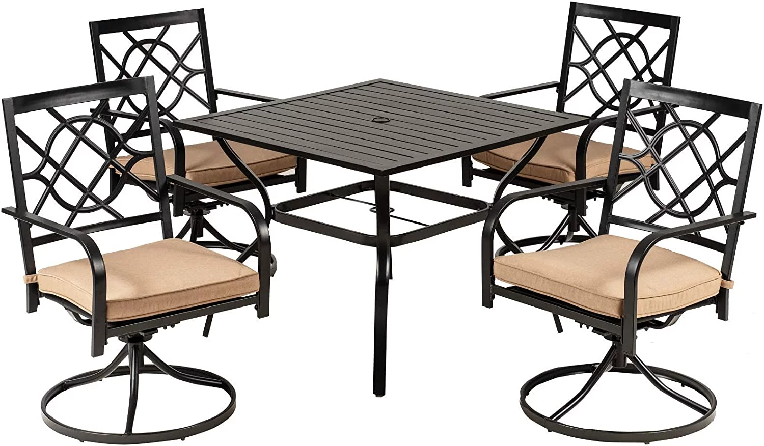 SUNCROWN 5 Pieces Outdoor Patio Metal Dining Set Swivel Chairs and Table Set with Brown Cushions