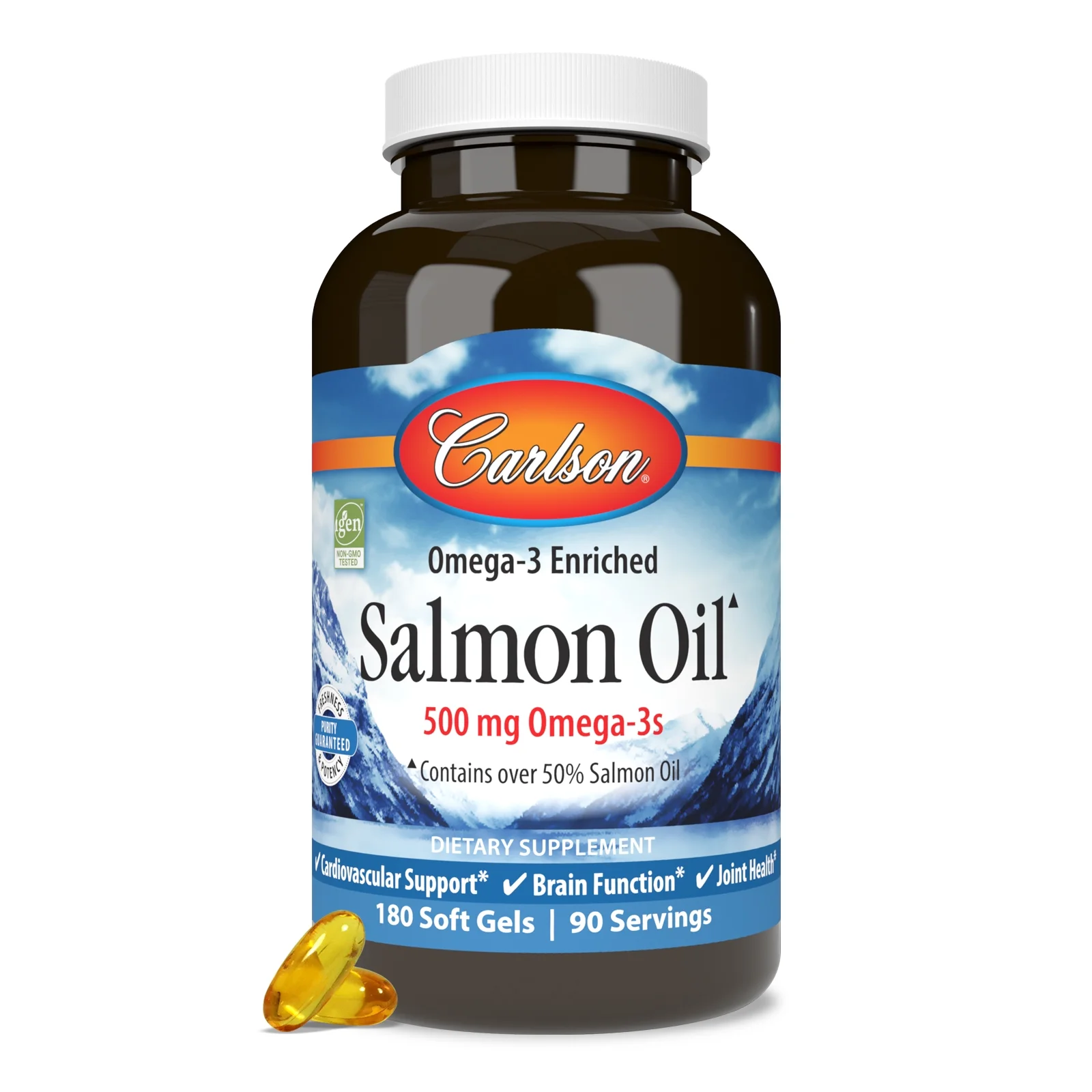 Carlson - Norwegian Salmon Oil, 500 mg Omega-3s, Norwegian, Wild Caught, Sustainably Sourced, 180 Softgels