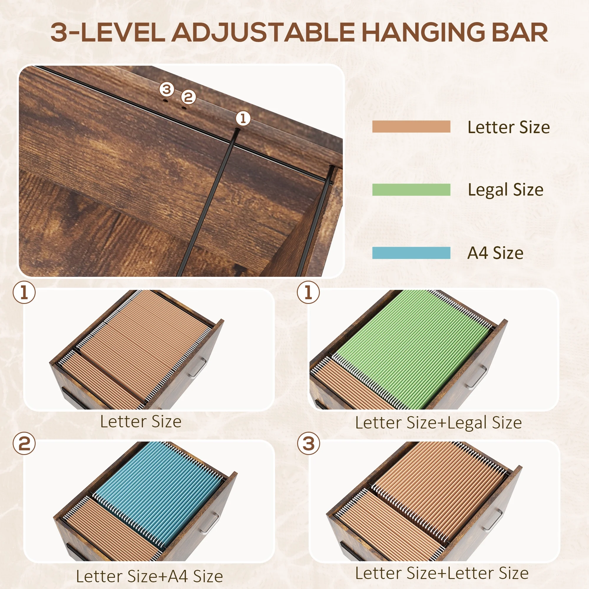 Vinsetto 2 Drawer Mobile File Cabinet with Lock & Hanging Bar, Rustic Brown