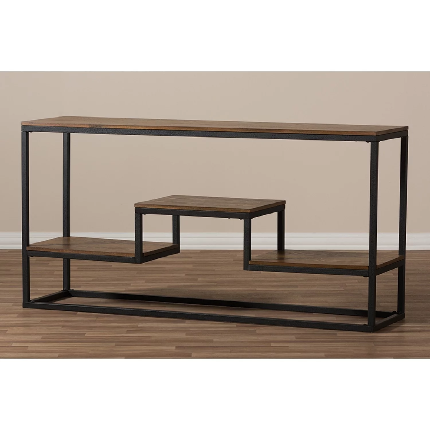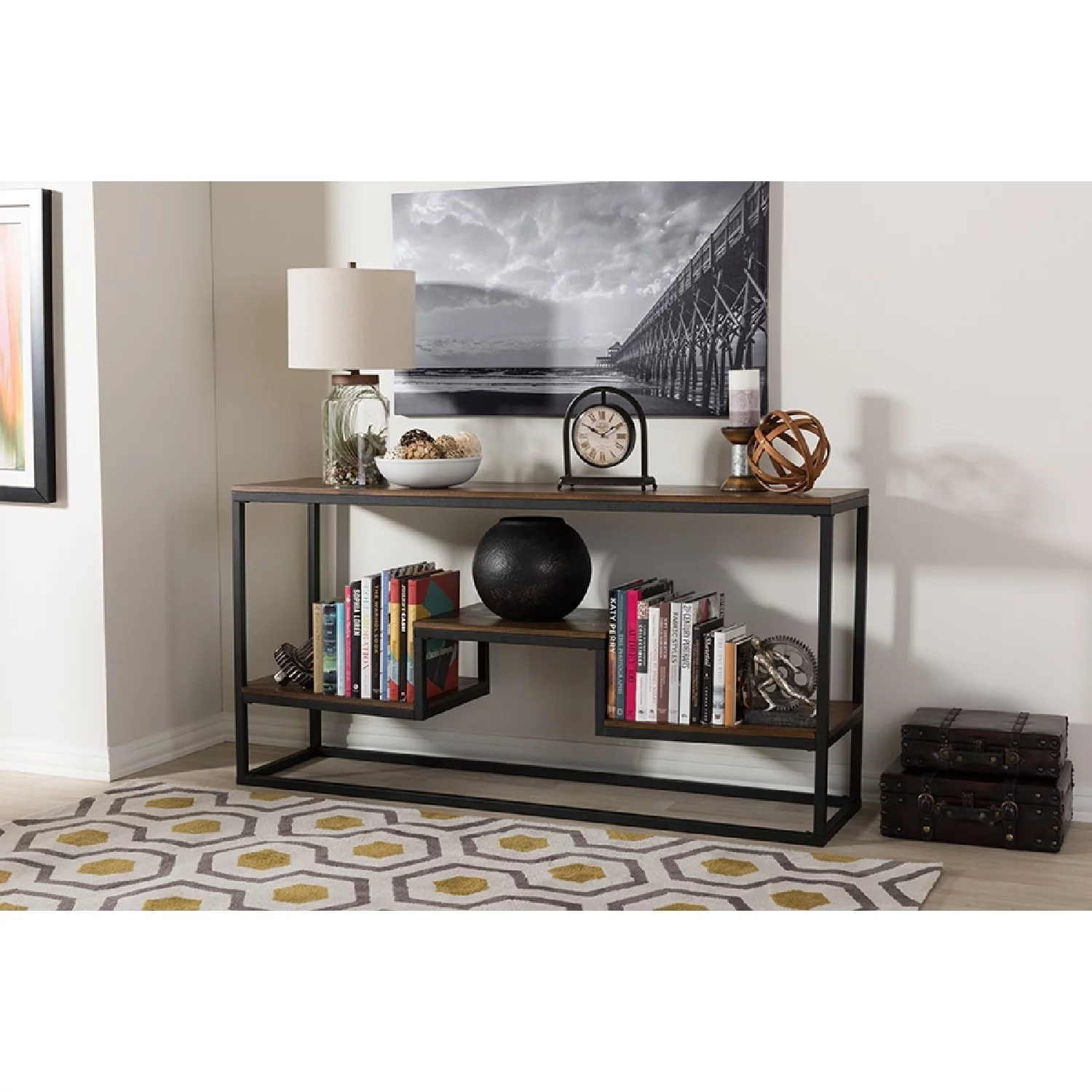 Baxton Studio Doreen Rustic Industrial Style Antique Black Textured Finished Metal Distressed Wood Console Table