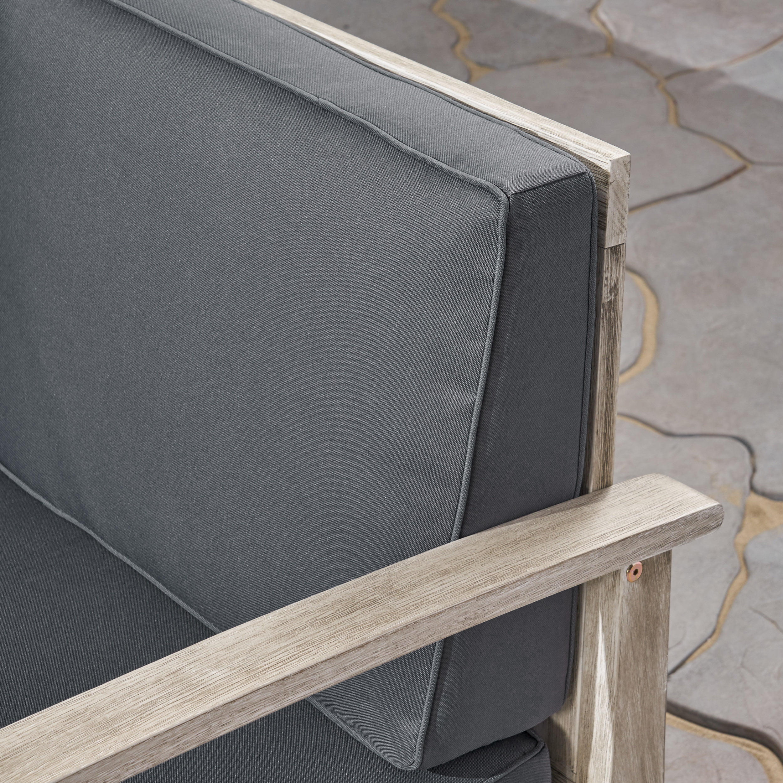 GDF Studio Judith Outdoor Acacia Wood Sofa Sectional Set, Light Gray