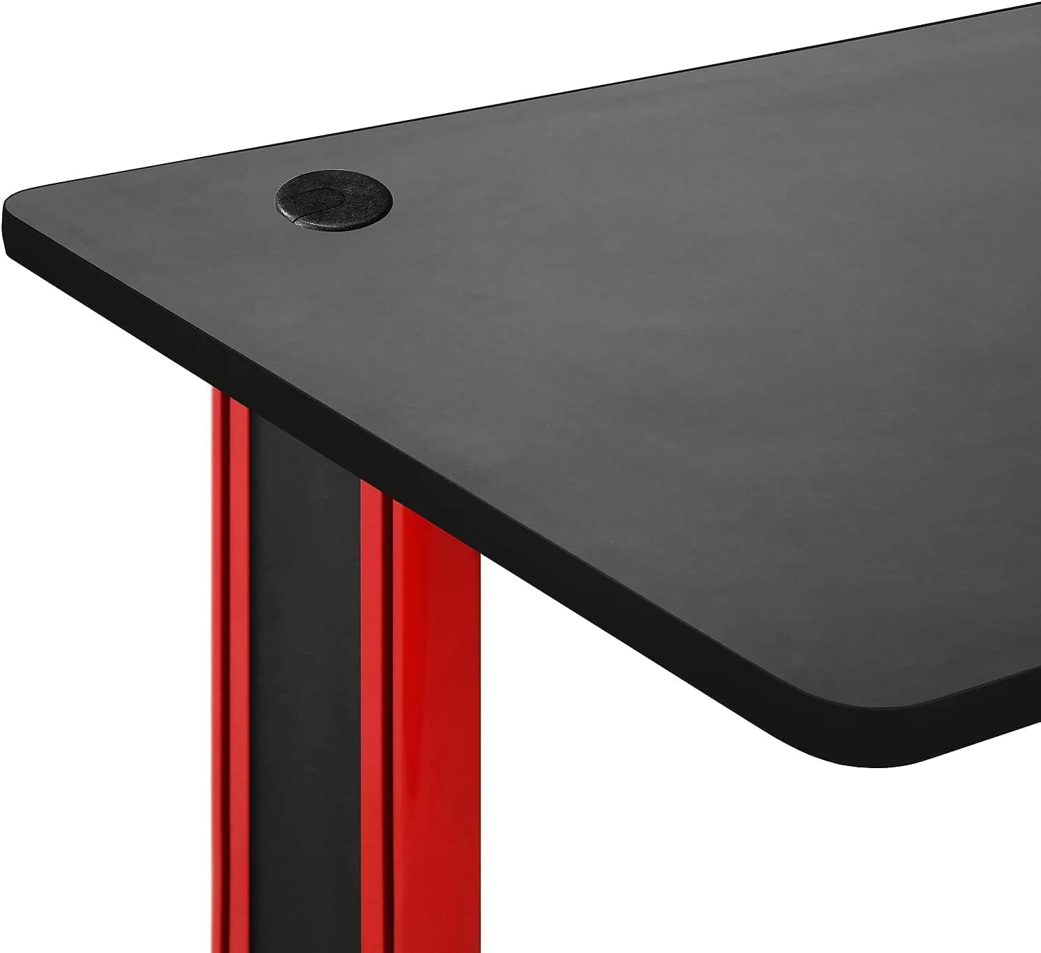 Computer Desk, Gaming Desk 25" X 58" Student PC Desk Office Desk Extra Large Modern Ergonomic Gaming Table Workstation - Black And Red Frame - Black Top