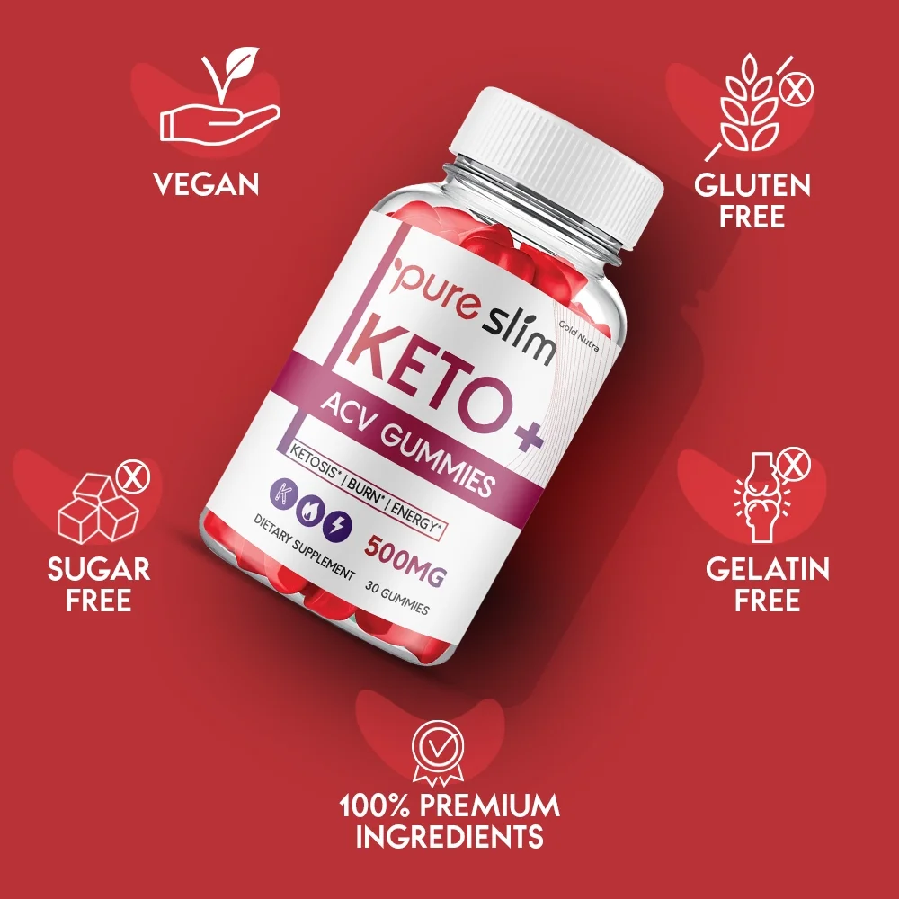 Pure Slim Keto ACV Gummies , Pure Slim Gummies, Apple Cider Vinegar Belly Fat Gummy Dietary Supplement Maximum Strength (2 Pack)