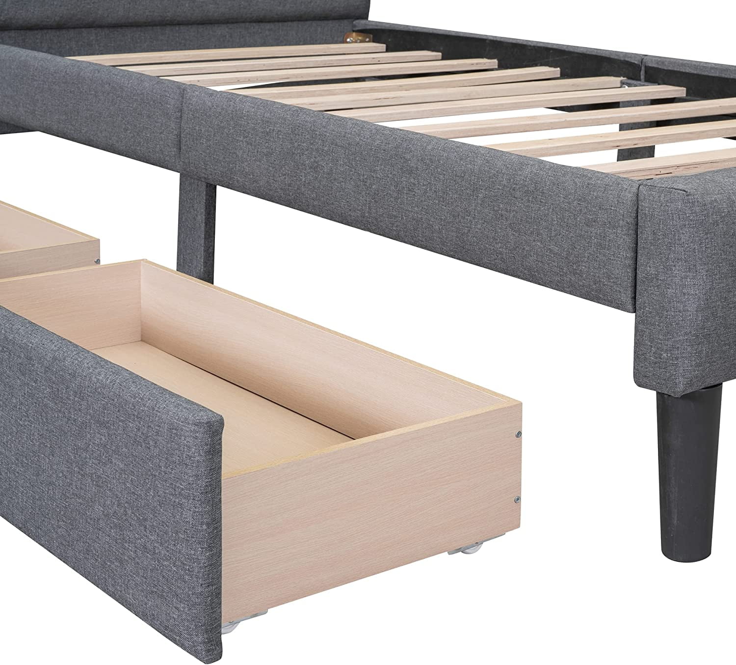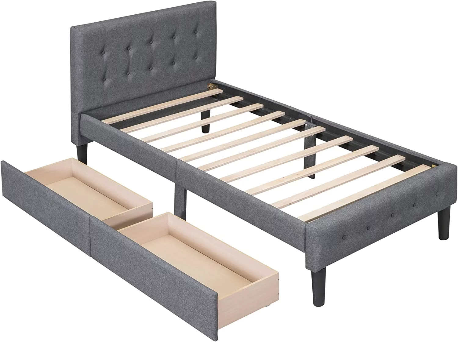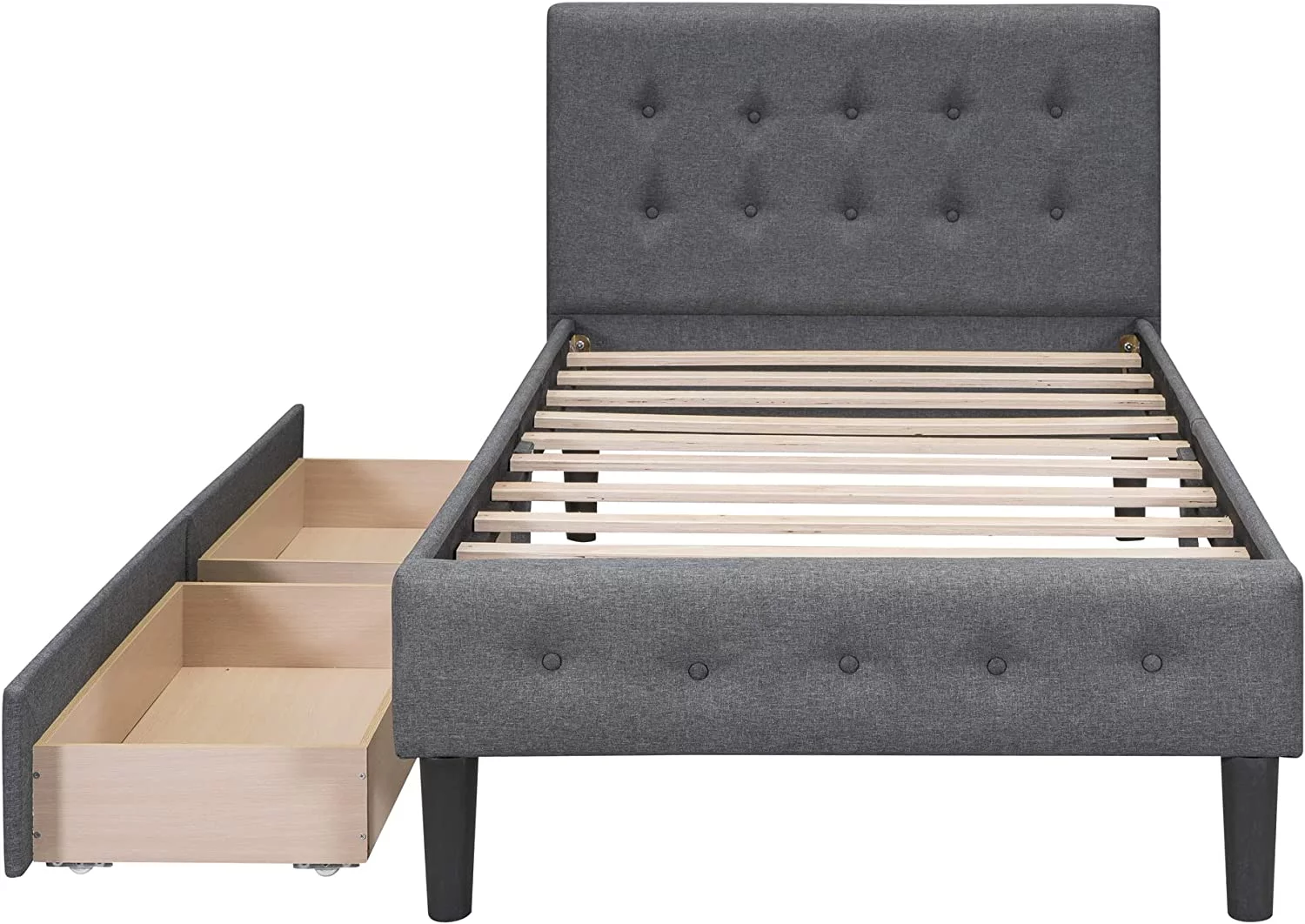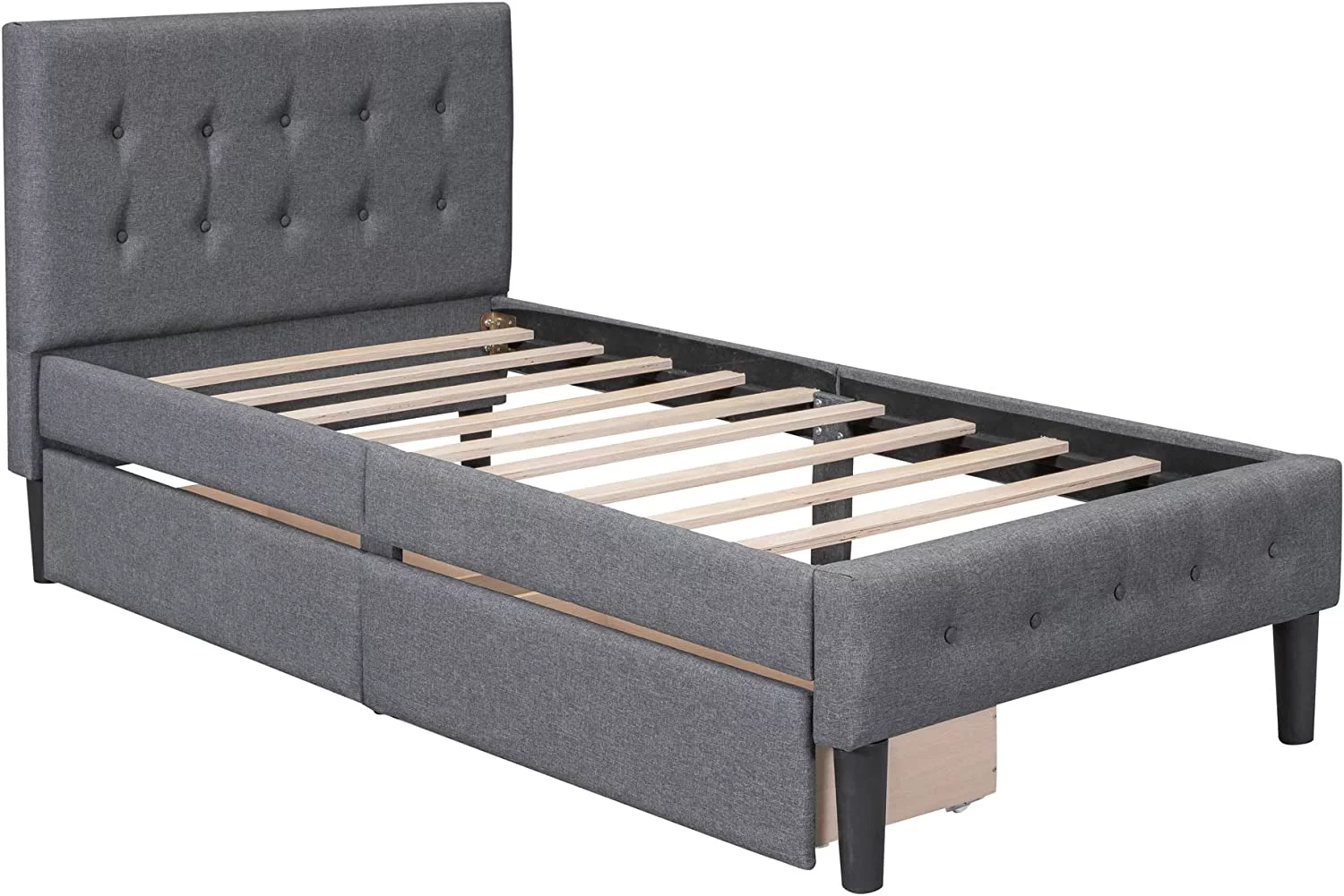 Tabaray Twin Bed Frames, Bed Frame Twin Storage Bed Upholstered Twin Size Bed Frames with Headboard and Storage Underneath, Wooden Slats Support, No Box Spring Needed,Beige
