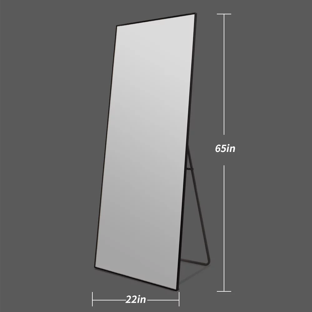 LAIYA LED Aluminum Full Body Rectangular Mirror Large Size Floor Mirror With Bracket Touch Button Furniture Decoration Mirror (65"X22" black)