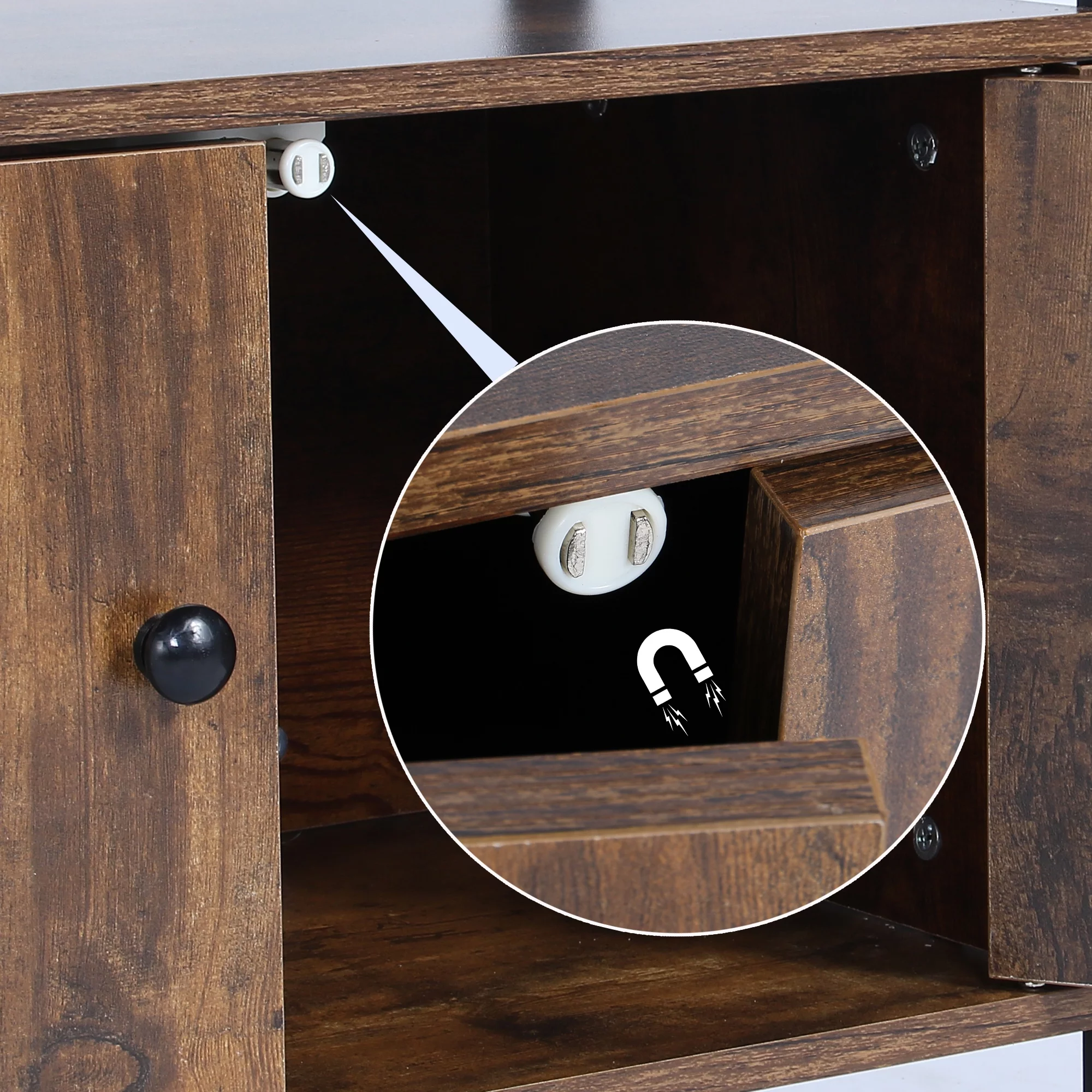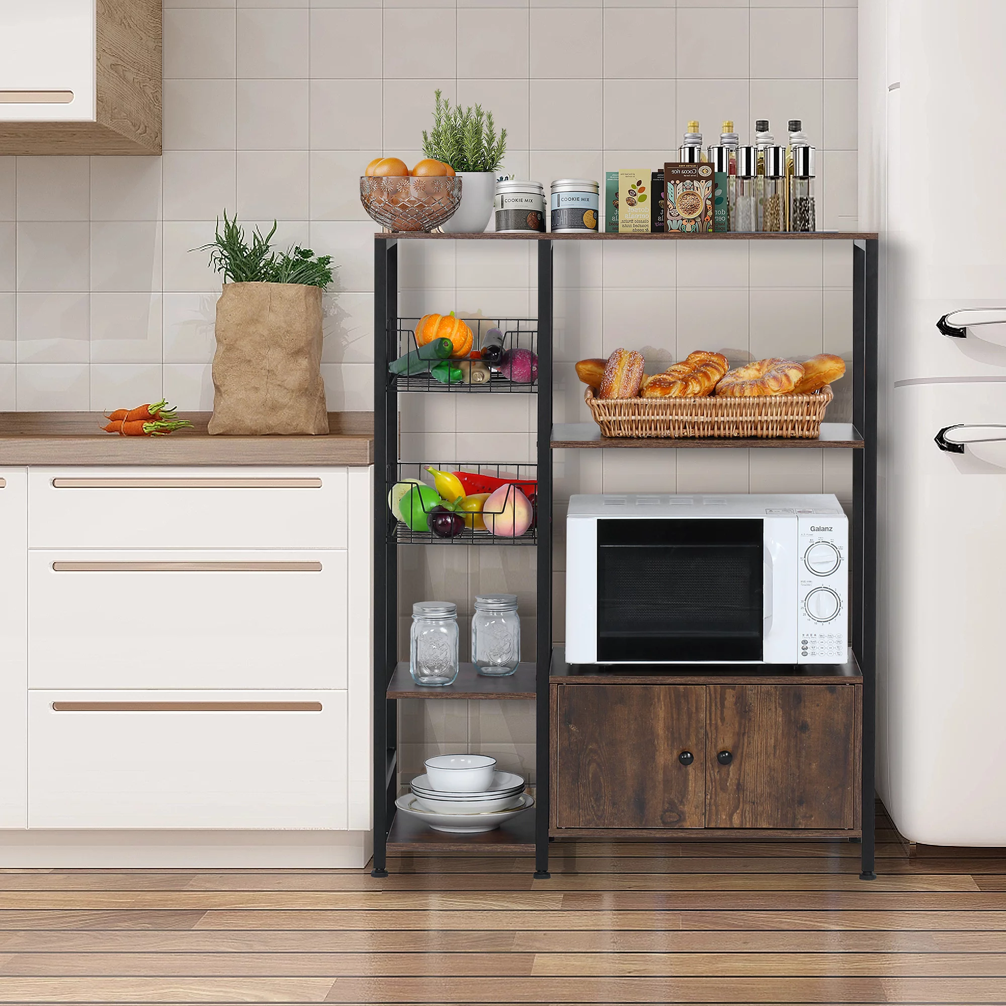NAIYUFA 5-Tier Kitchen Bakers Rack,Microwave Oven Stand Wood Brown Shelf with Cabinet