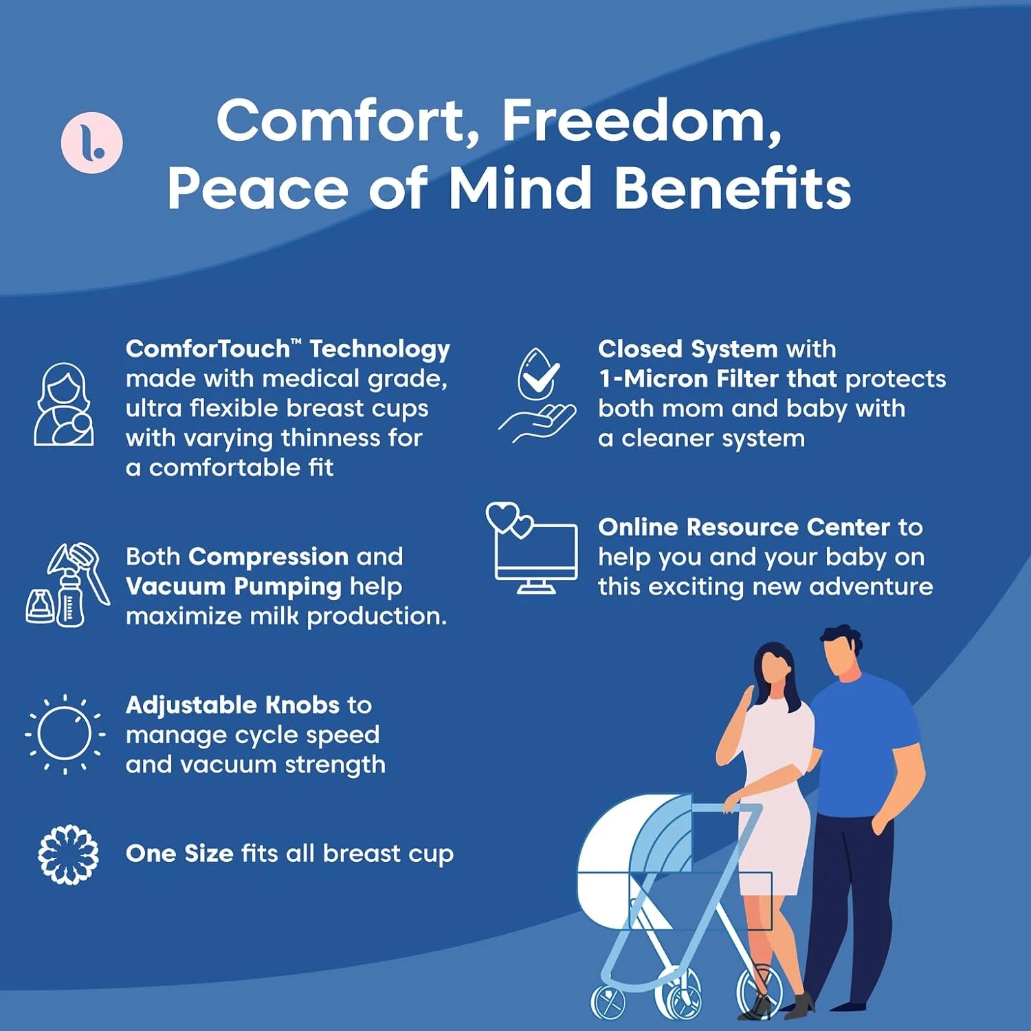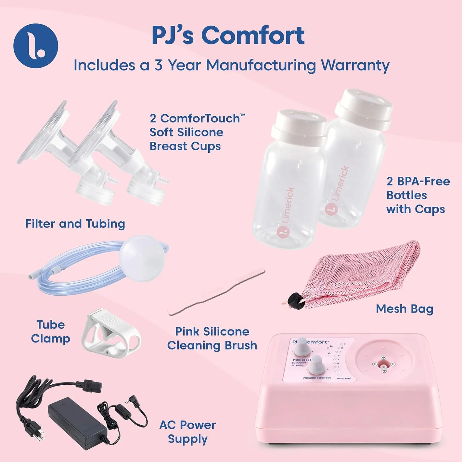 Limerick PJ's Comfort Electric Breast Pump, Hospital Grade Compression & Vaccum Technology, Dual Soft Silicone Breast Cups