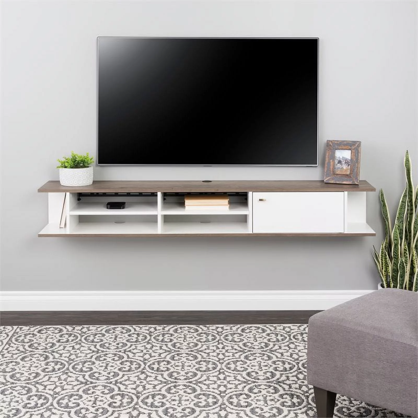 Pemberly Row Transitional Wood Wall Mounted TV Stand for TVs up to 70" in White