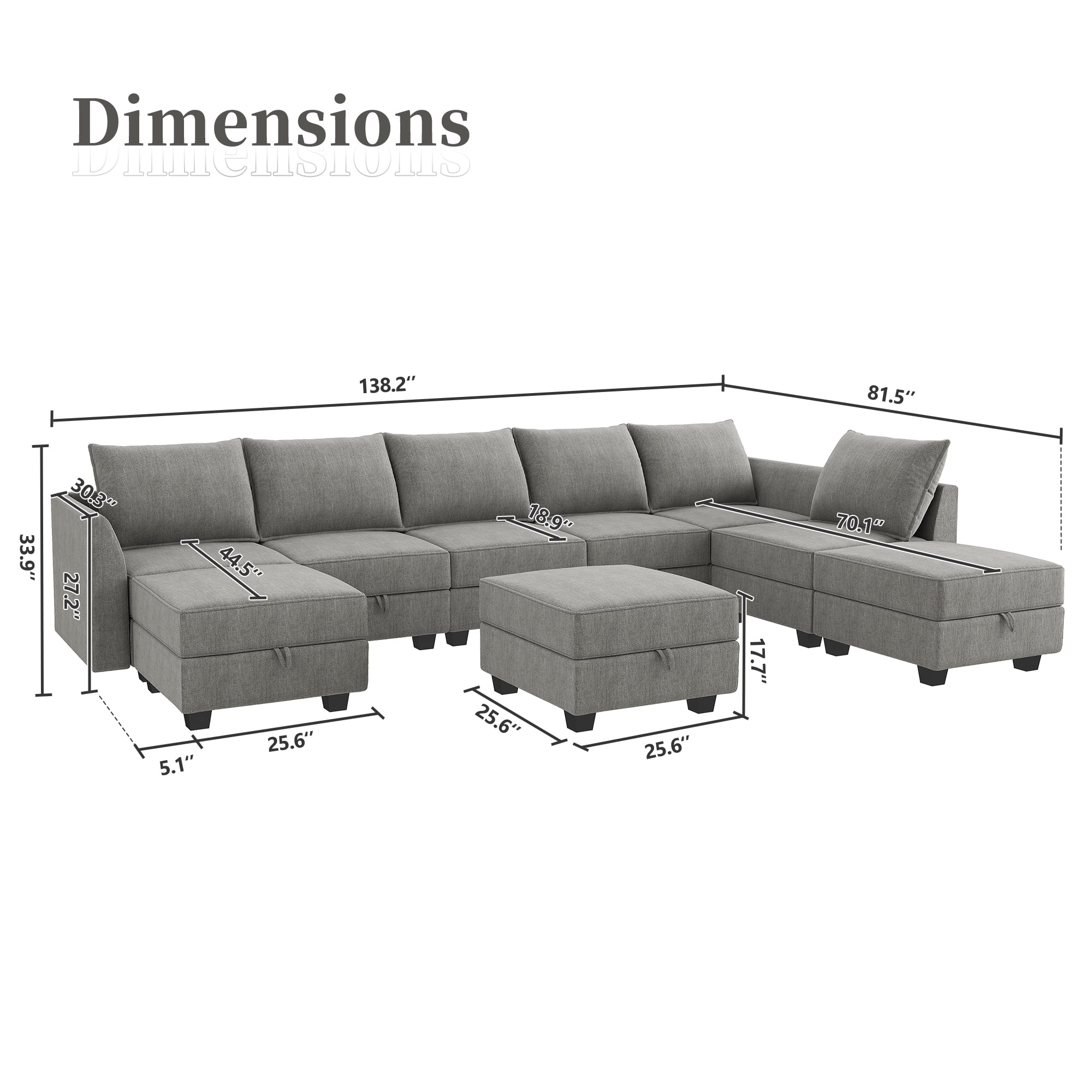 HONBAY Reversible Sectional Sofa Couch Set U Shaped Couch Sofa Sets for for Apartment/Living Room 8 Seats Sofa Sectional with Storage Ottomans, Grey