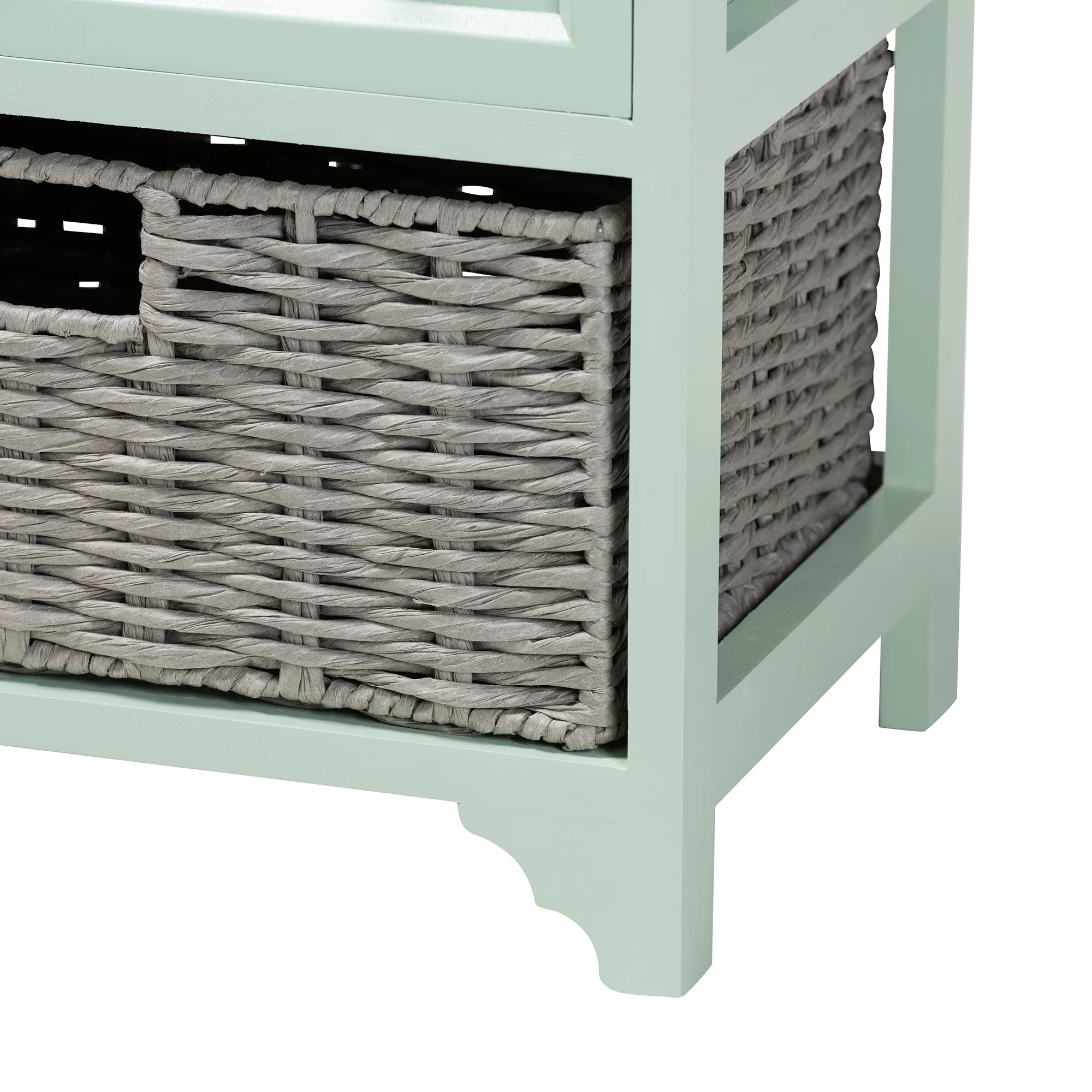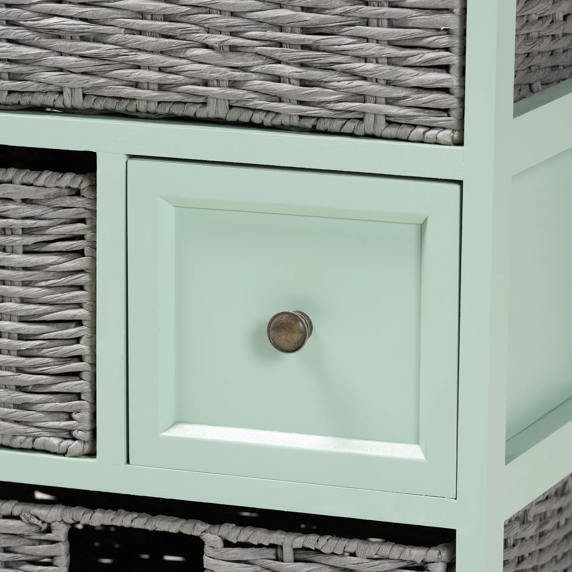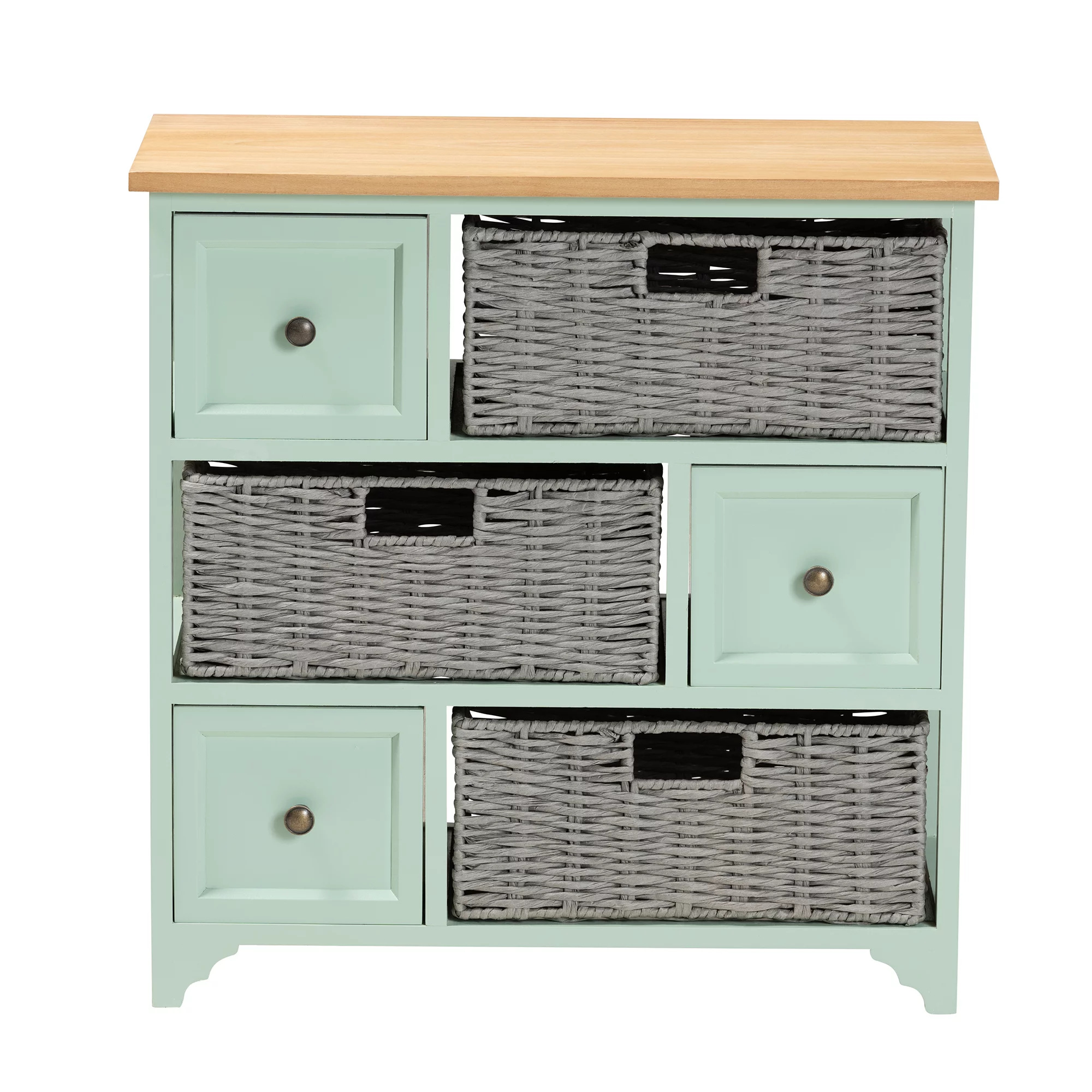 Baxton Studio Valtina Modern and Contemporary Two-Tone Oak Brown and Mint Green Finished Wood 3-Drawer Storage Unit with Baskets