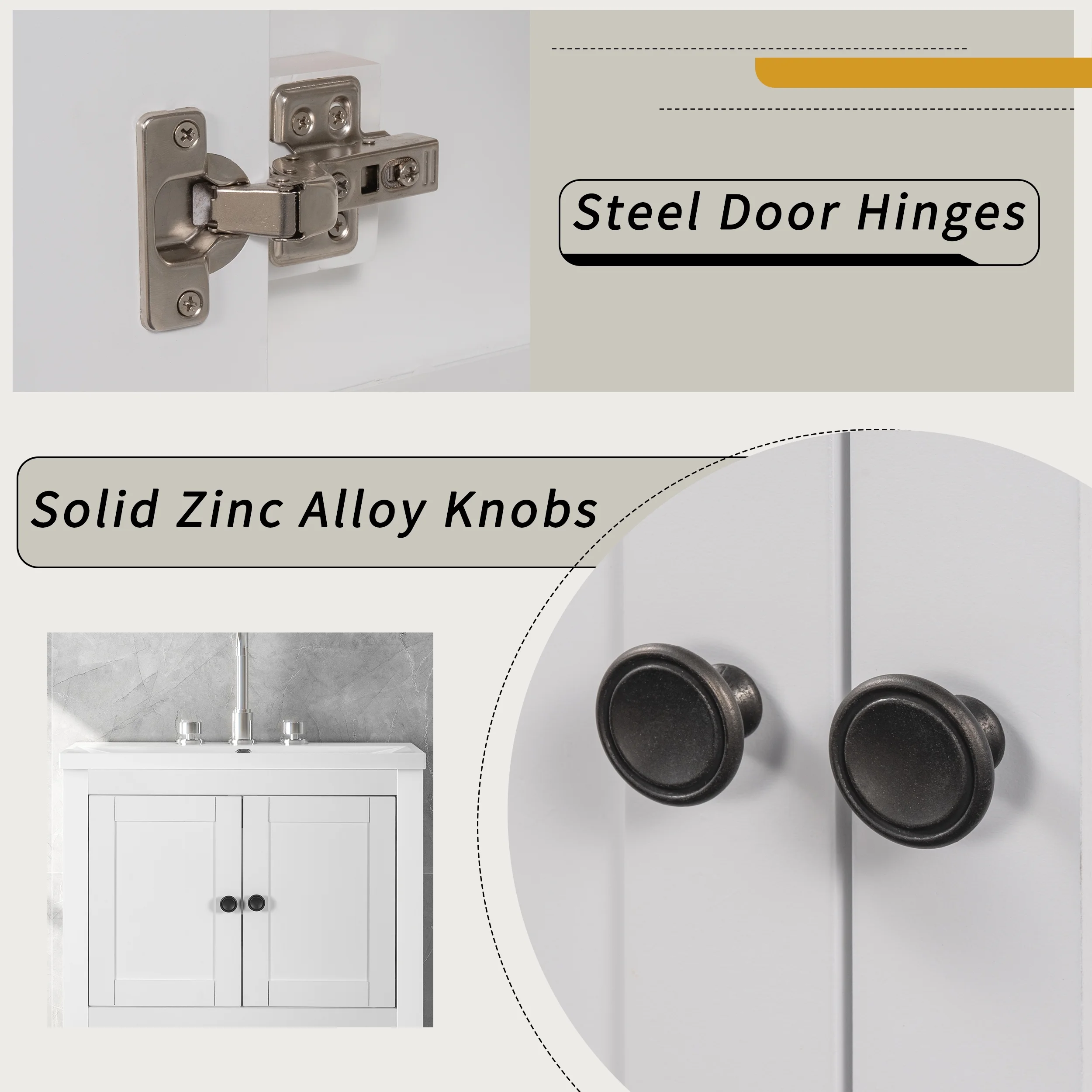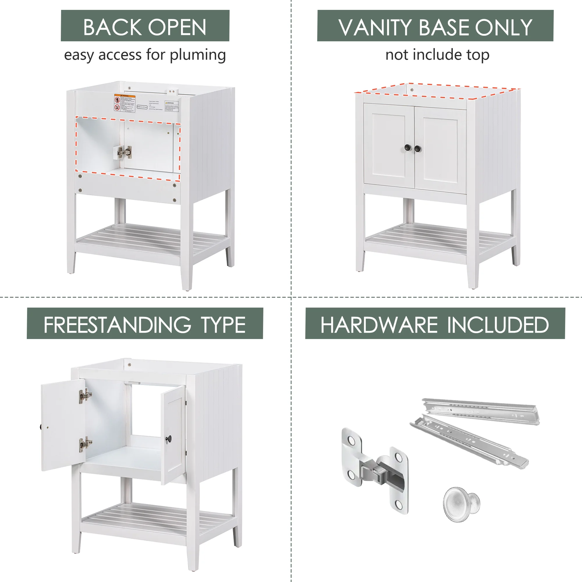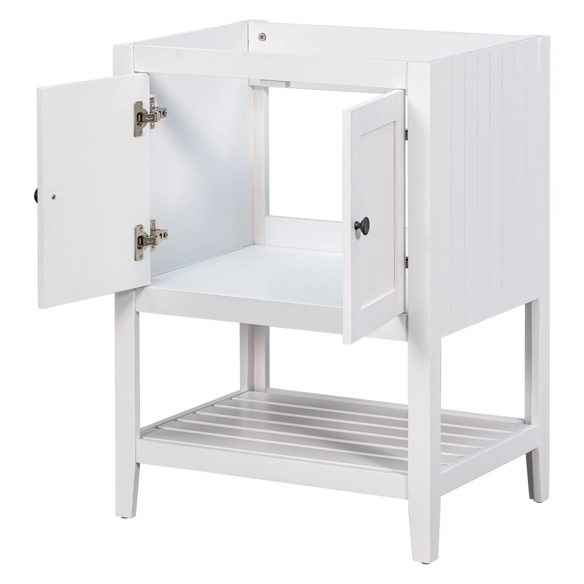 24" Bathroom Vanity Base Only, Soild Wood Frame, Bathroom Storage Cabinet with Doors and Open Shelf, White