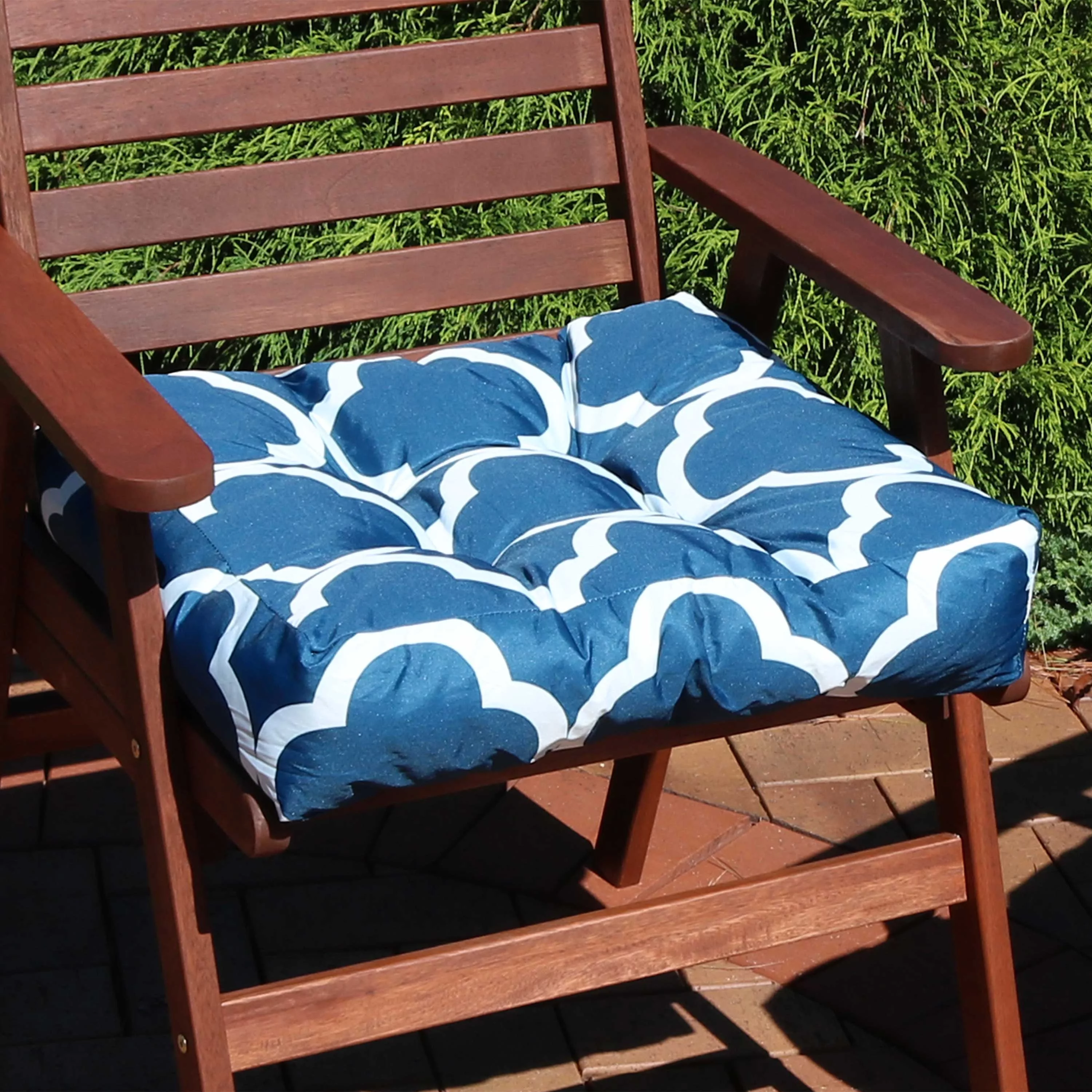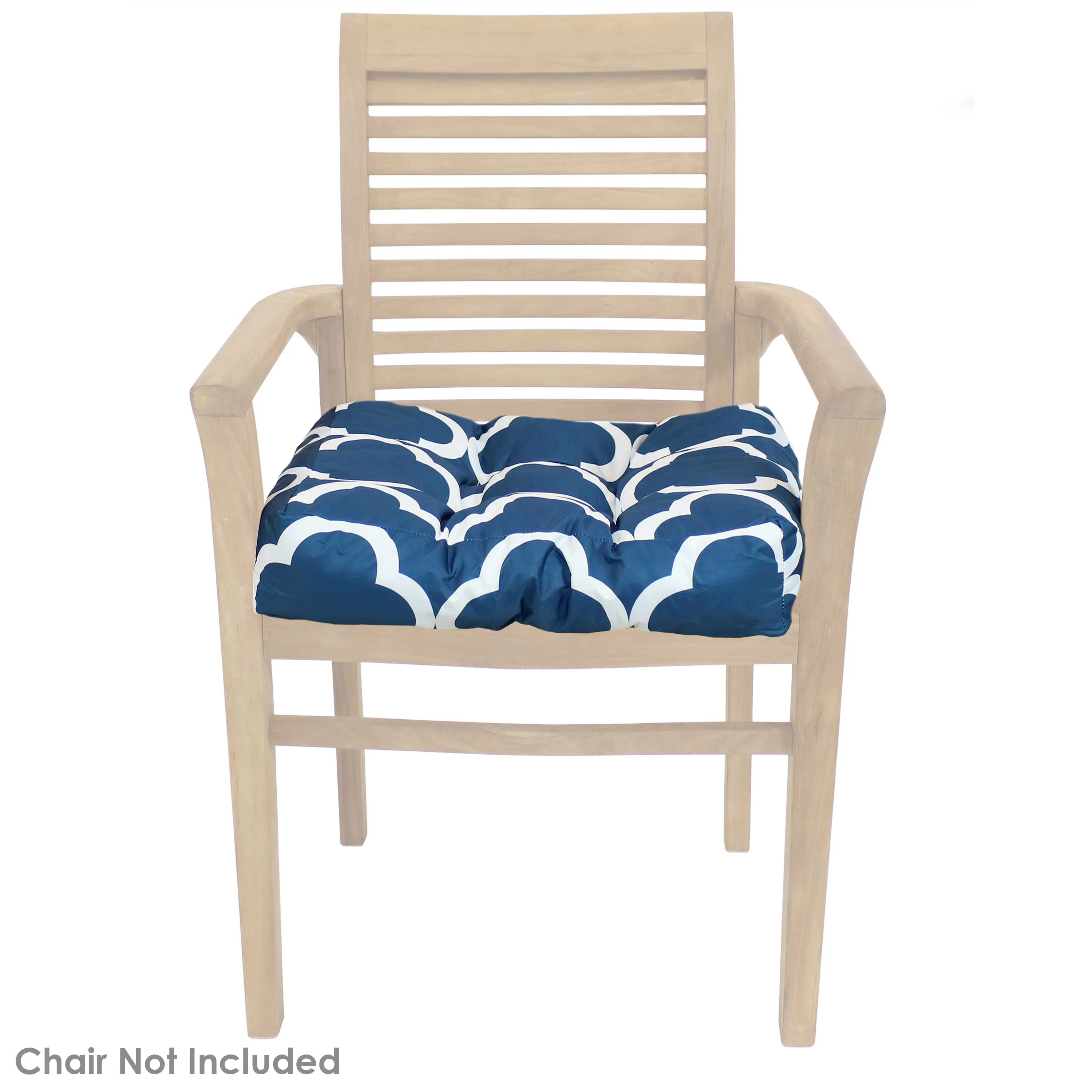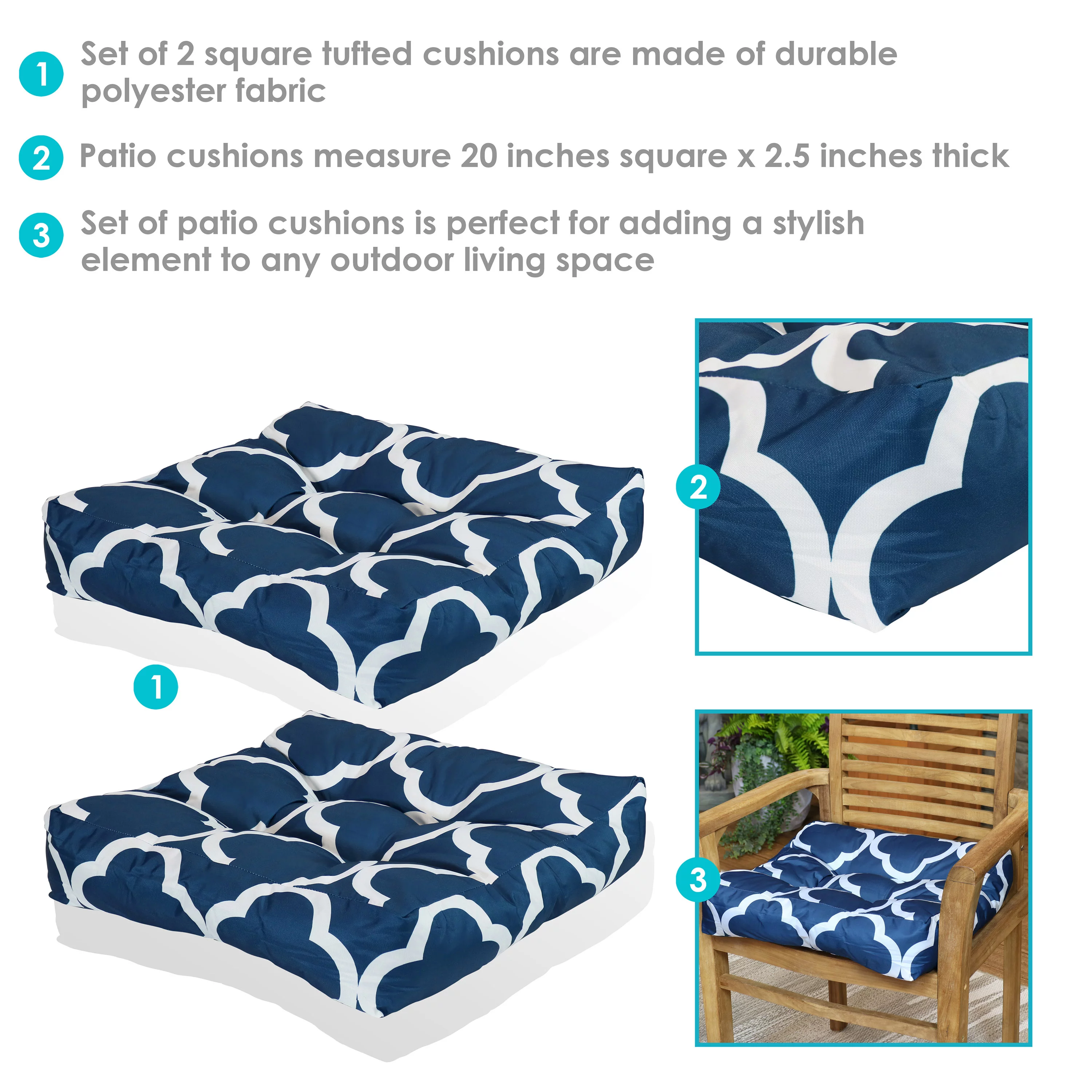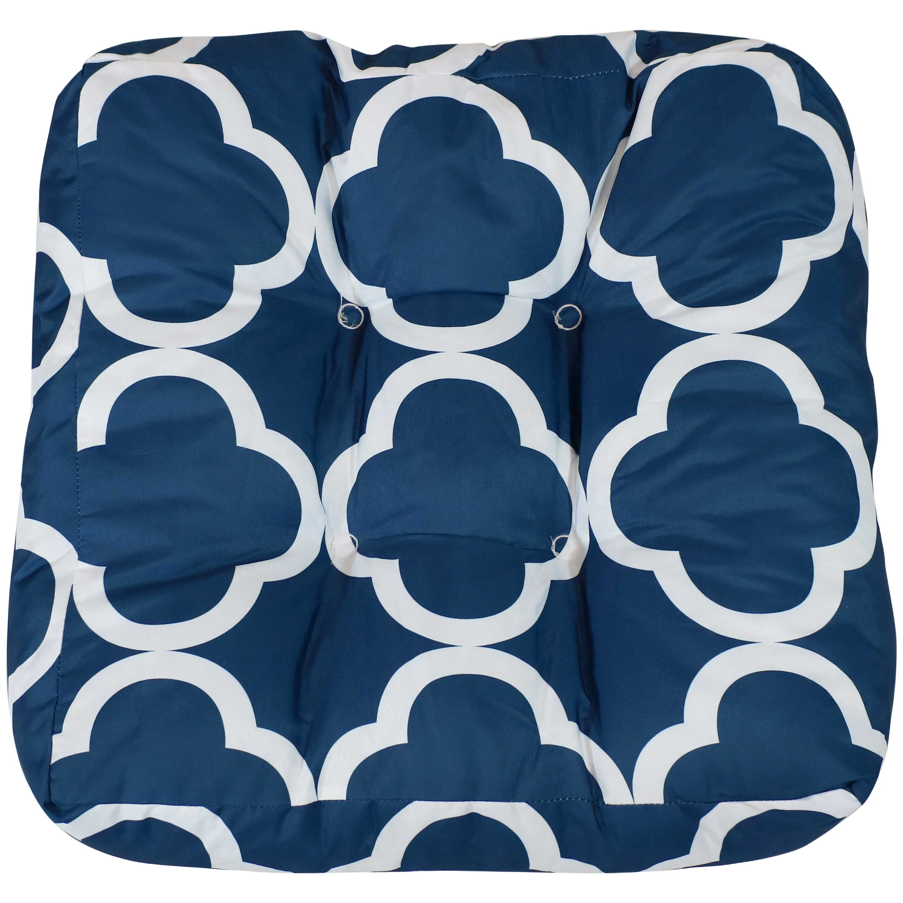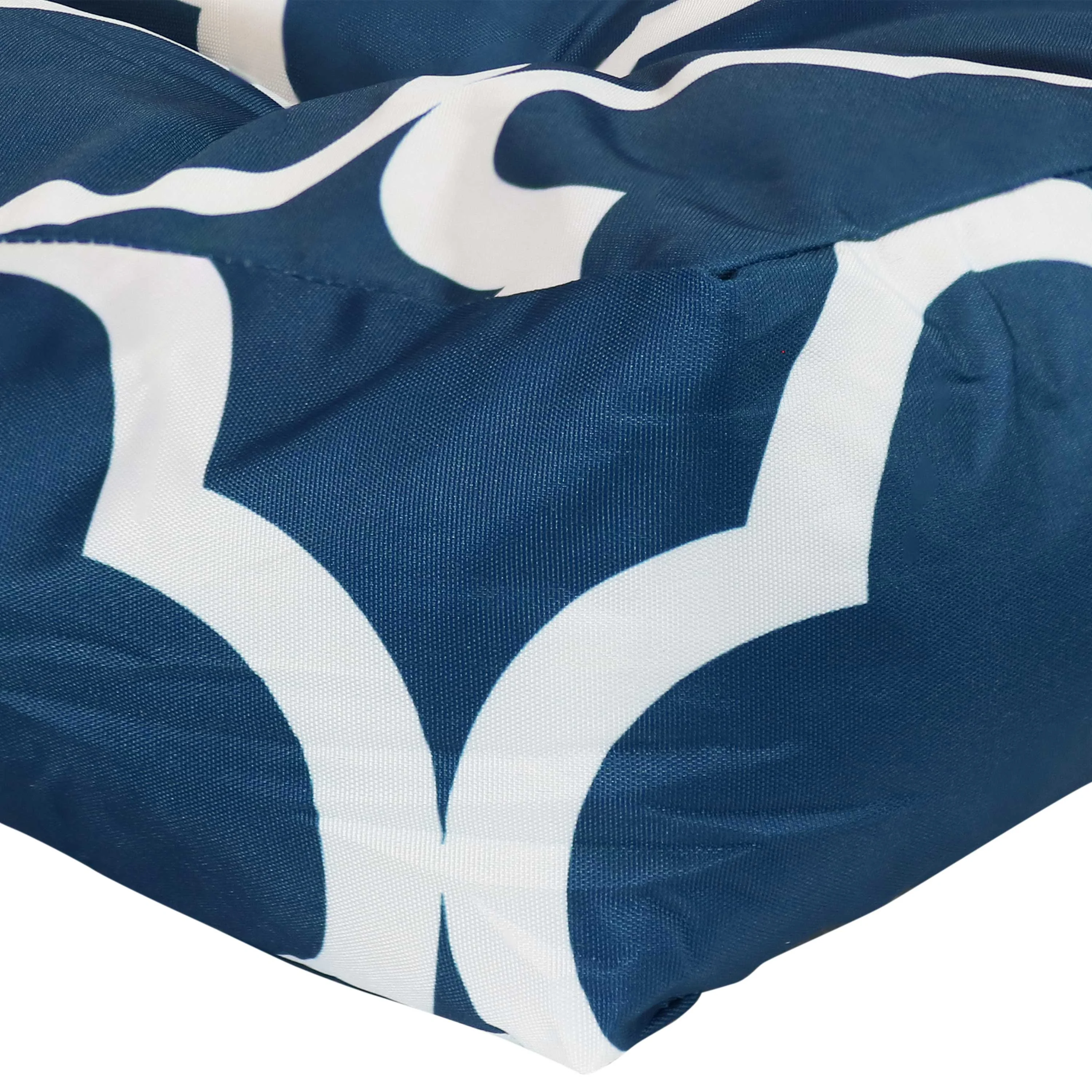 Sunnydaze Indoor/Outdoor Replacement Square Tufted Patio Chair Seat and Back Cushions - 20" - Navy Blue and White Quatrefoil - 2pk