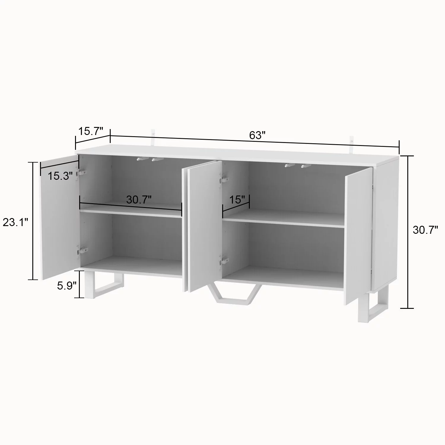 Modern Credenza Sideboard Buffet Pop-Up Doors Buffet Sideboard 63inch