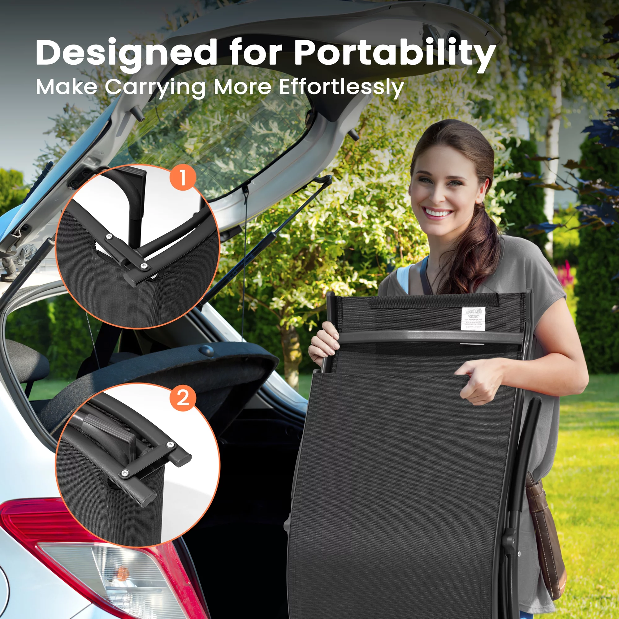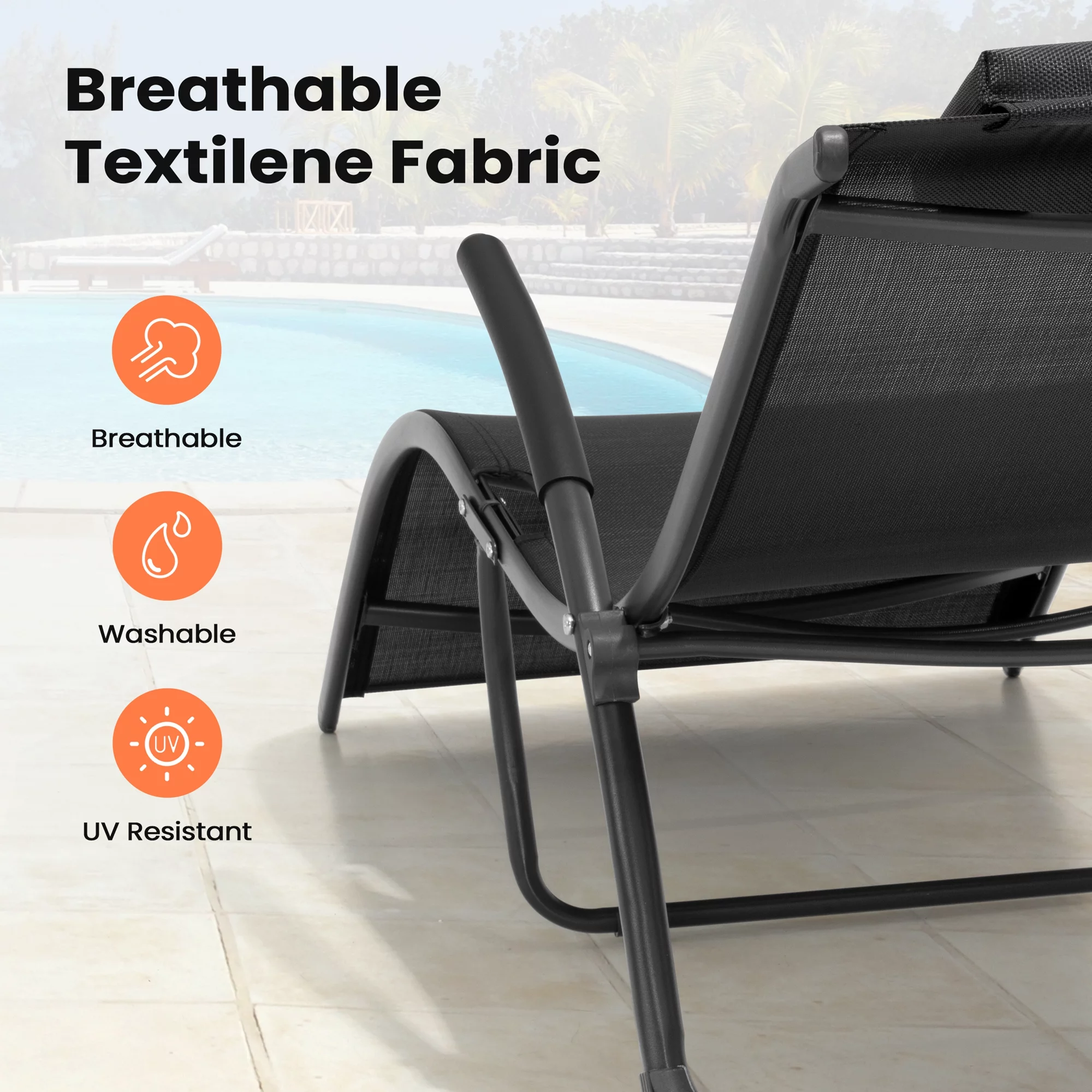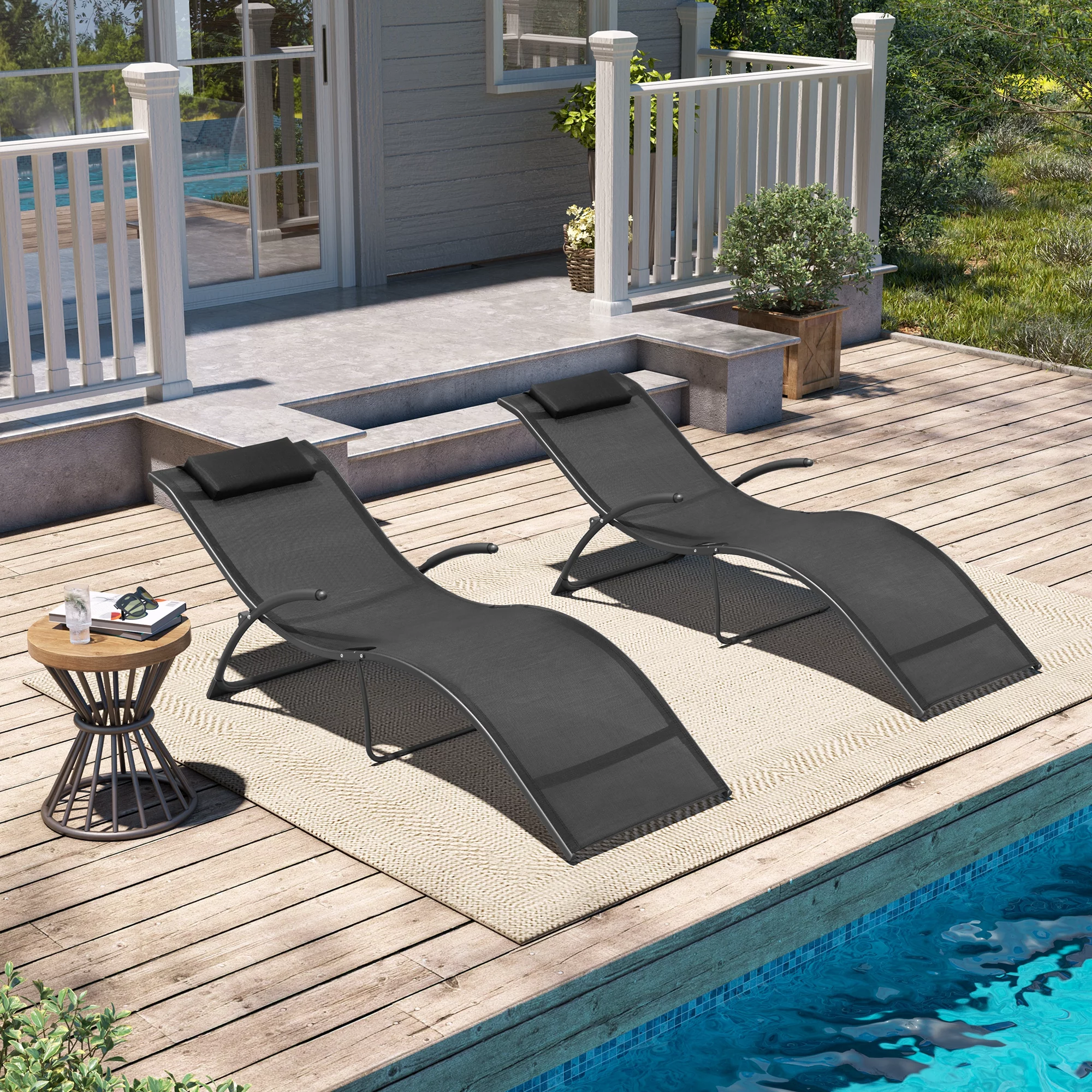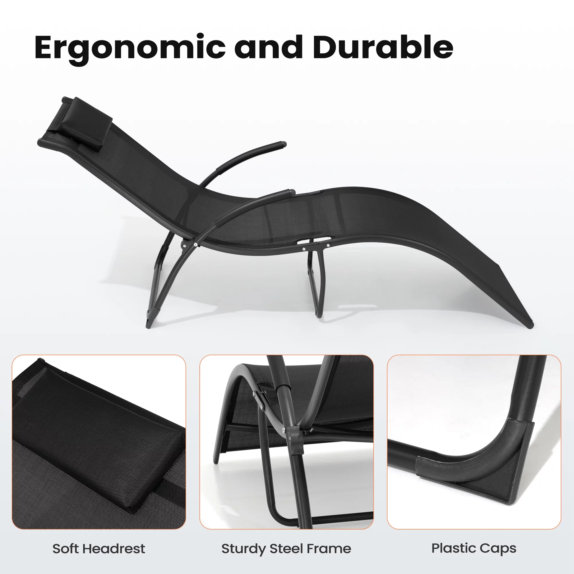 Pellebant 2 PCS Outdoor Chaise Lounge Patio Steel Pool Portable Folding Lounge Chairs, Black