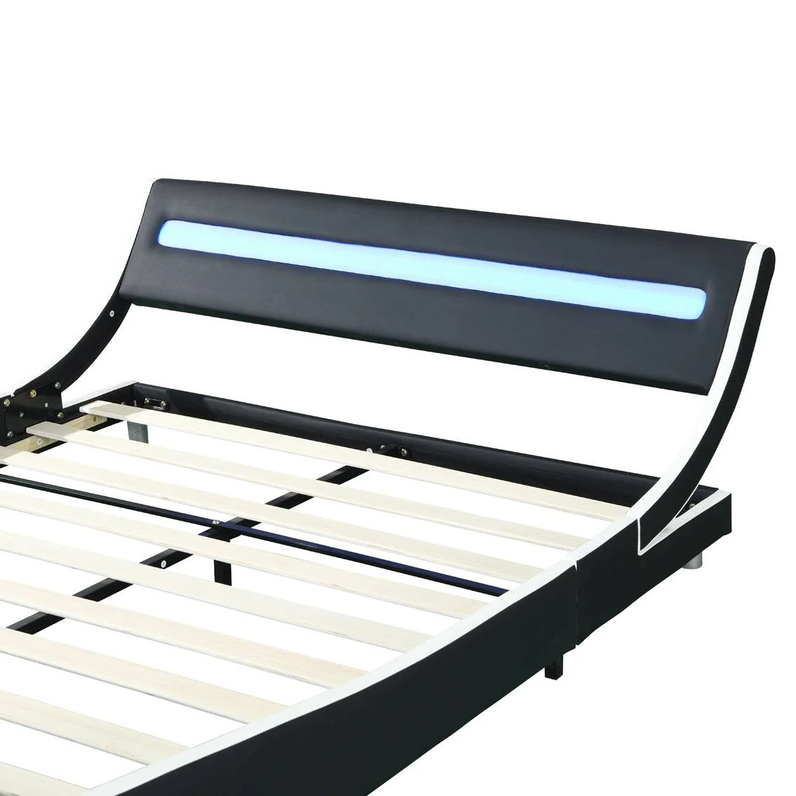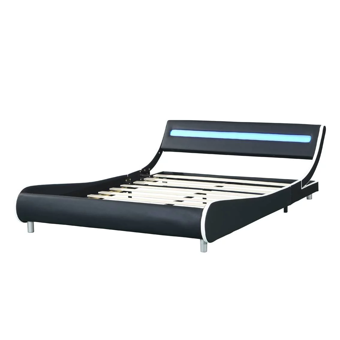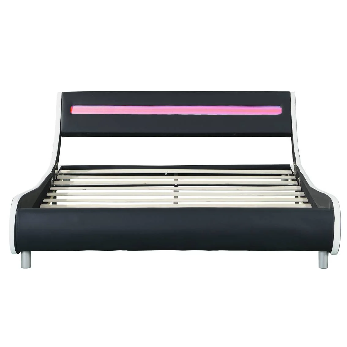 Faux Leather Upholstered Platform Bed Frame with Led Lighting Wood Slat Support Queen Size