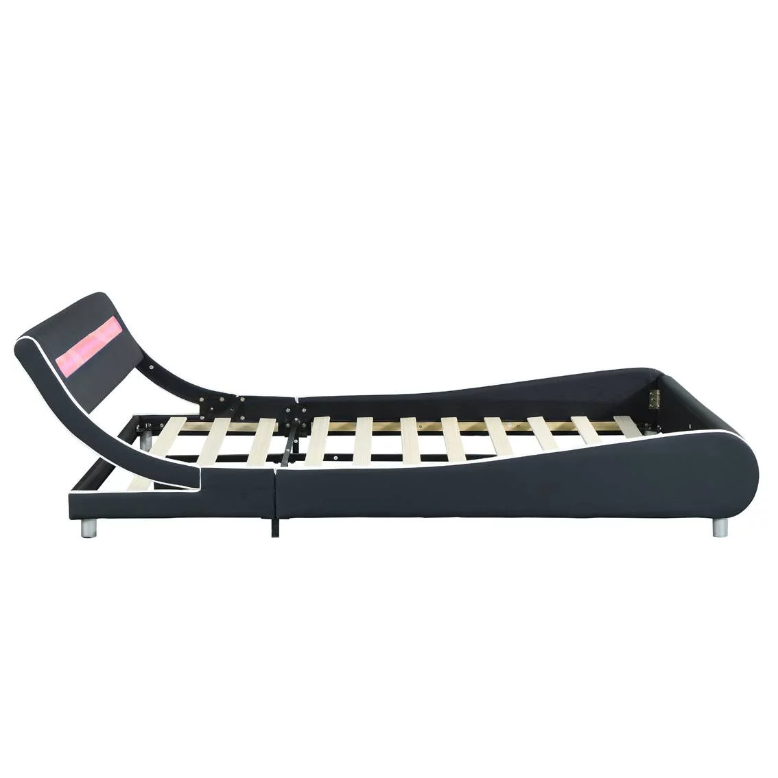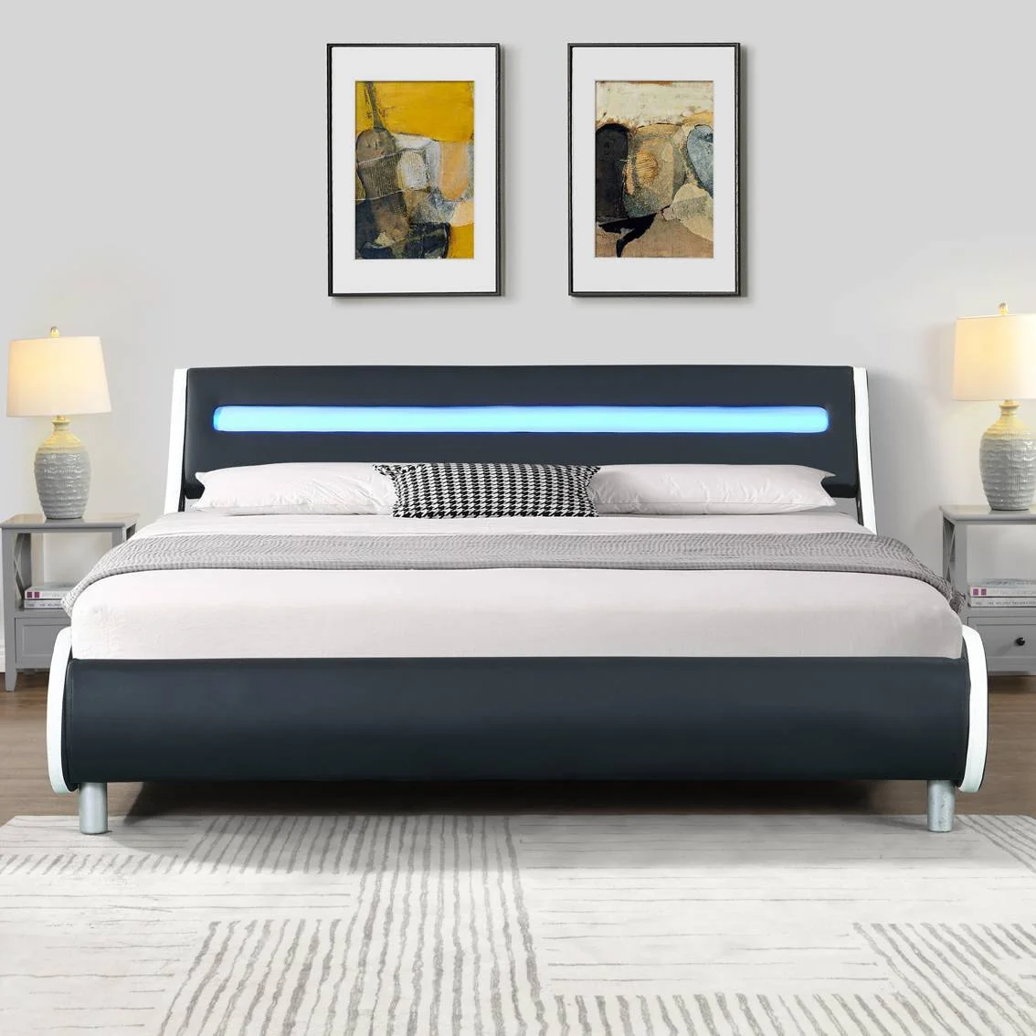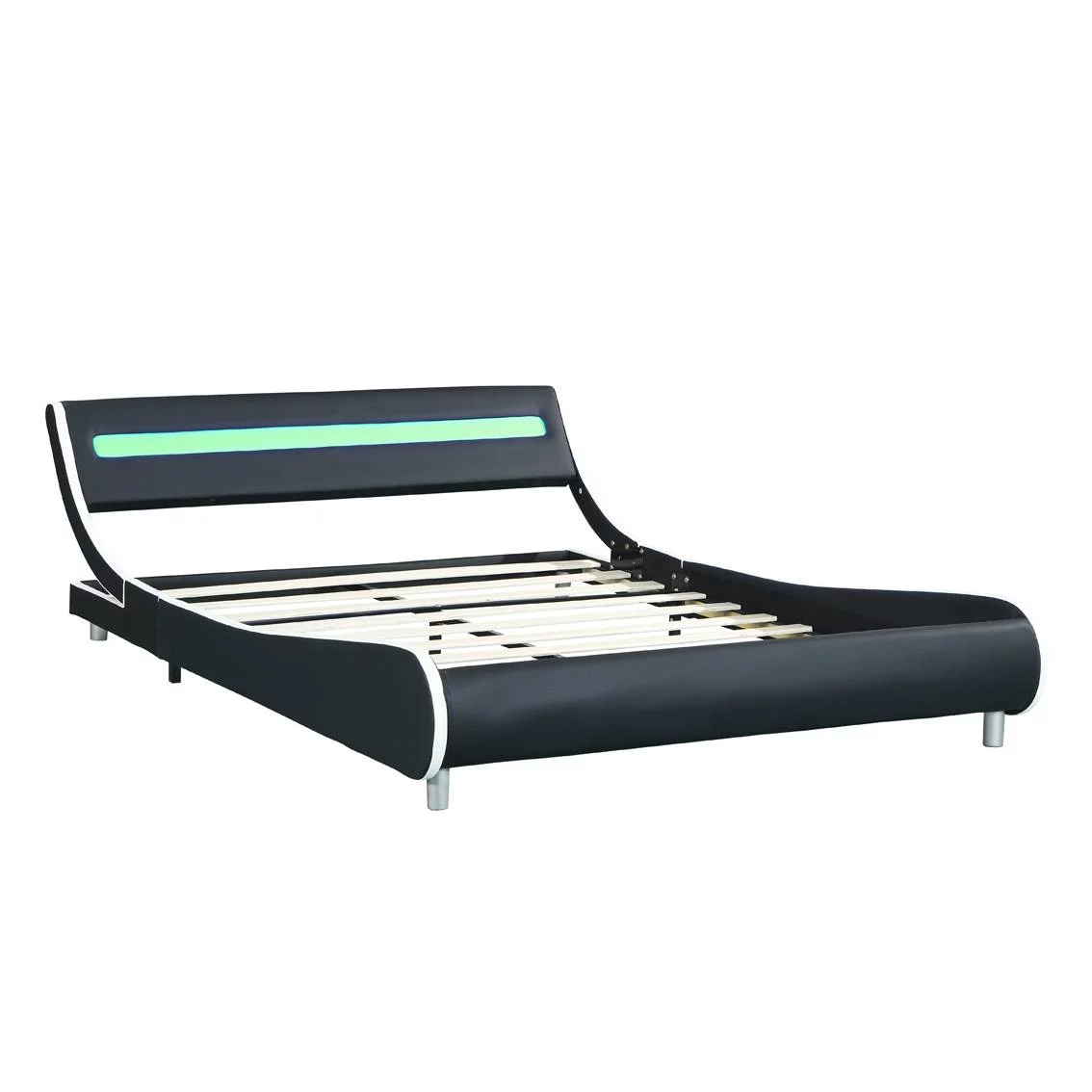 Faux Leather Upholstered Platform Bed Frame with Led Lighting Wood Slat Support Queen Size