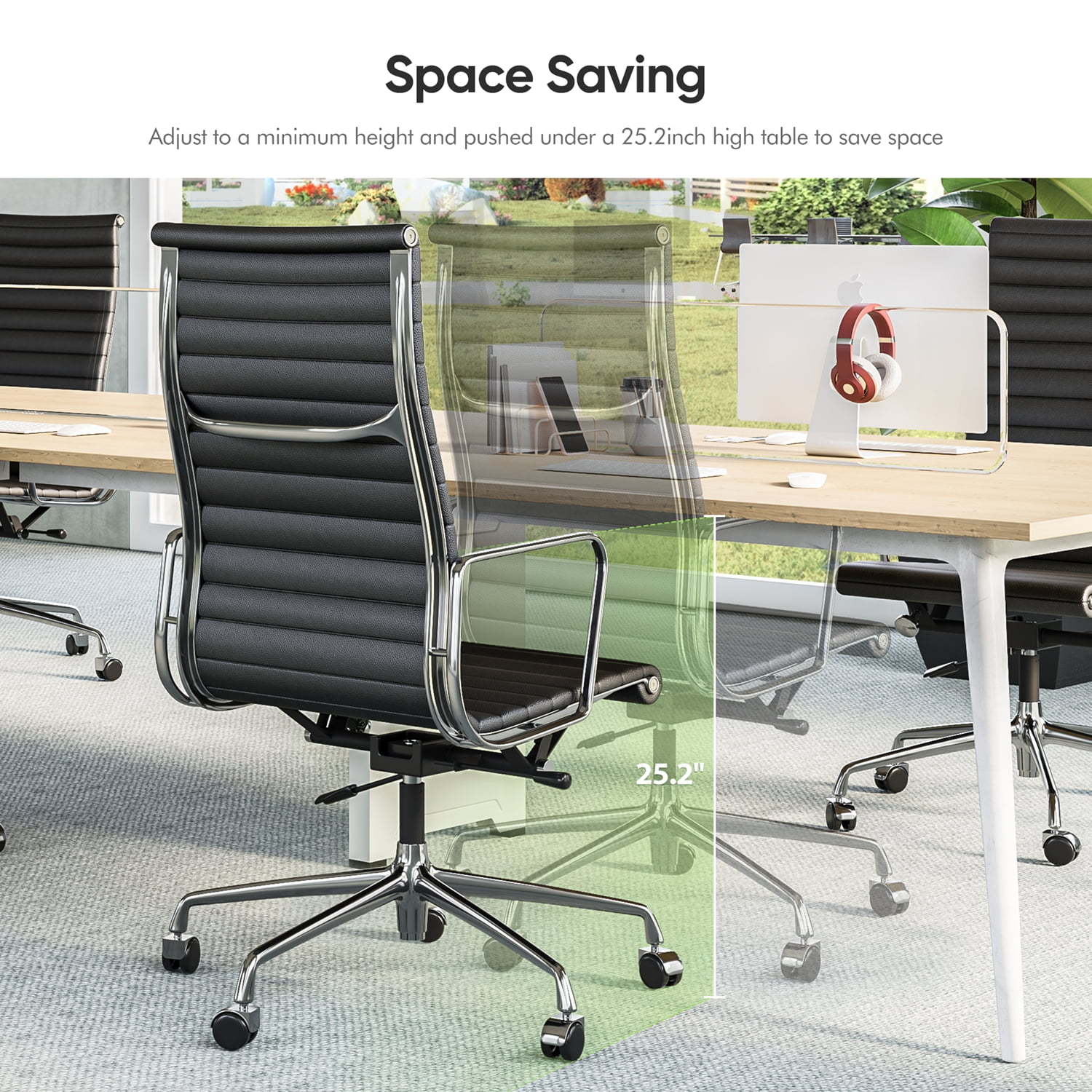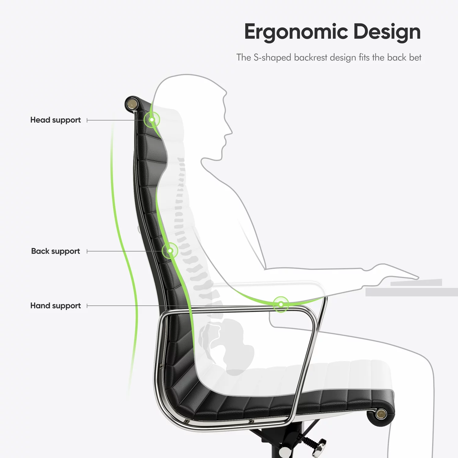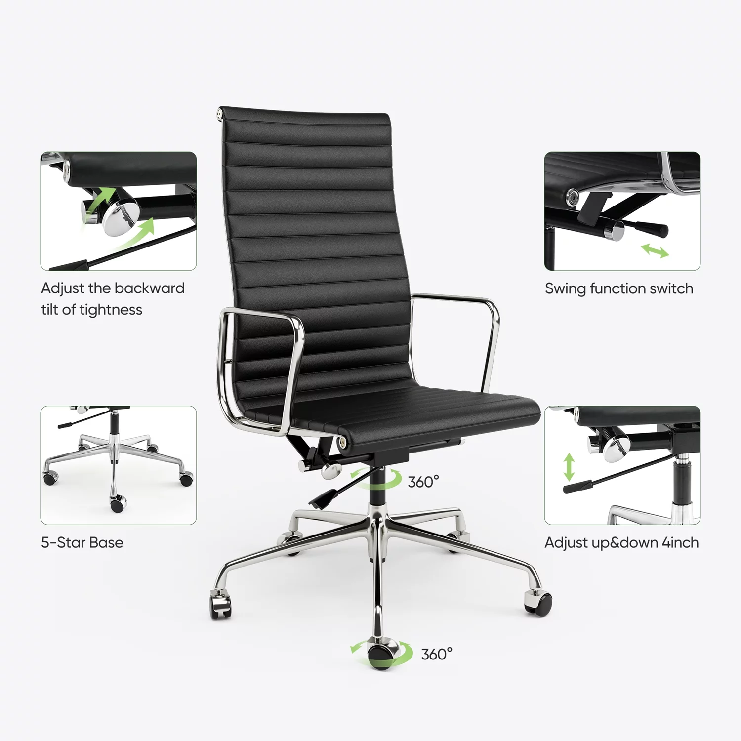 High Back Office Chair Ergonomic Office Chair Swivel Leather Task Chair with Lumbar Support,Adjustable Height,Black