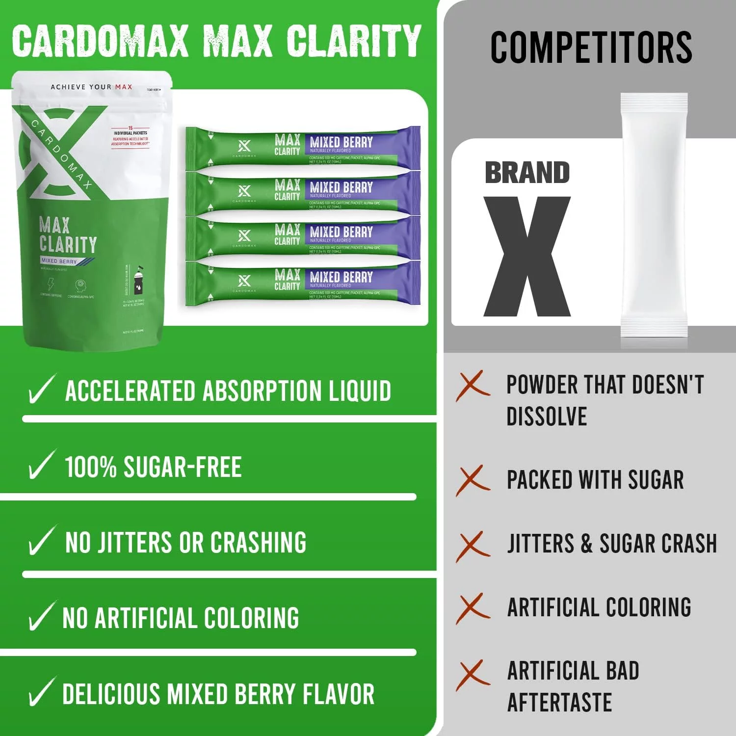 CARDOMAX Max Clarity Nootropics Brain Support Supplement with Liquid Caffeine, Alpha GPC & L-Theanine, Brain Booster for Memory, Mental Clarity & Focus, Liquid Nootropic, 15 Count