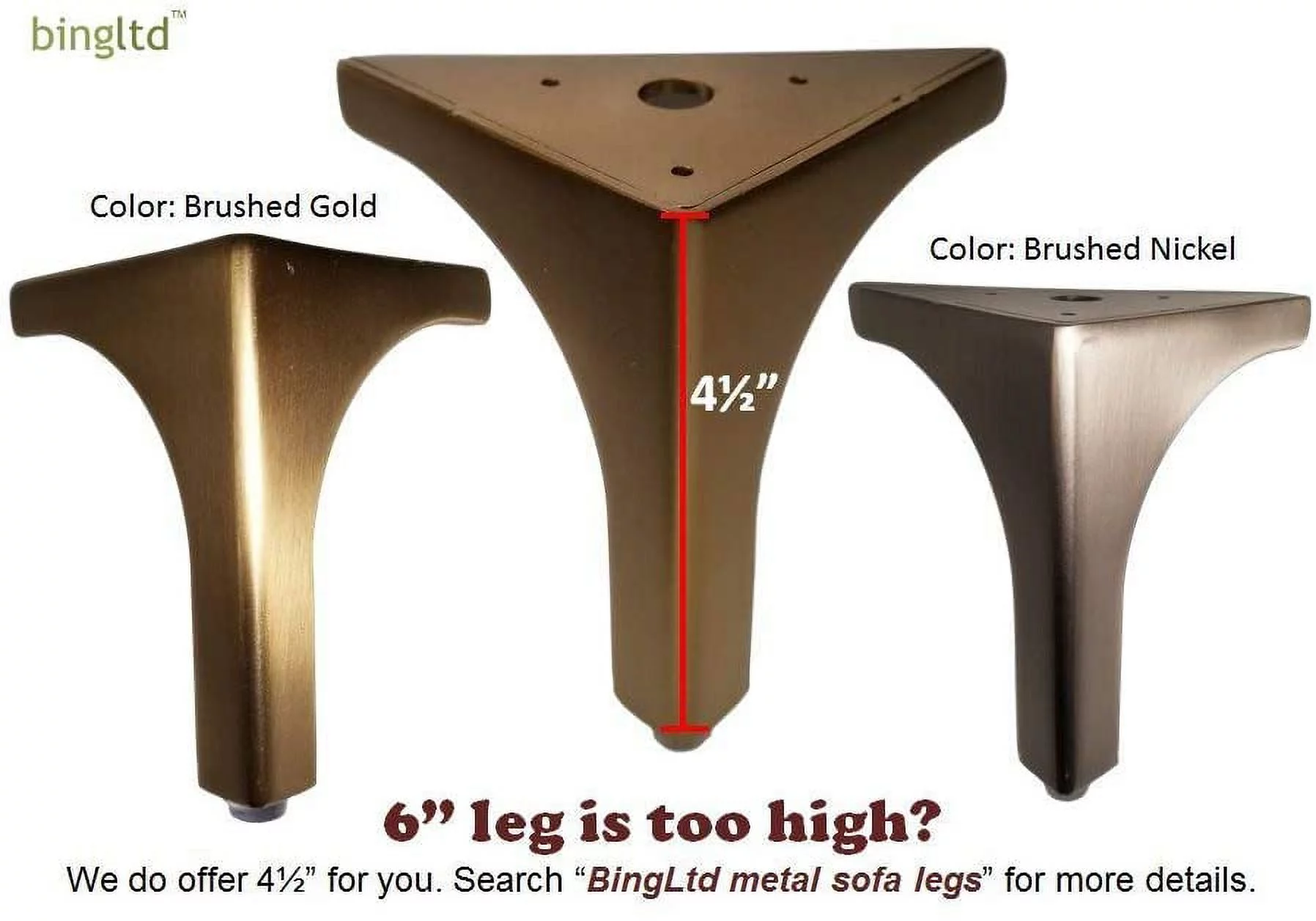 BingLTD - 6" Brushed Gold Metal Sofa Legs - Set of 4 (ML-60T-BG)