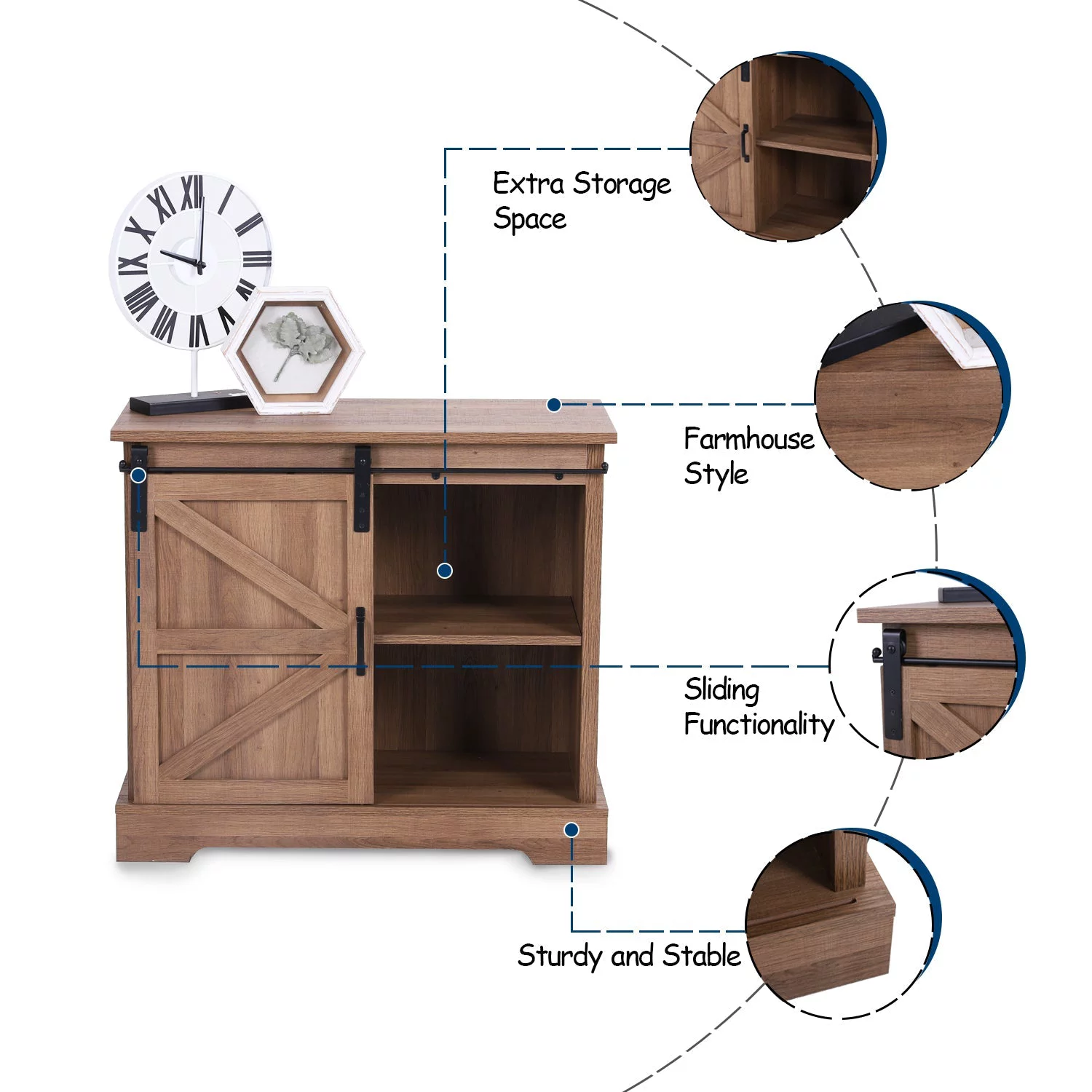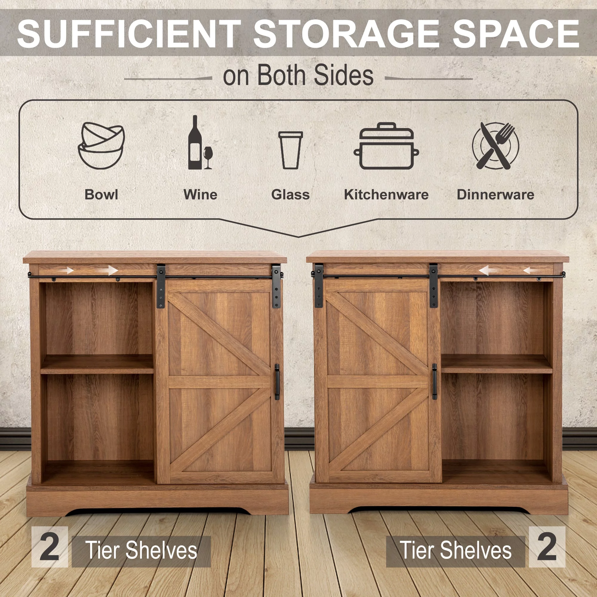Sophia&William Farmhouse 32'' Sliding Barn Door Accent Storage Cabinet Sideboard-Brown
