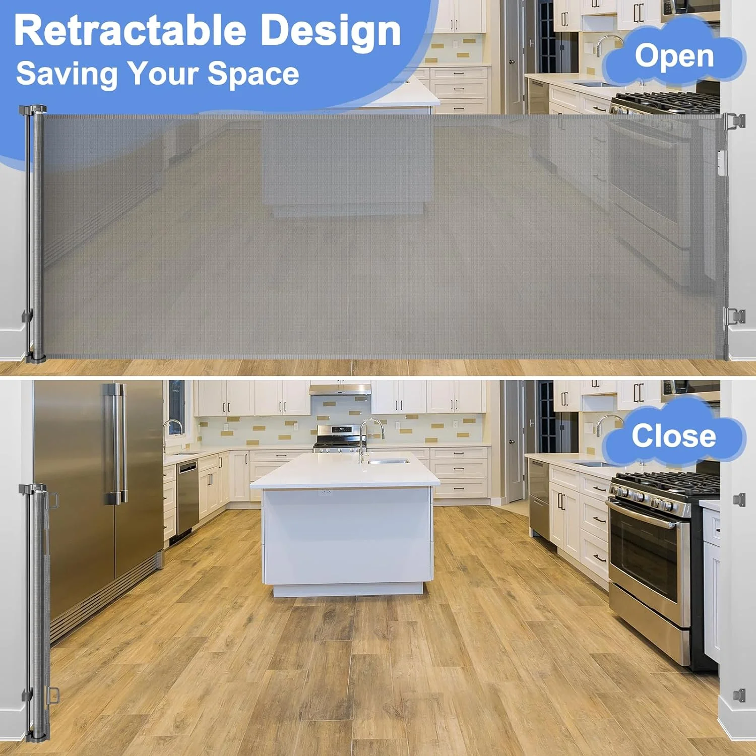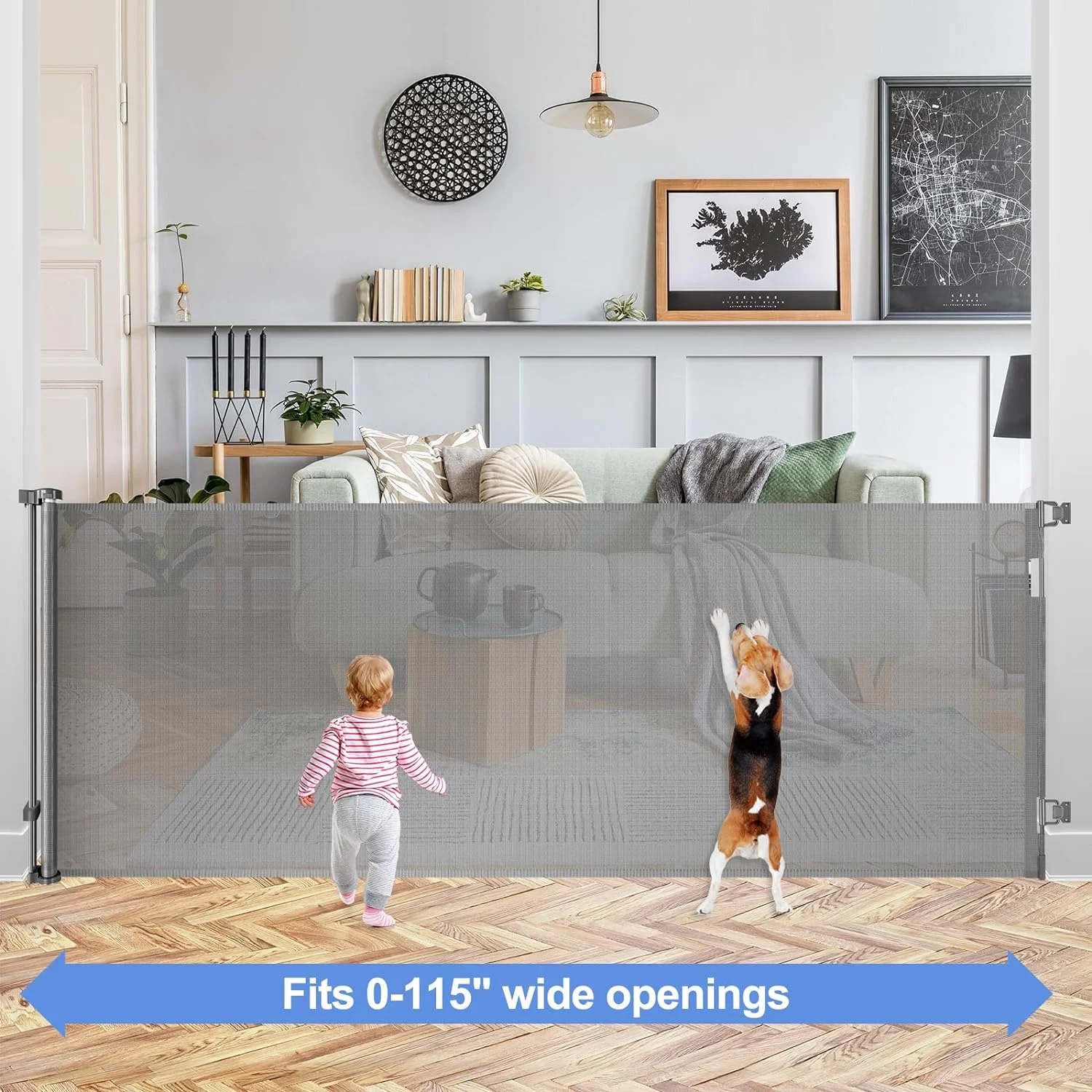 42" Tall X 115" Extra Wide Baby Gates for Large Openings Outdoor Retractable Gate Baby Gate Long Retractable Baby Gates for Stairs Child Gate for Wide Openings Baby Gate Retractable Fence Outdoor Gate