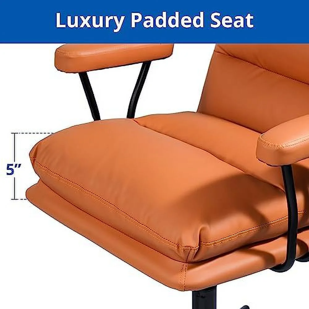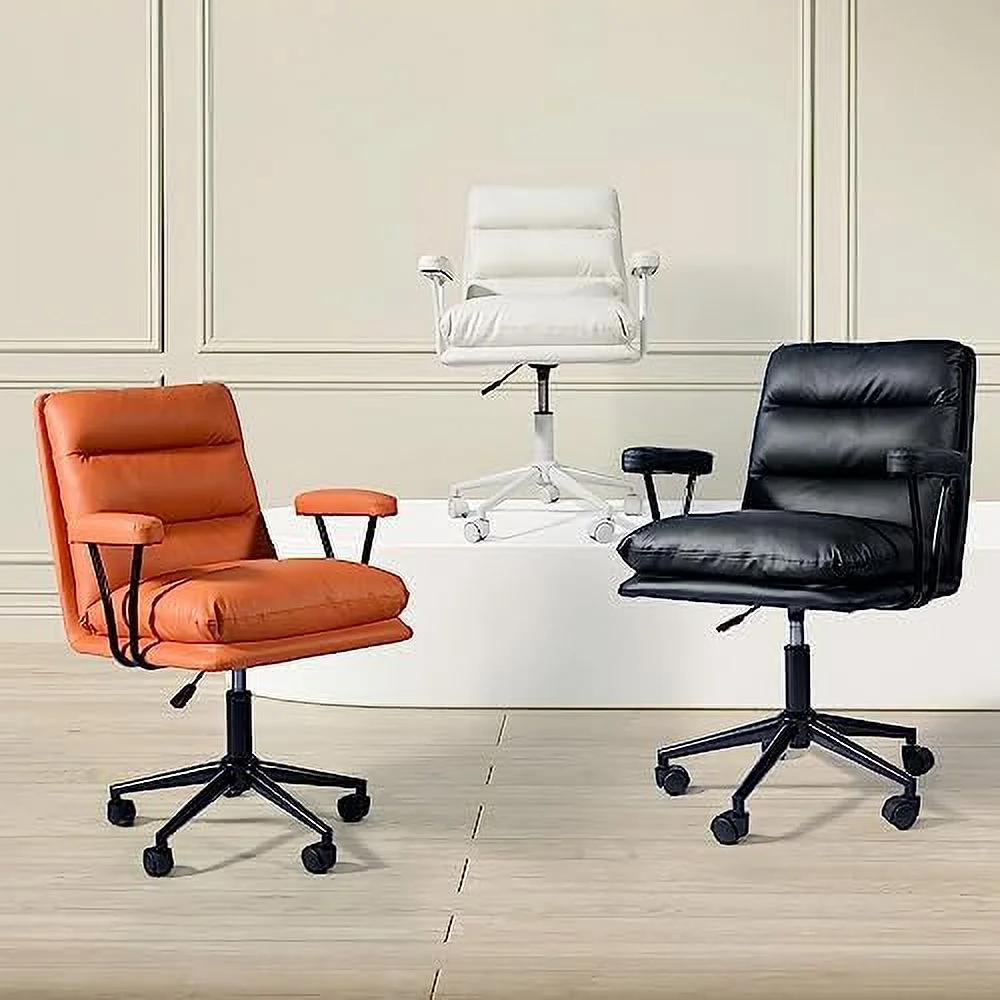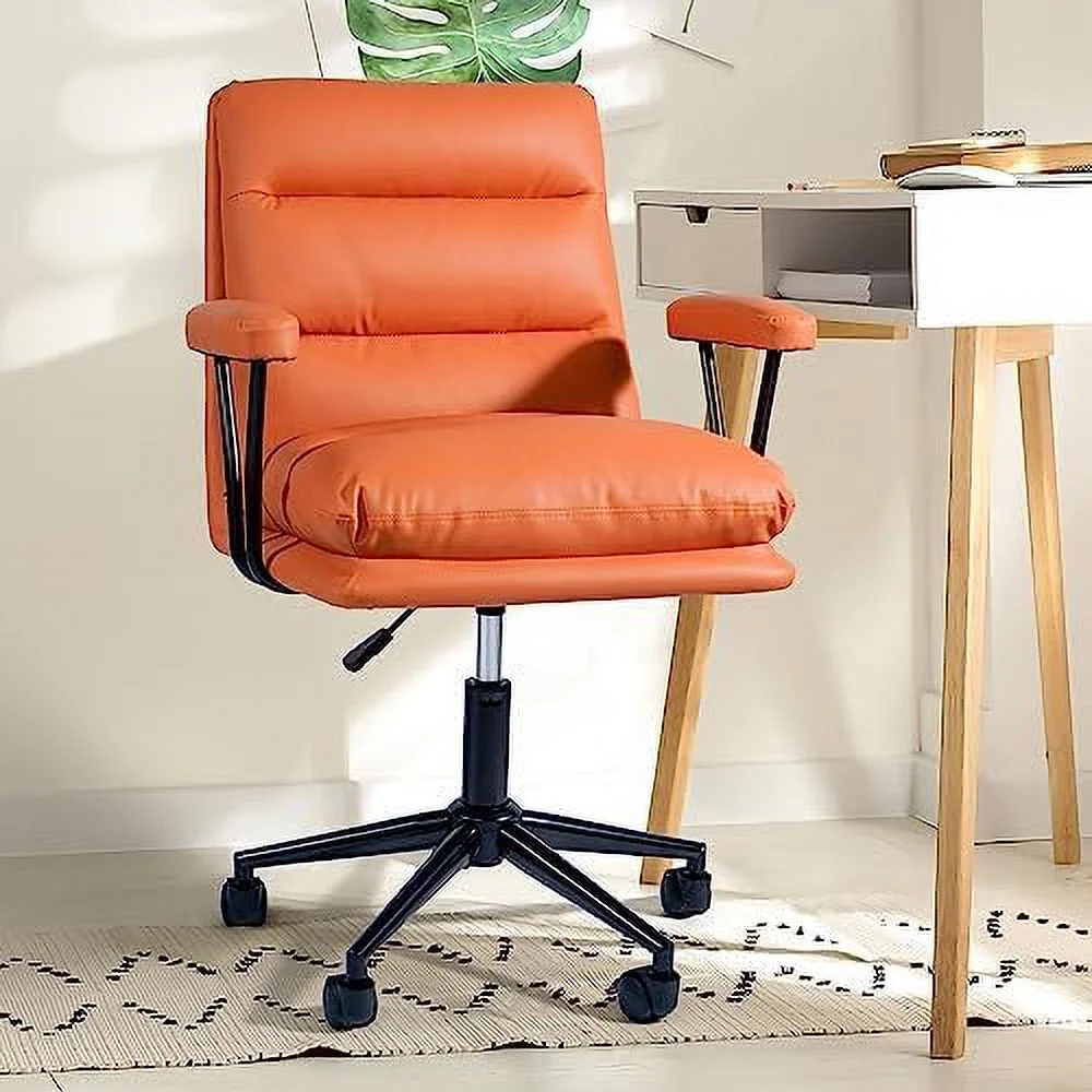 KHBIULIFE Modern Padded Desk Chair Swivel Upholstered Desk Chair with Armrests PU Leather Makeup Vanity Chair with Tilt & Degree Swivel Modern Computer Rolling Chair Orange