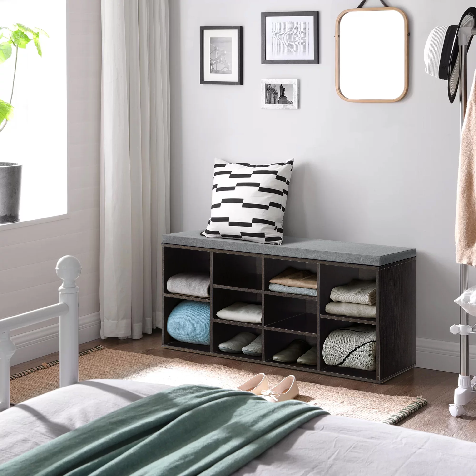 Shoe Bench Storage Bench 10 Compartments Shoe Organizer with 3-Tier Shoe Rack Bench Adjustable Shelves Shoe Shelf for Living Room Entryway Hallway Bedroom