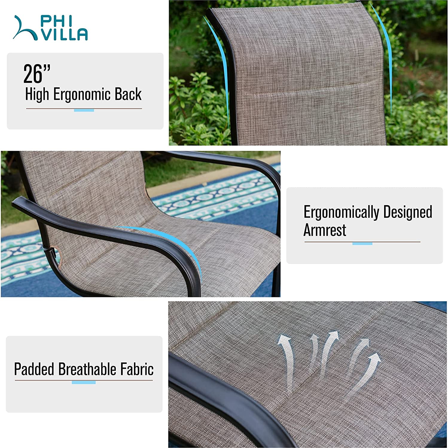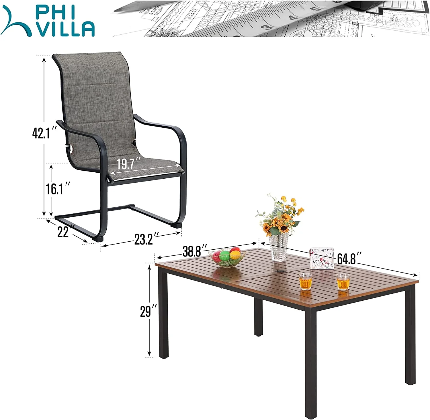 Perfect VILLA 7 PCS Outdoor Dining Table and Chairs 6 Spring Chairs with Higher Back and Wood-Like Table Top Dining Table Waterproof Rustproof for Garden Yard