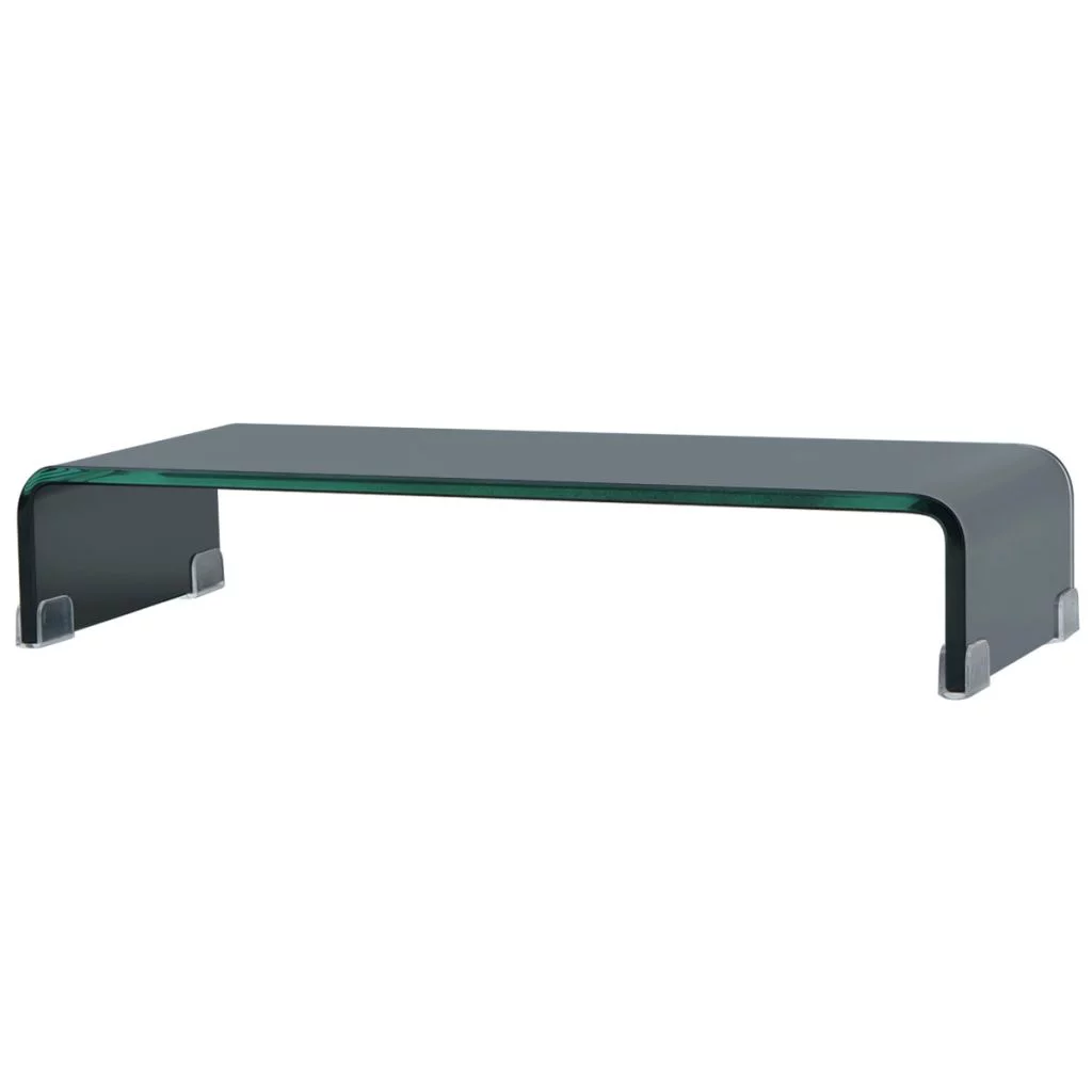 Anself Corner TV Stand Black Tempered Glass Computer Monitor Riser for Living Room Home Office Furniture (23.6" x 9.8" x 4.3 CL-US_312217USCLDL"