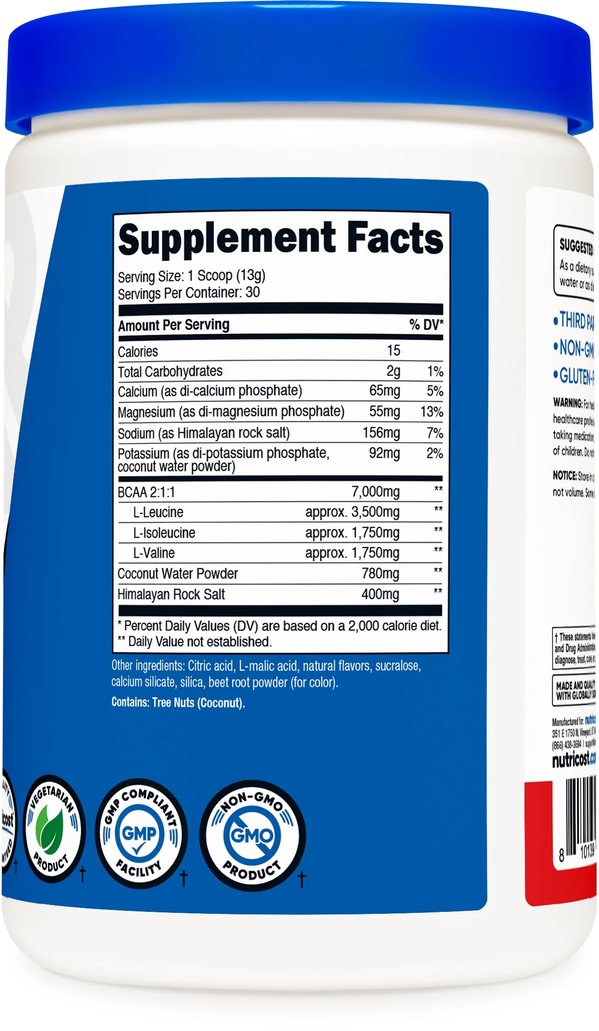 Nutricost BCAA + Hydration Powder (Fruit Punch) 30 Servings - Branched Chain Amino Acids with Hydration Complex - Gluten-Free, Non-GMO