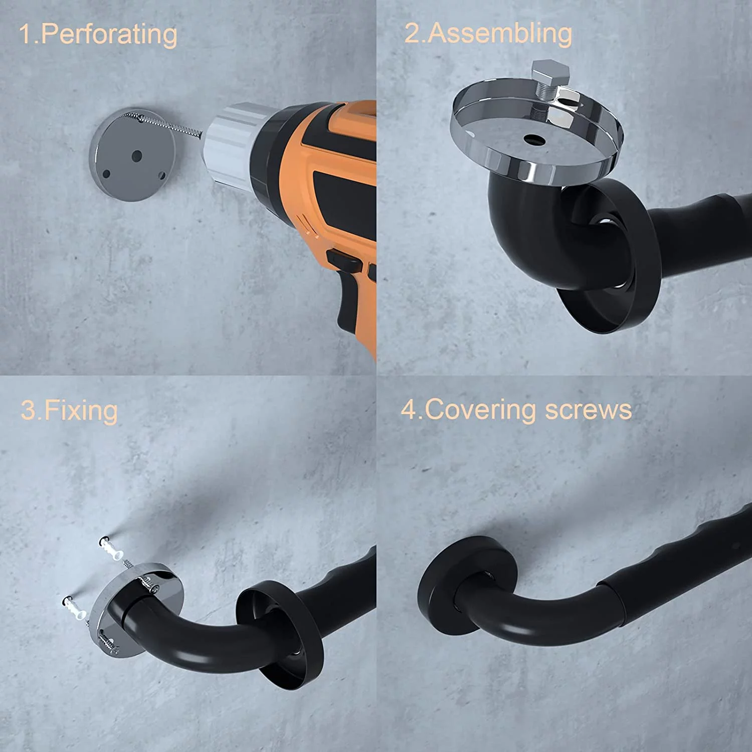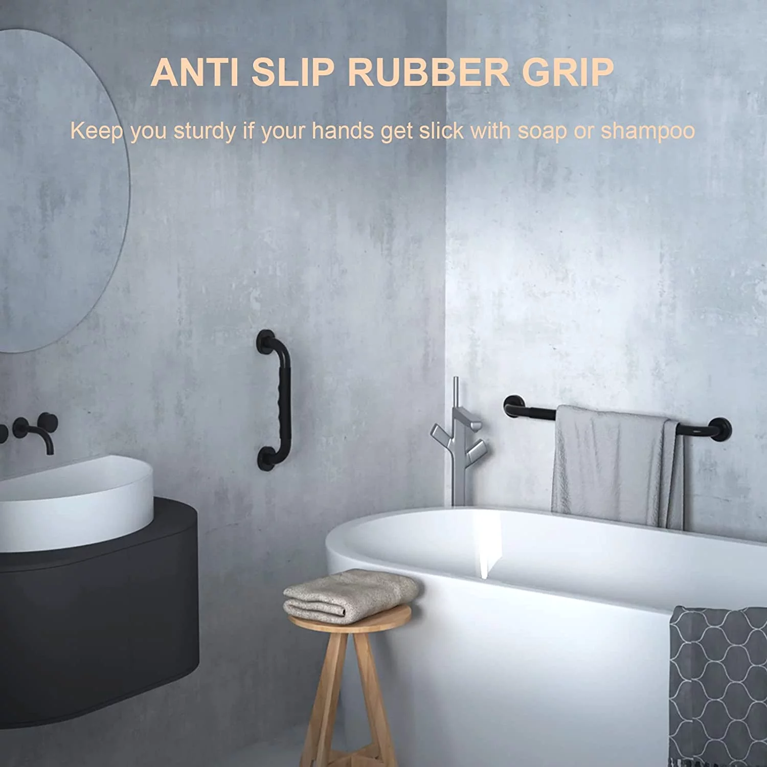 2 Pack 12 Inch Black Shower Grab Bar w/ Anti Slip Rubber Grip ,ZUEXT Stainless Steel Bath Grab Bar,Bathroom Balance Bar,Wall Mount Safety Handrail Support,Handicap Injury Elderly Senior Assist Handle