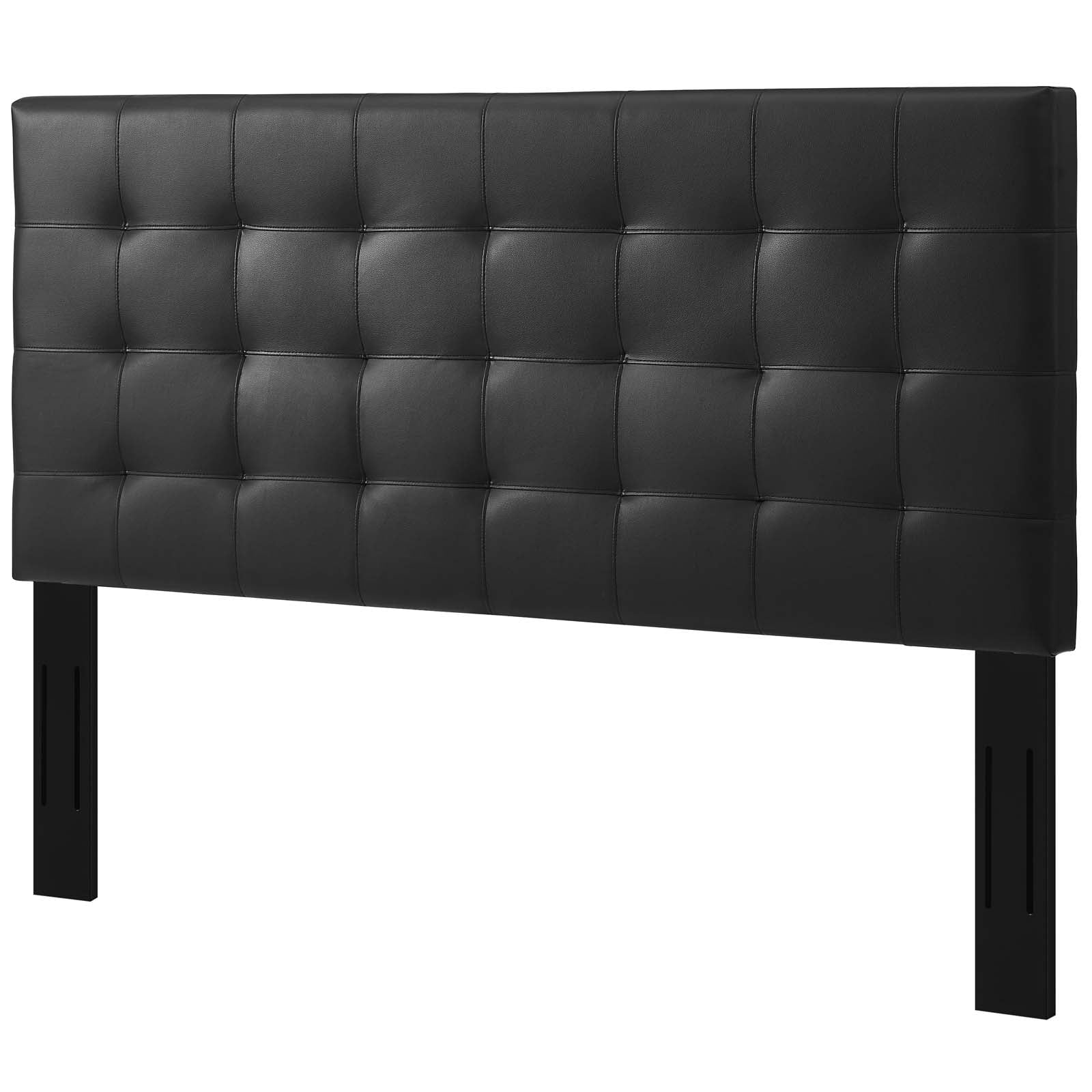 Contemporary Modern Urban Designer Bedroom King Size Tufted Headboard, Faux Vinyl Leather, Black