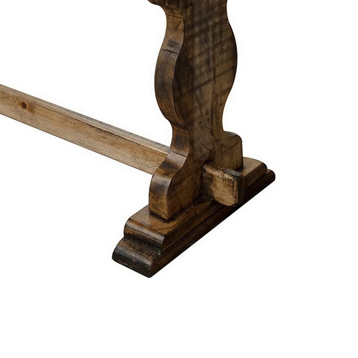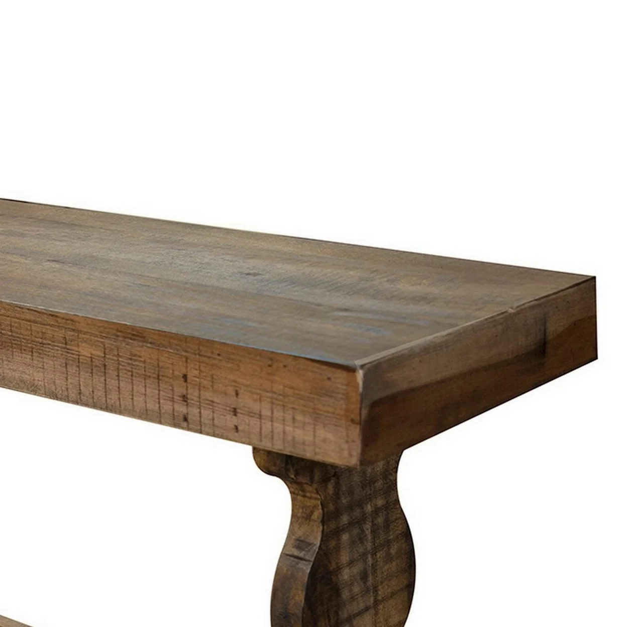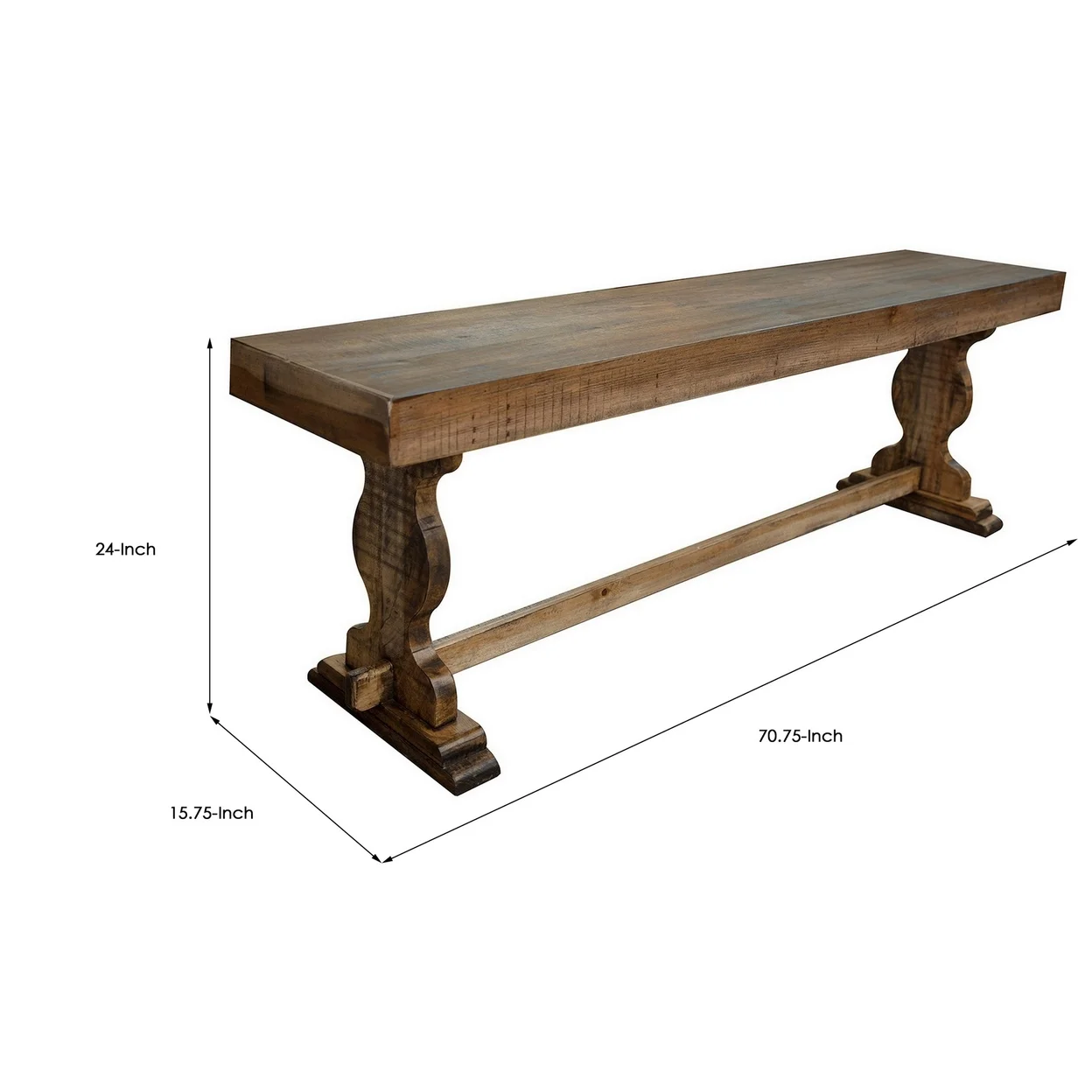 Ebb 70 Inch Rustic Wood Bench Curved Base Solid Pine Wood Light Brown- Saltoro Sherpi