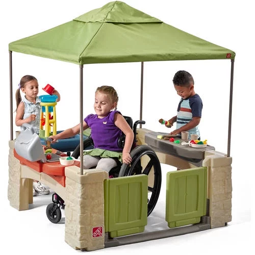Step2 All-Around Playtime Patio with Canopy with 16 Play Accessories Playhouse Kids Outdoor Toys