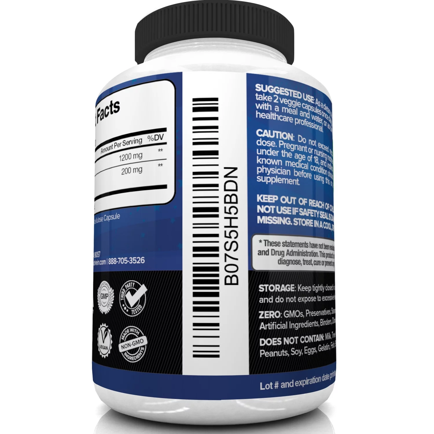 Nutrivein Premium Berberine HCL 1200mg Plus Organic Ceylon Cinnamon - 120 Capsules