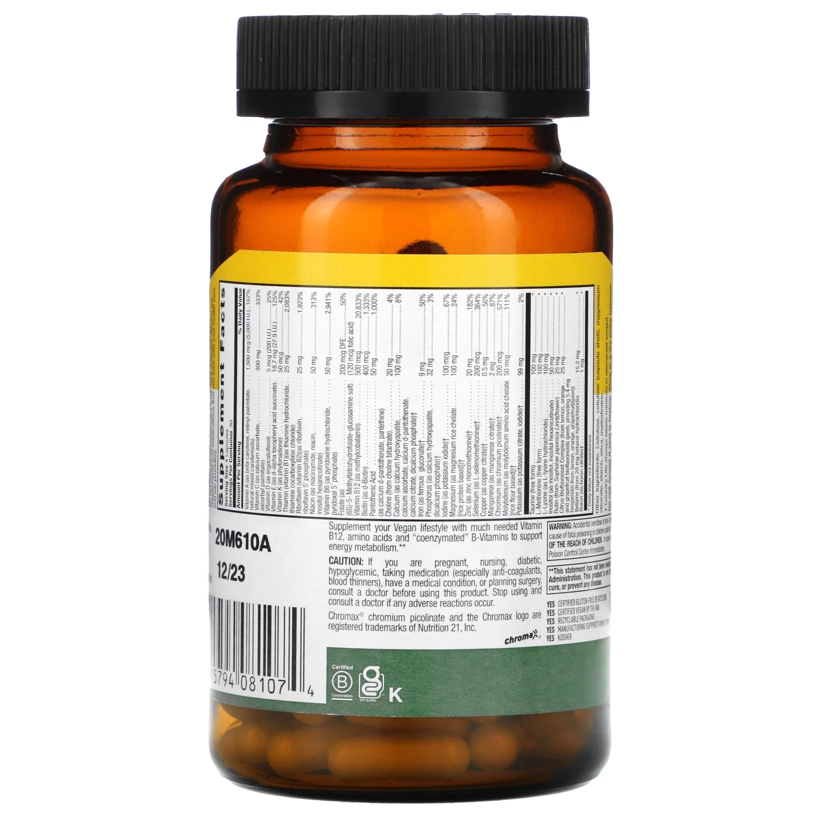 Max for Vegans, Multivitamin & Mineral Complex, 120 Vegan Capsules, Country Life