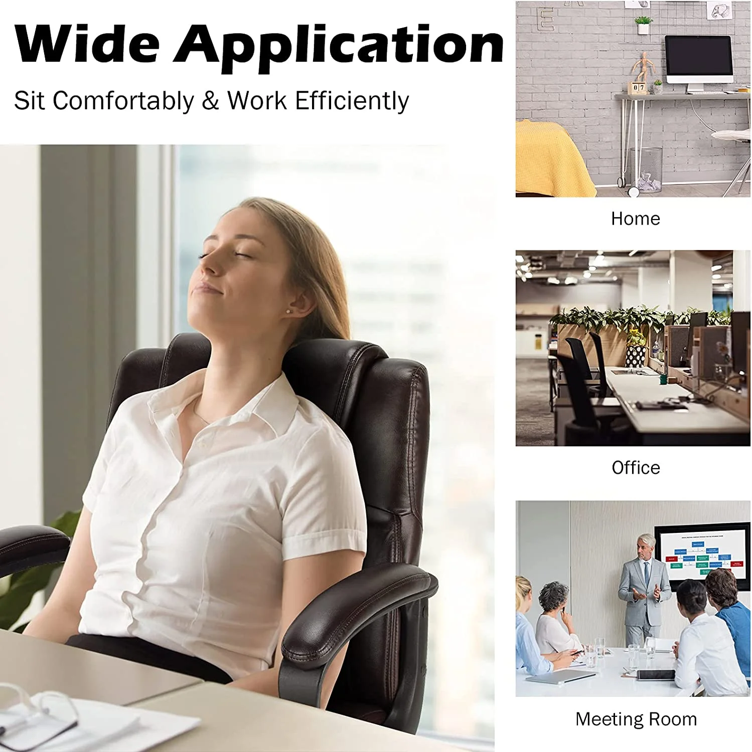 HJZBNONE Office Chair Leather Modern Executive Chair Ergonomic Mid Back Computer Desk Chair w/Padded Armrests Height Adjustable Swivel Task Chair w/Rocking Dark Brown